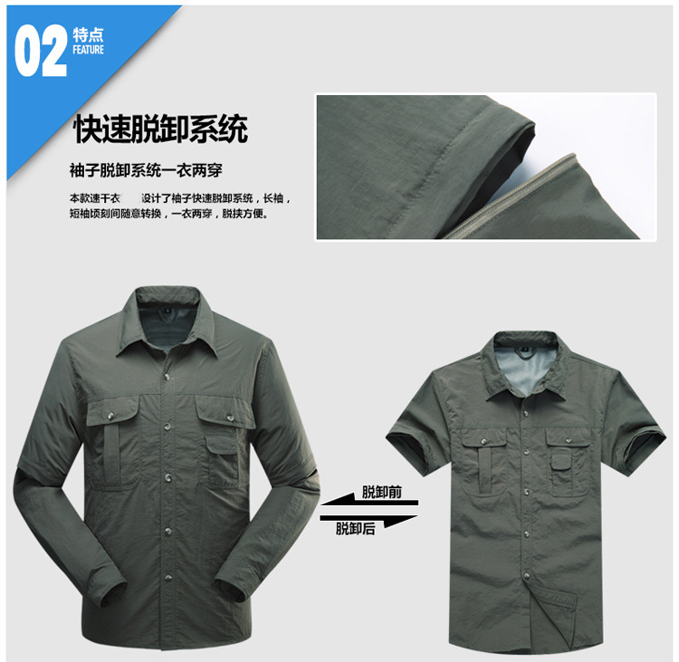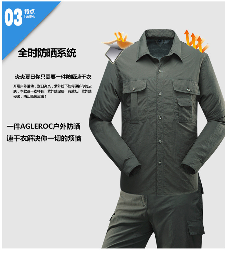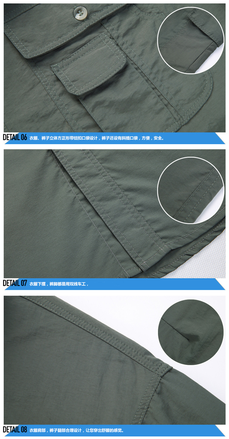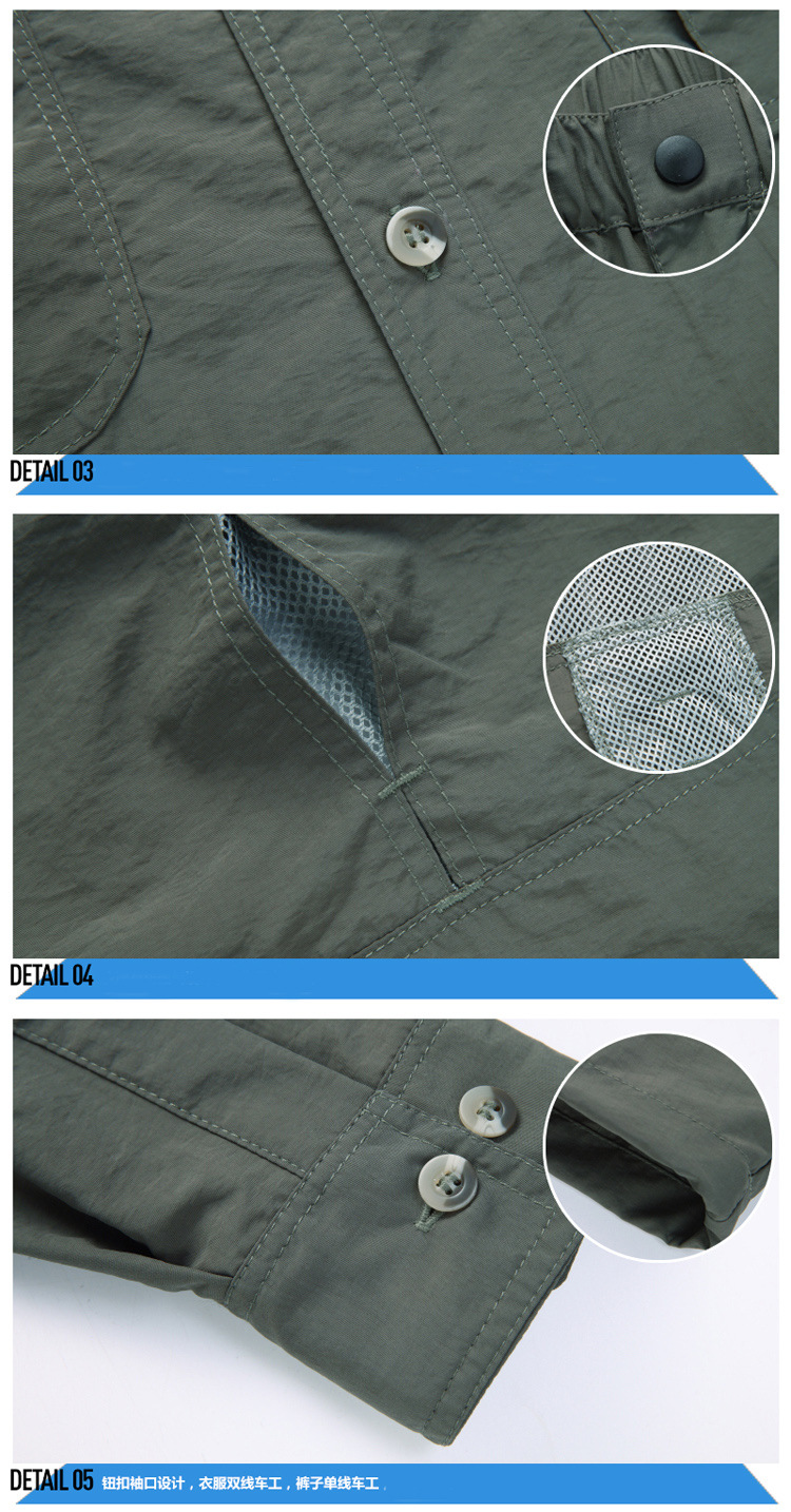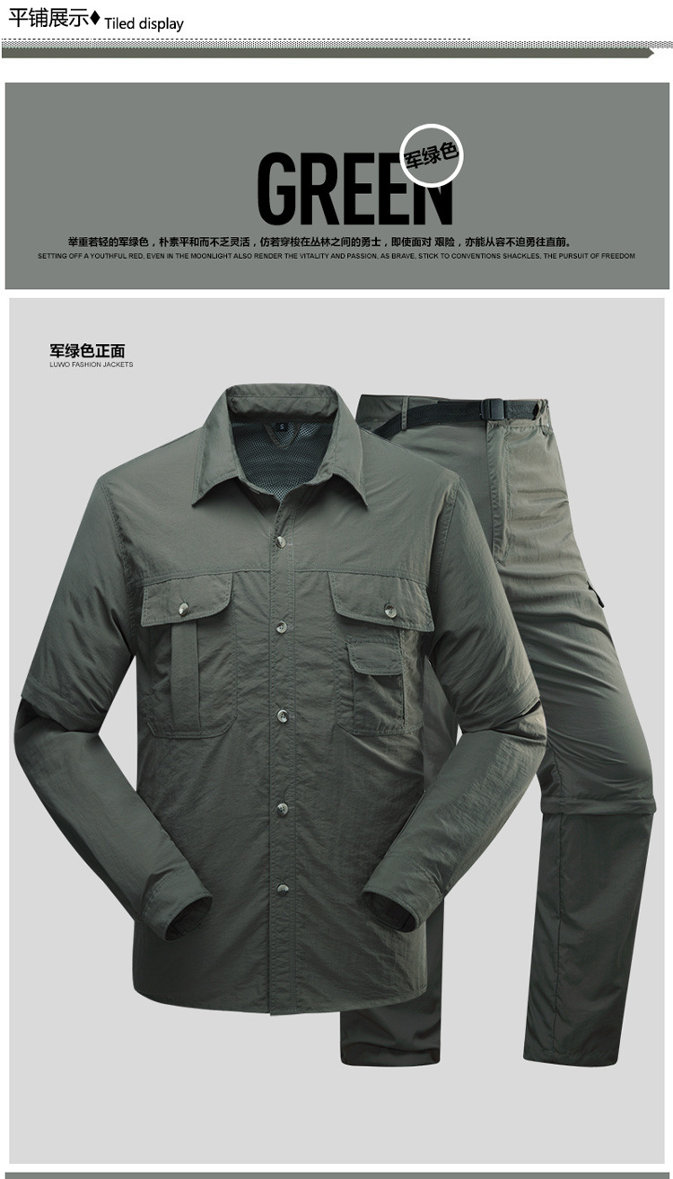 빠른 건조 옷 바지 세트 남성 긴팔 2 섹션 탈착식 작업복 야외 외출 등산 캠핑 낚시 옷 여름스토어 가기