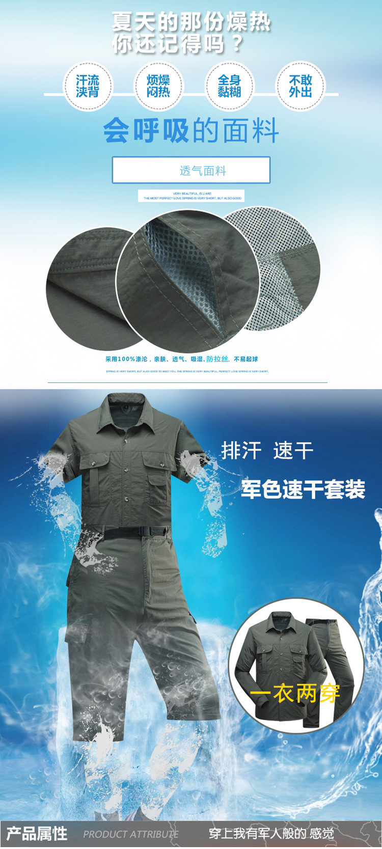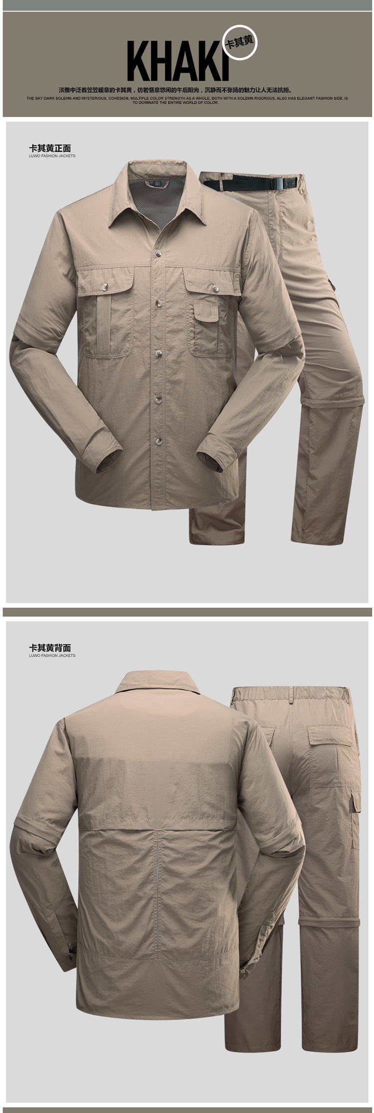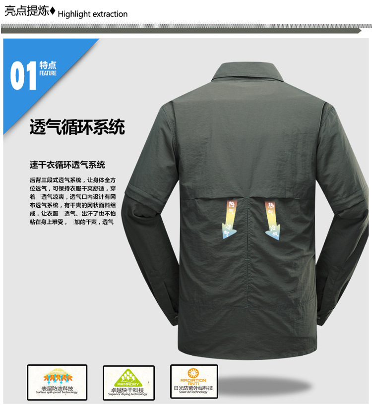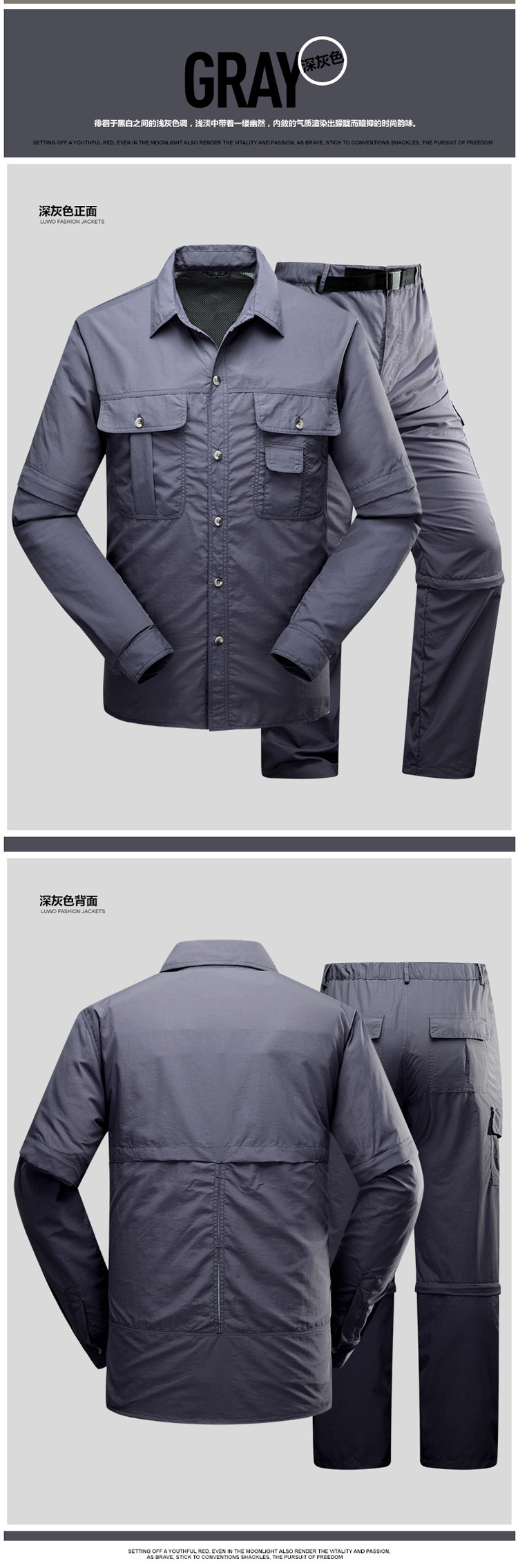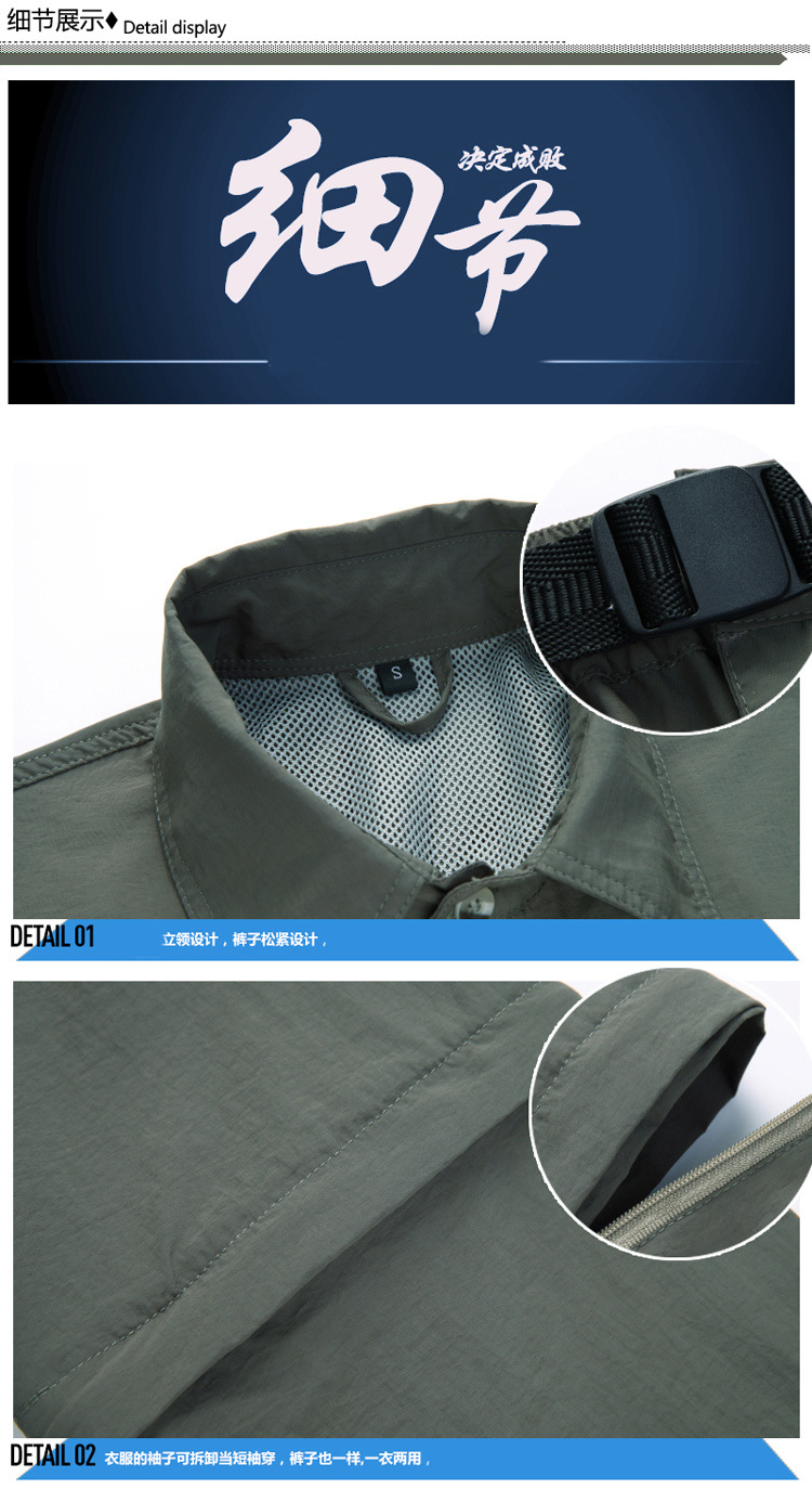 빠른 건조 옷 바지 세트 남성 긴팔 2 섹션 탈착식 작업복 야외 외출 등산 캠핑 낚시 옷 여름스토어 가기