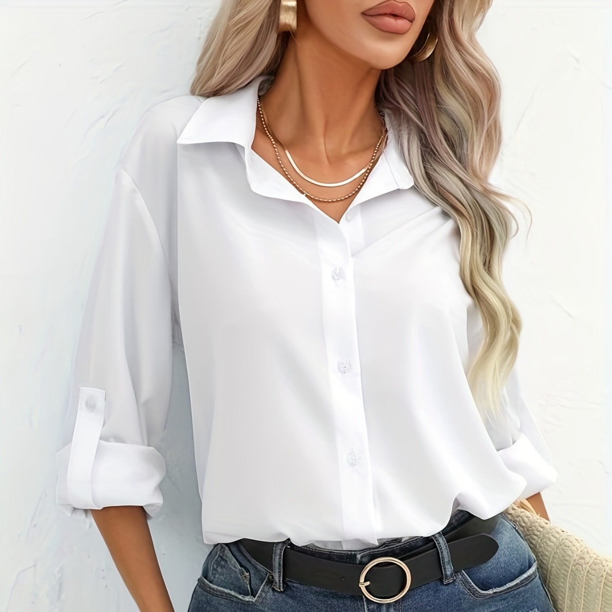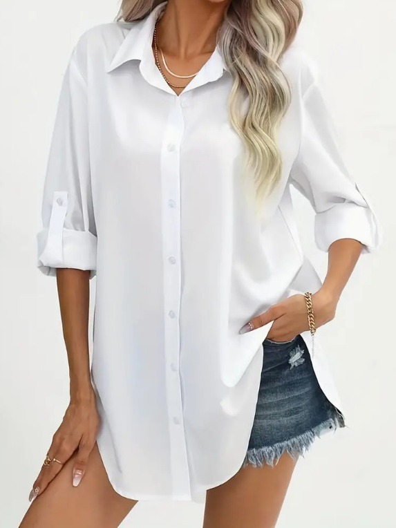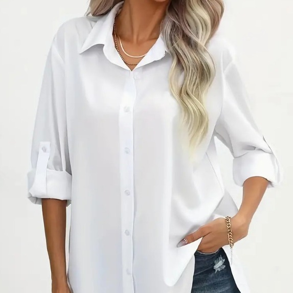 아마존 유럽과 미국의 대외 무역 여성 단색 슬림 캐주얼 셔츠