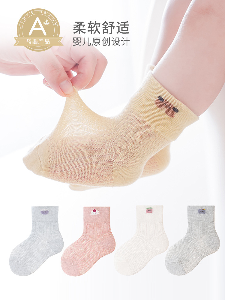 아기 양말 여름 얇은 단색 만화 초박형 아기 양말 여름 얇은 어린이 클래스 면화 양말 도매스토어 가기