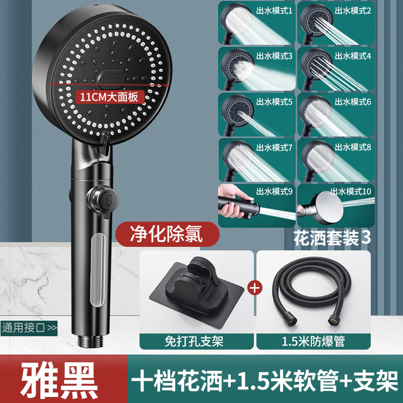 • [10 기어 블랙 3 피스 세트] 샤워 + 1.5 m 암호화 호스 + 브래킷