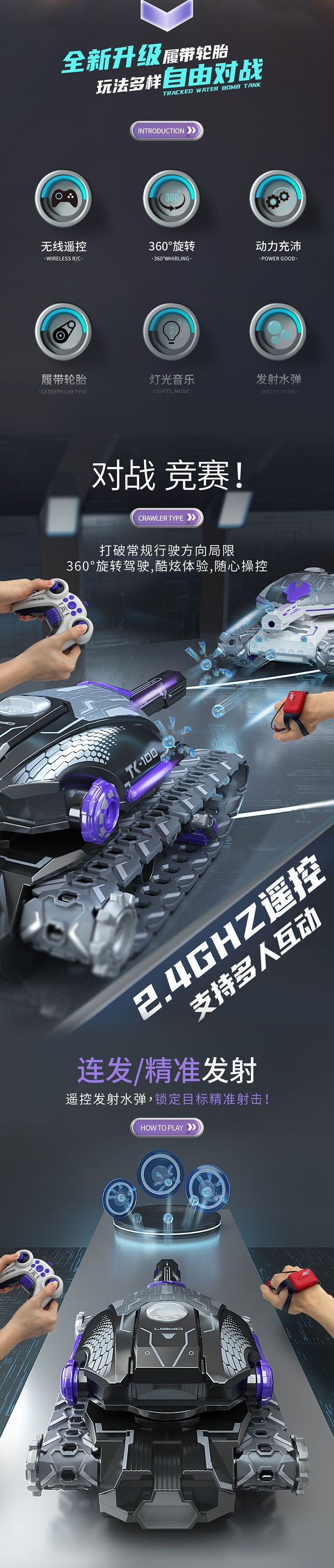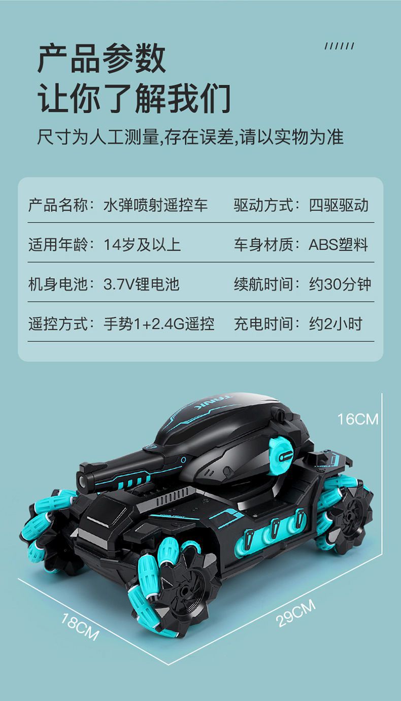 원격 제어 물 폭탄 탱크 장난감 자동차 어린이 충전 전기 오프로드 차량 4 륜 구동 전차 Mech 제스처 감지 소년스토어 가기