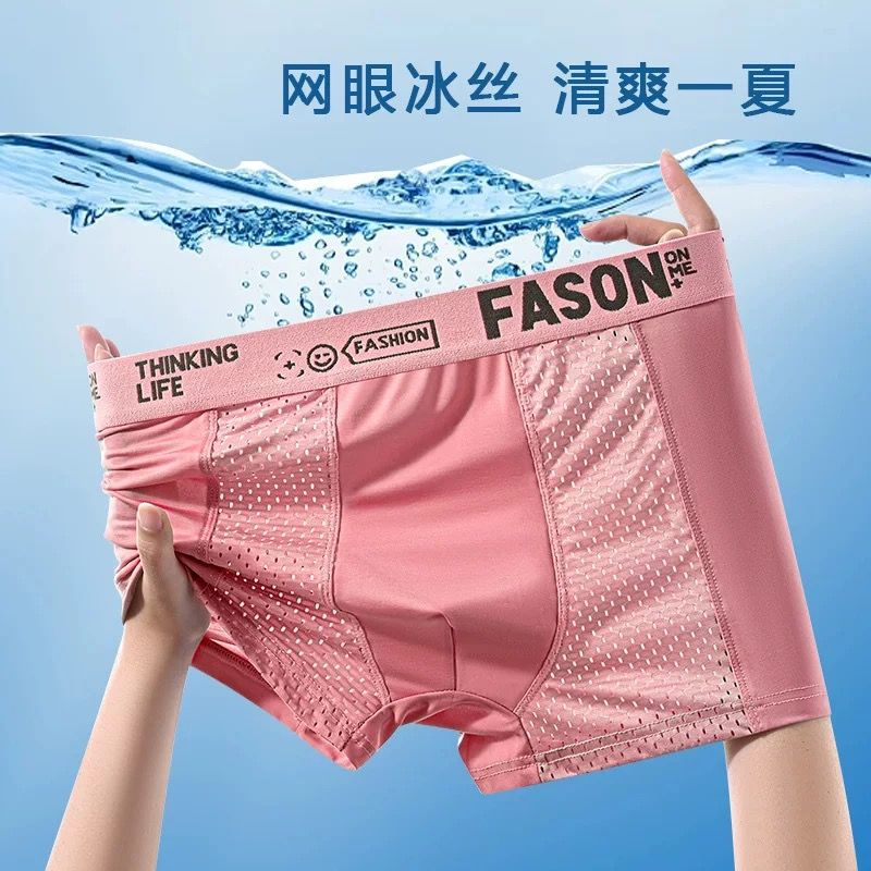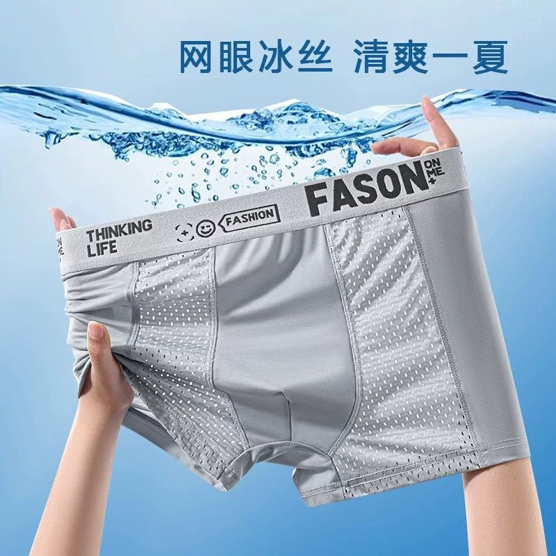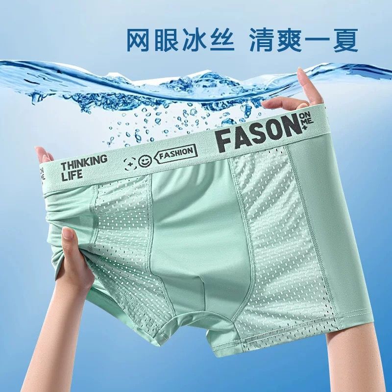 남성용 아이스 실크 메쉬 사각 팬티, 남성용 속옷, 대형 사이즈, 무봉제, 주름 방지, 여름용 얇고 통기성 좋은스토어 가기