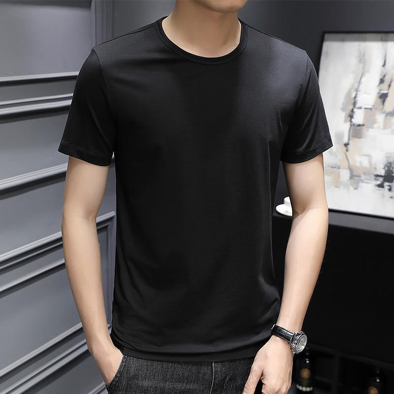 트렌디 한 남성용 캐주얼 단색 짧은 소매 바닥 셔츠 라운드 넥 티셔츠 화이트 아이스 실크 티셔츠 멀티 컬러 하프 슬리브 탑스토어 가기