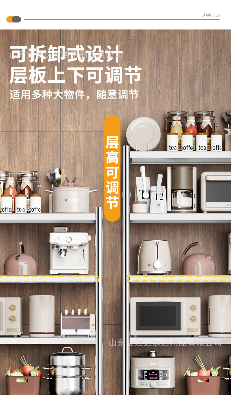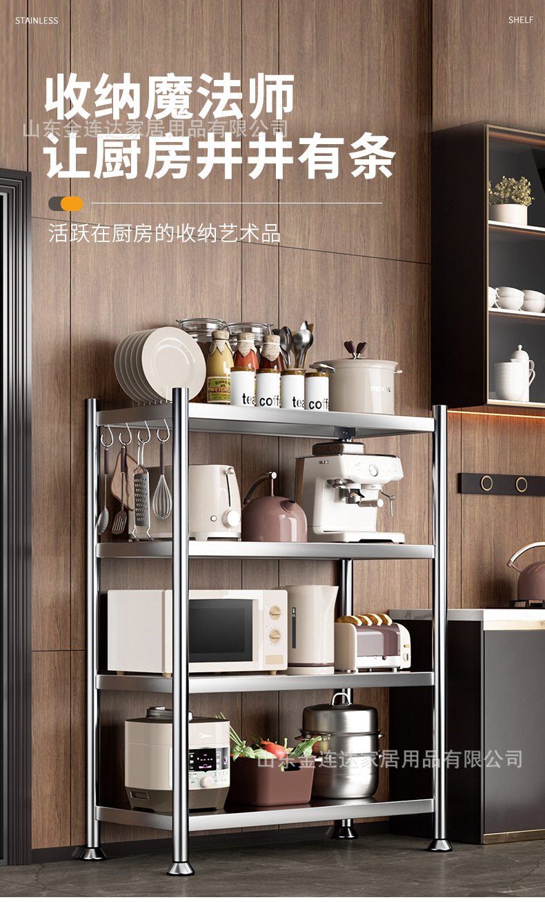 스테인레스 스틸 스토리지 랙 주방 바닥 다층 스토리지 랙 멀티 전자 레인지 랙