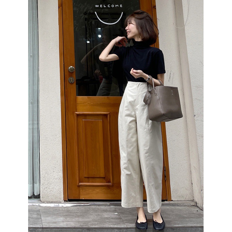 여성을위한 흰색 하이 웨이스트 좁은 스트레이트 와이드 레그 바지 여름 얇은 캐주얼 드레이프 9 점 긴 정장 바지 유행