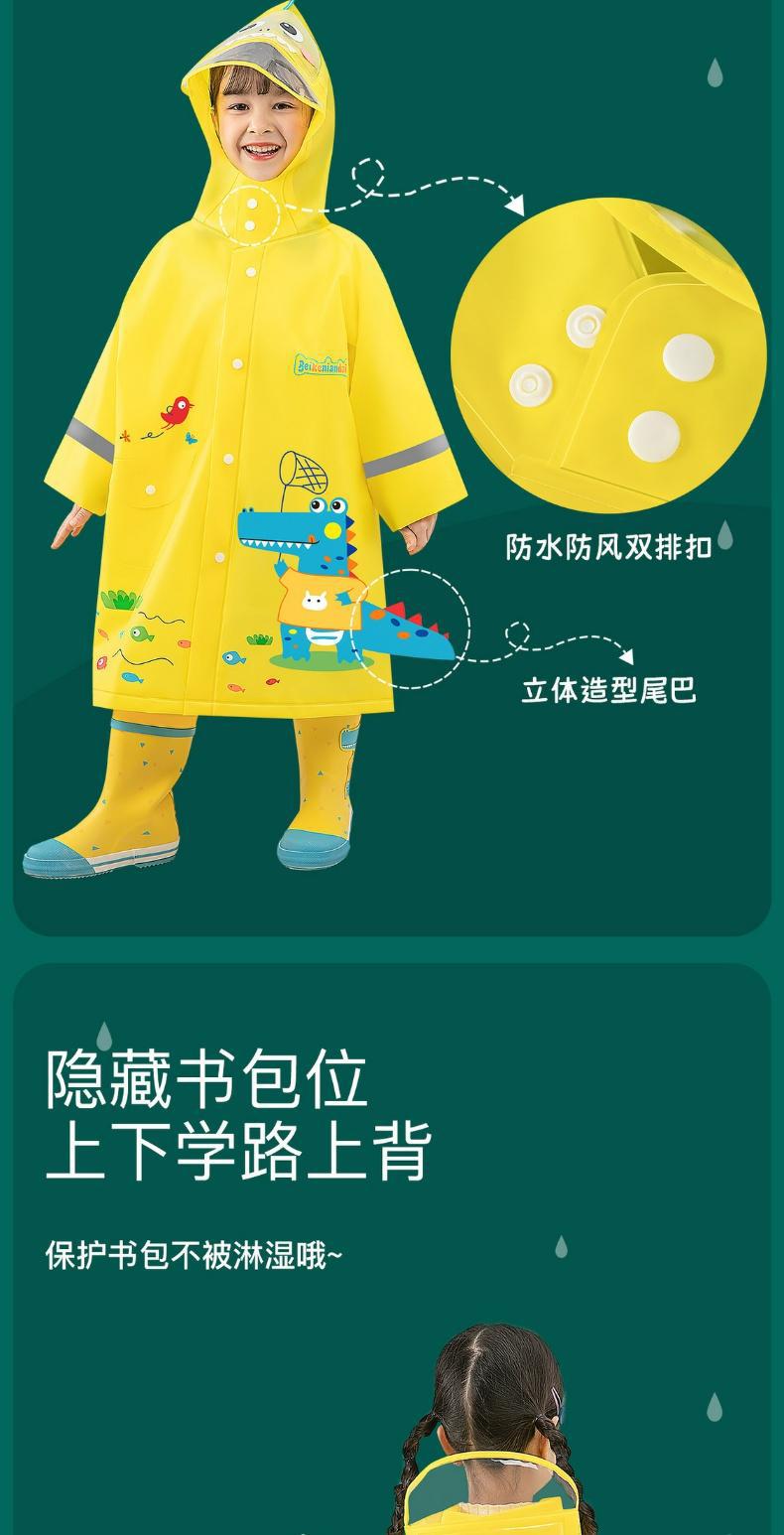 어린이 비옷 소녀 소년 유치원 방수 전신 아기 판초 어린이 여학생 학교 가방스토어 가기