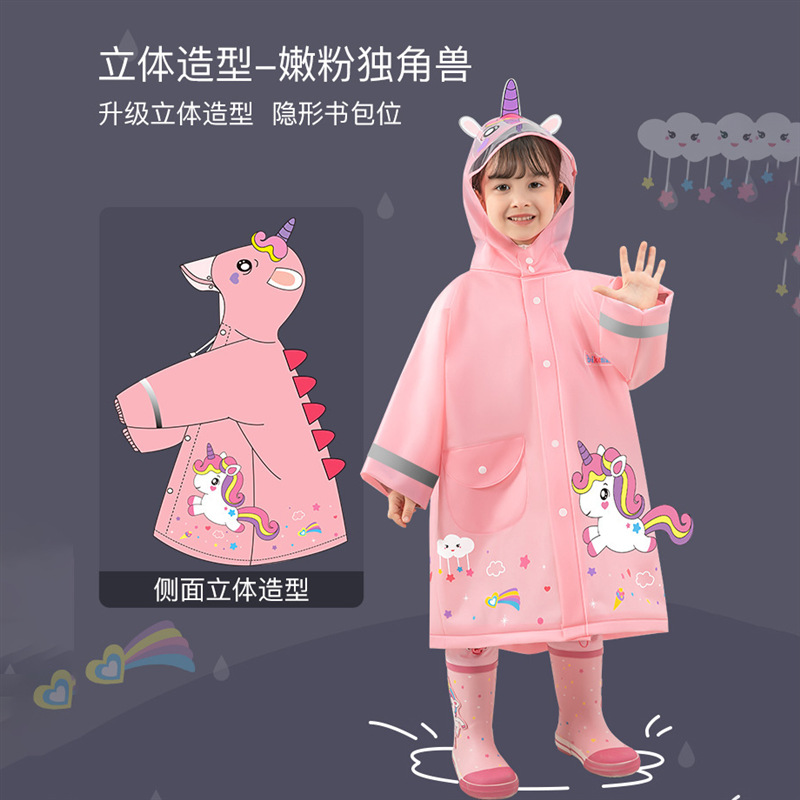 어린이 비옷 소녀 소년 유치원 방수 전신 아기 판초 어린이 여학생 학교 가방