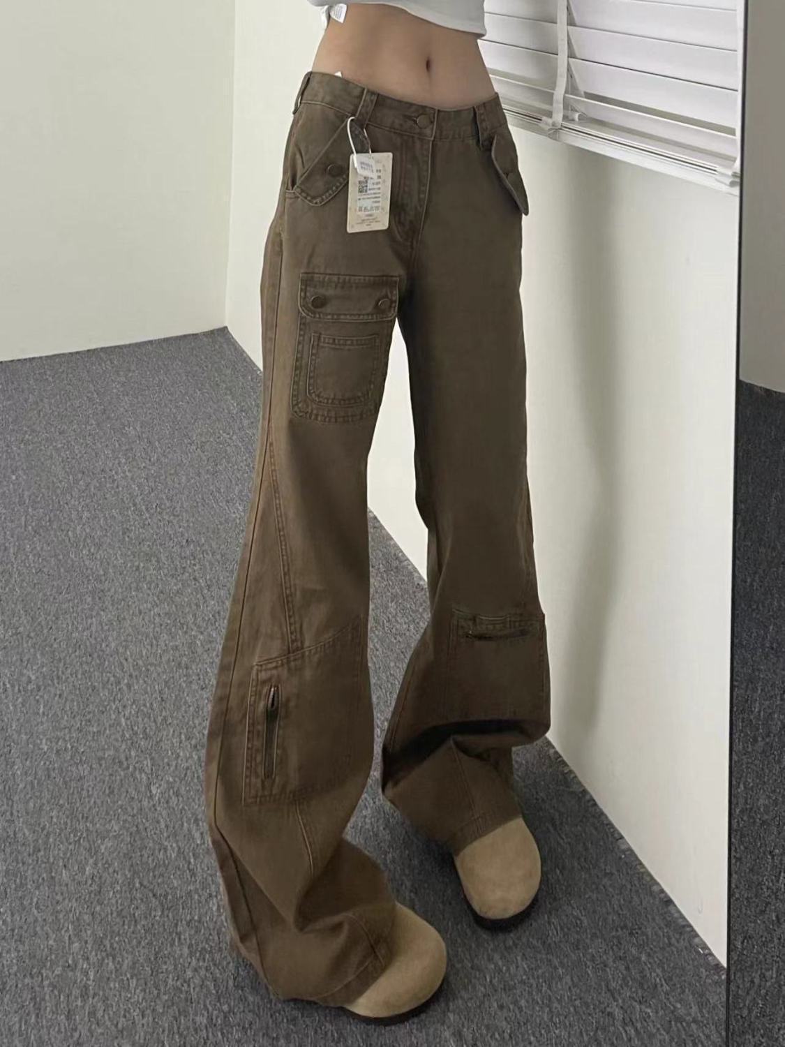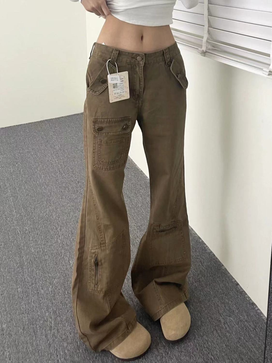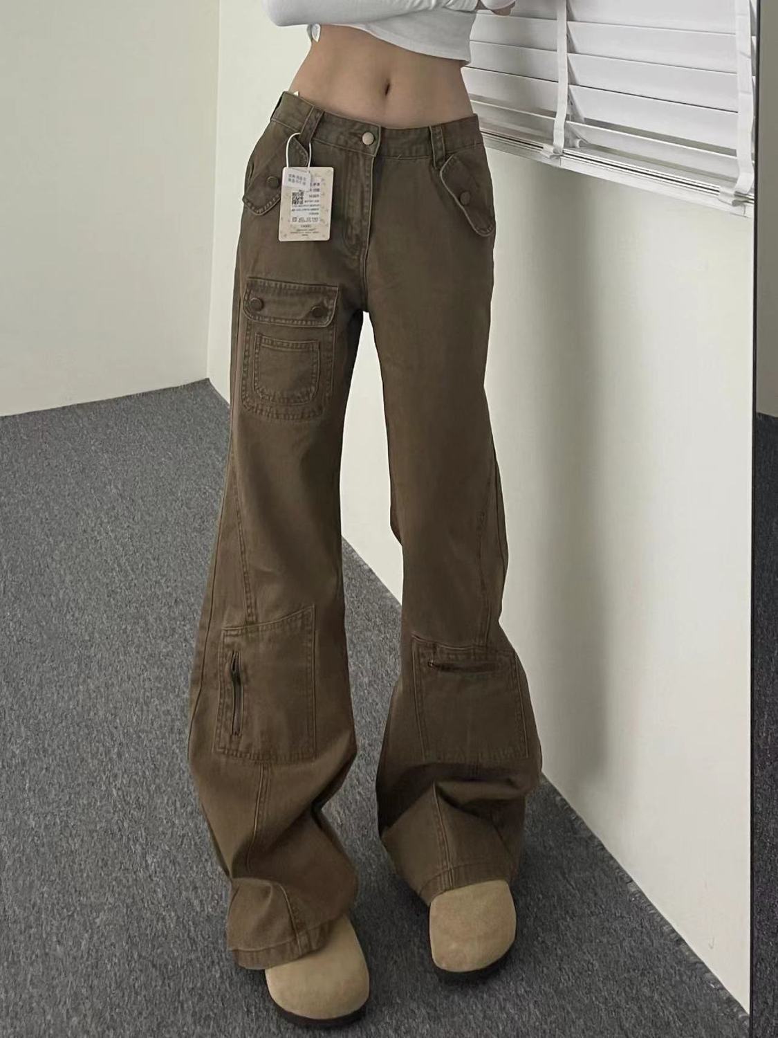 빈티지 카키 툴링 마이크로 라 청바지 여성 봄과 여름 새로운 미국식 하이 스트리트 루즈 슬리밍 올 매치 청바지스토어 가기