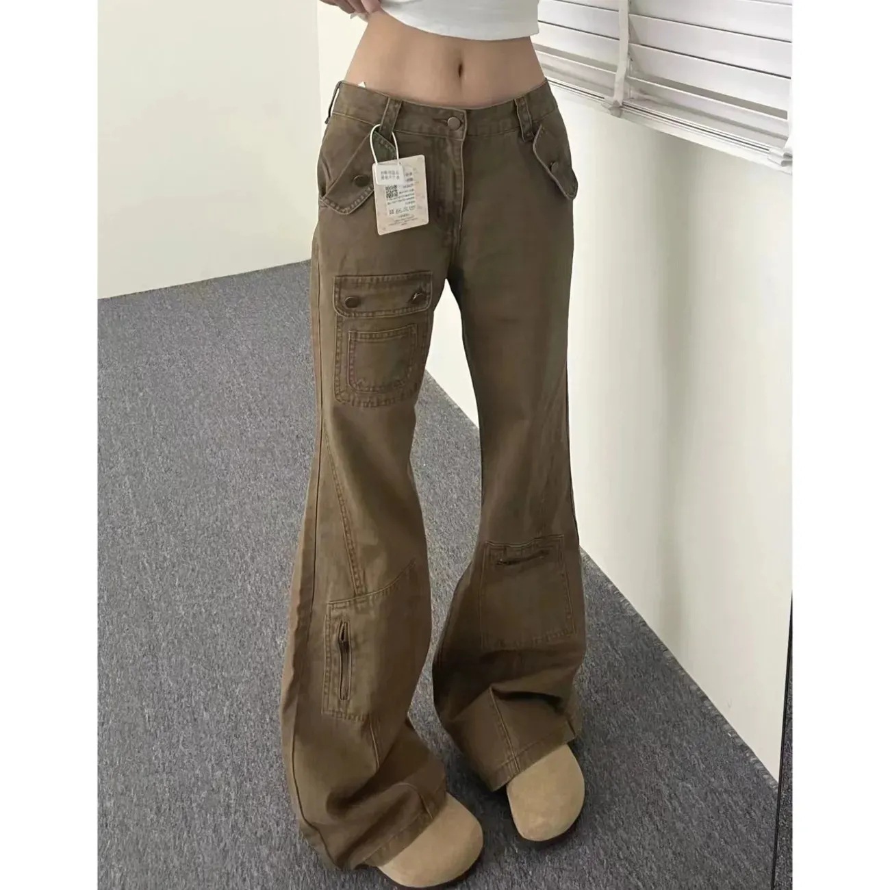 빈티지 카키 툴링 마이크로 라 청바지 여성 봄과 여름 새로운 미국식 하이 스트리트 루즈 슬리밍 올 매치 청바지