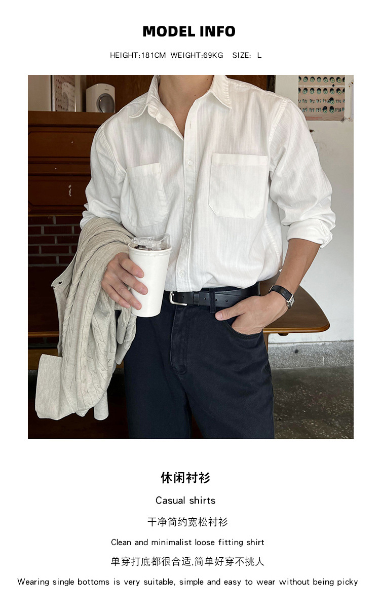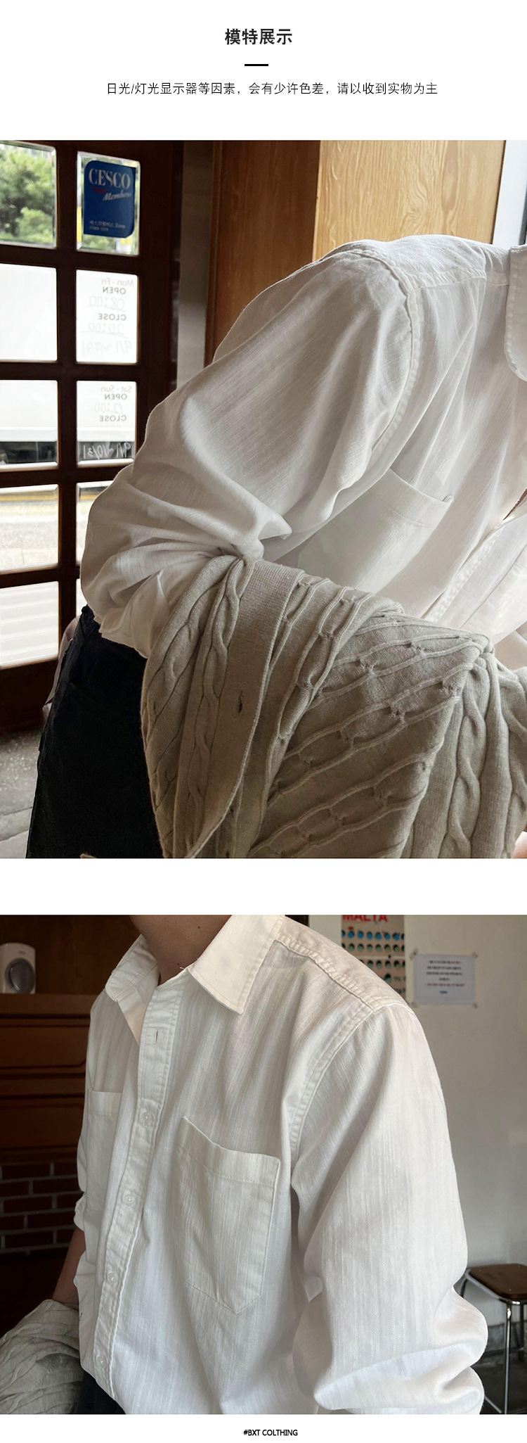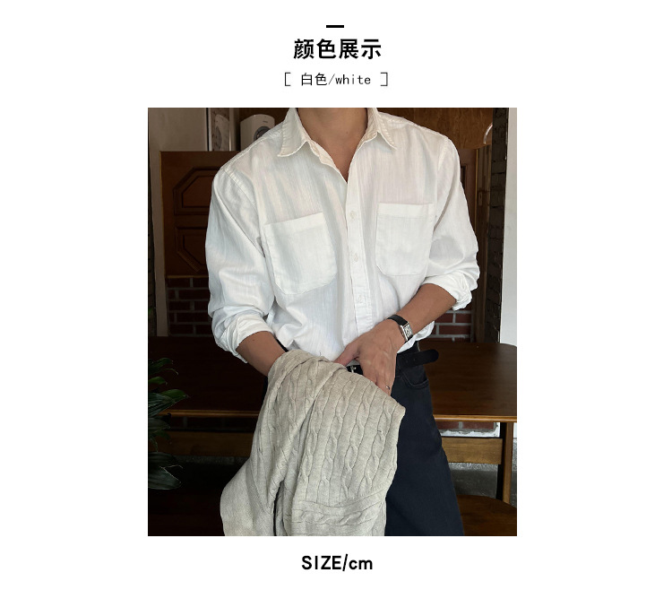 ASCLO 봄/여름 간단한 셔츠 남성용 린넨 화이트 셔츠 캐주얼 올 매치 프릴 잘 생긴 옷깃 고급스토어 가기