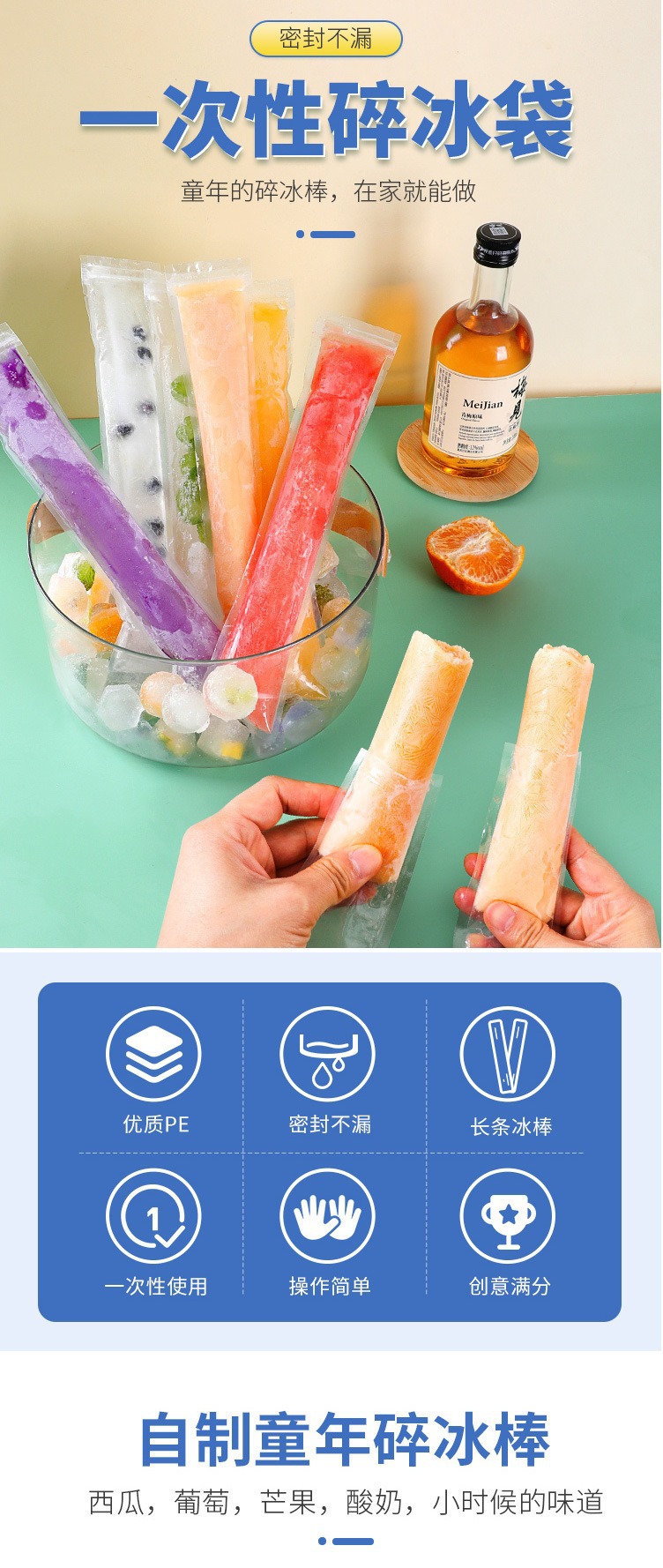 DIY 수제 물이 채워진 얼음 사탕 일회용 PE 두꺼운 얼음 가방 금형 식품 등급 아이스크림 아이스 캔디 지 플락 가방