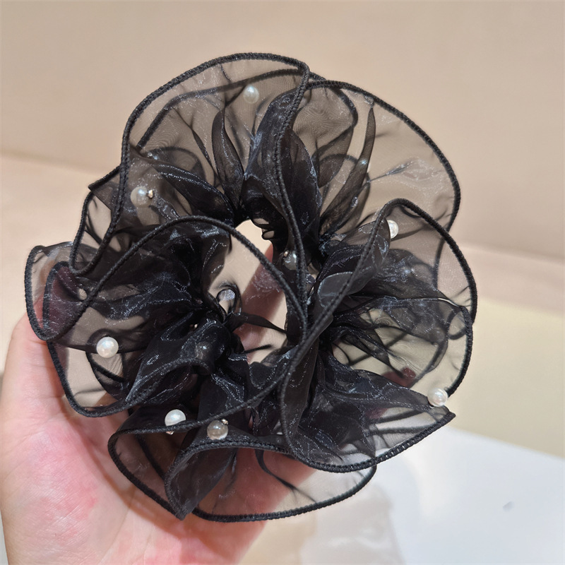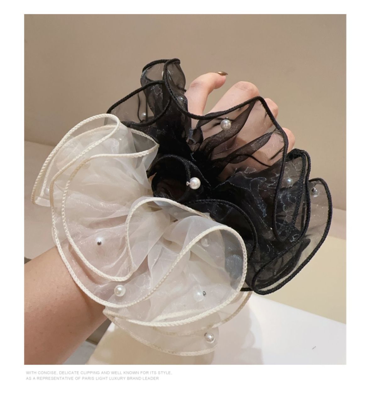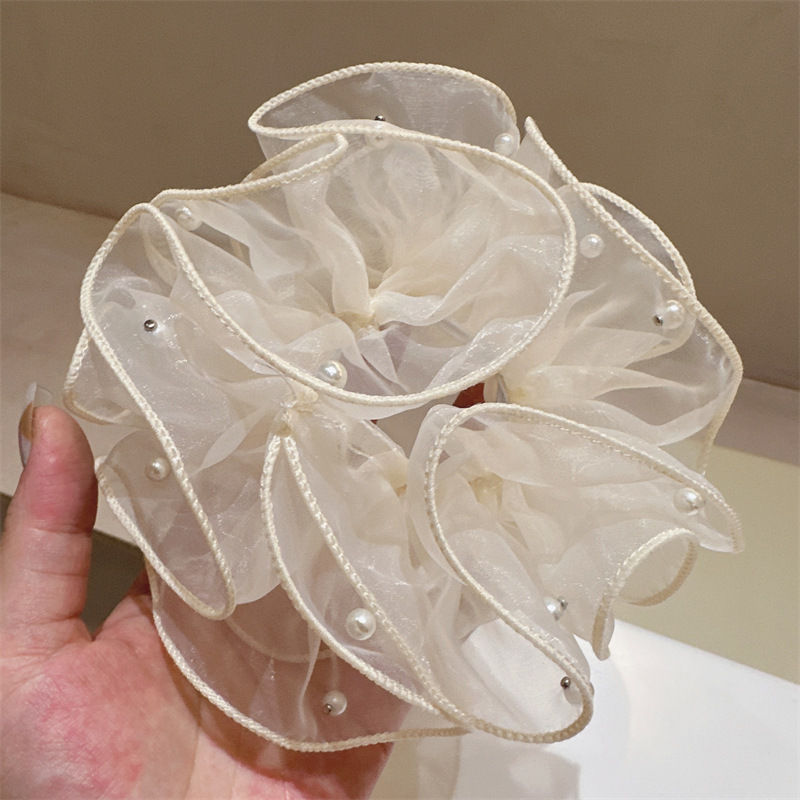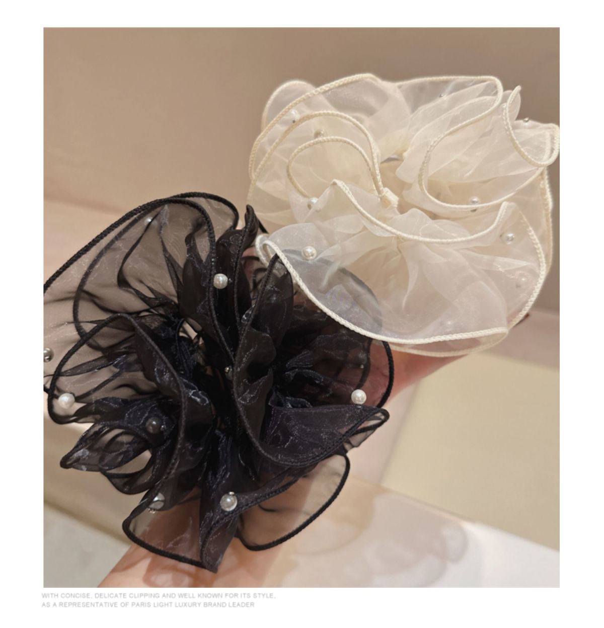 Organza 달콤한 요정 에어 네일 진주 대장 링 헤어 로프 헤어 링 더블 레이어 레이스 볼 머리 로프 푹신한 슈퍼