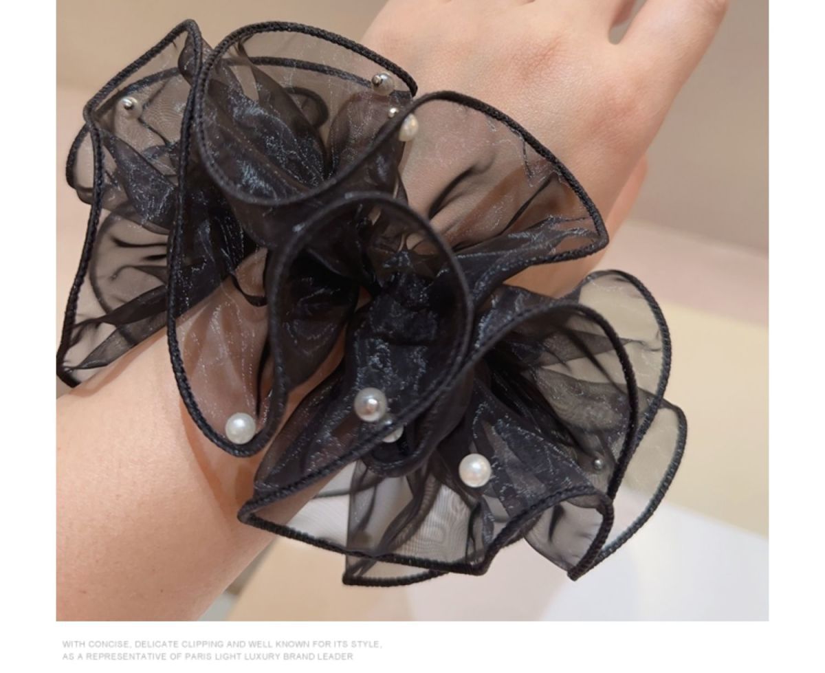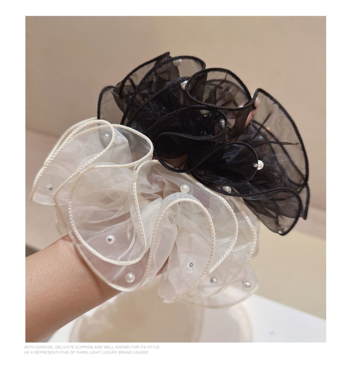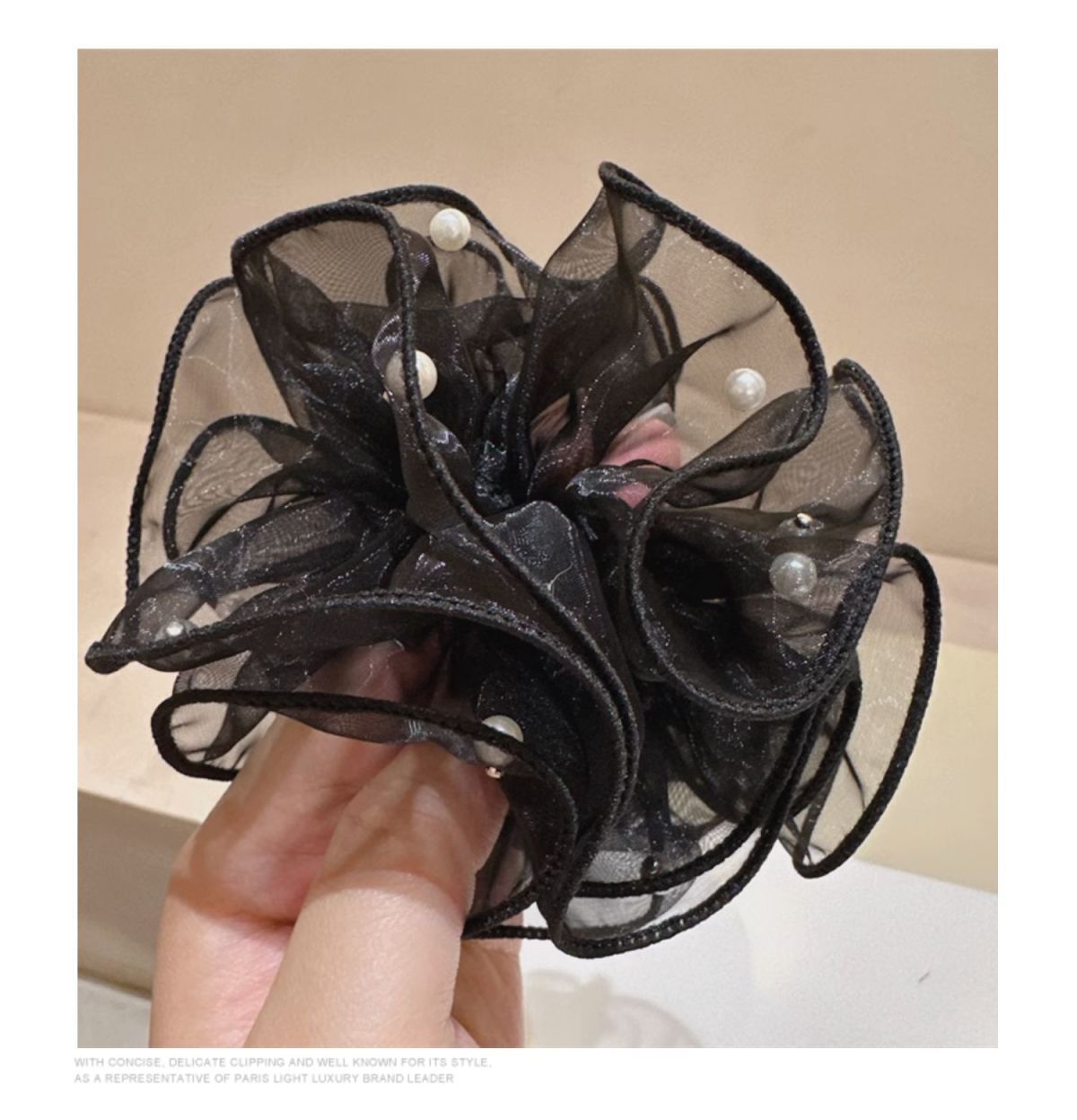 Organza 달콤한 요정 에어 네일 진주 대장 링 헤어 로프 헤어 링 더블 레이어 레이스 볼 머리 로프 푹신한 슈퍼