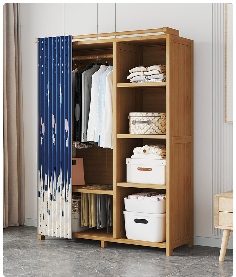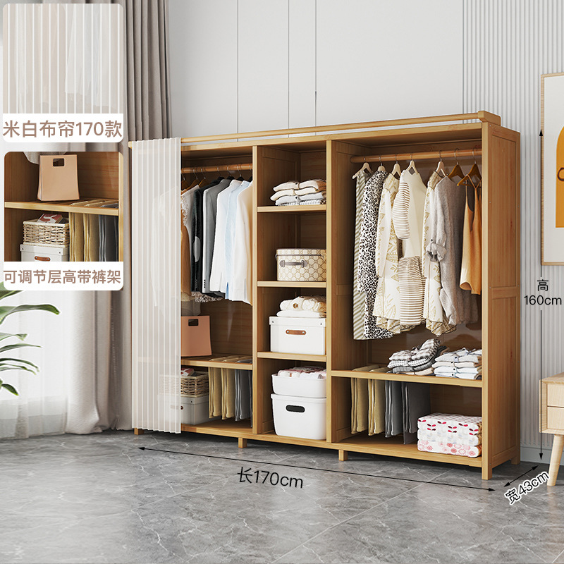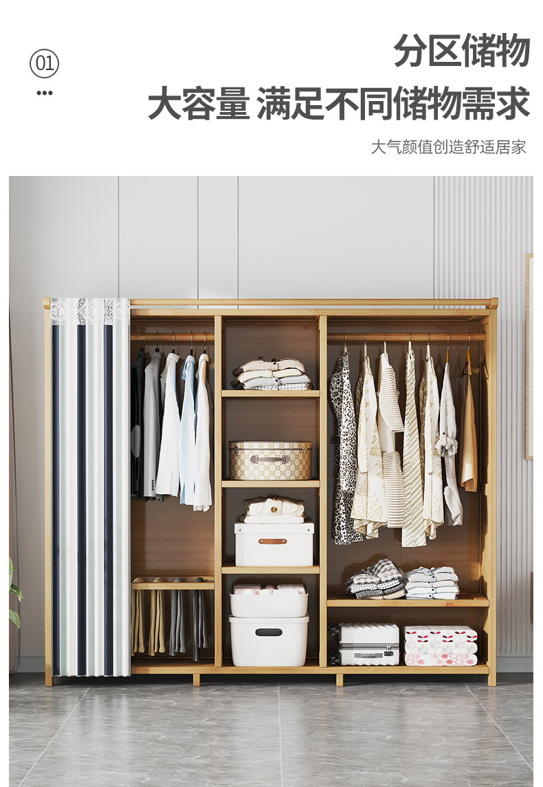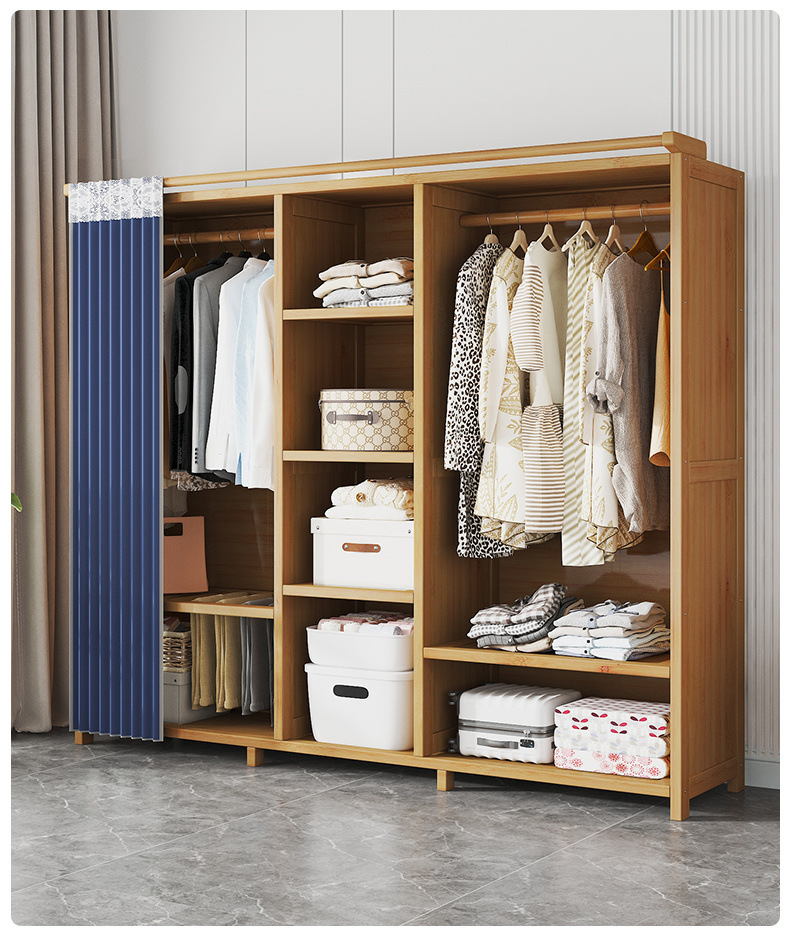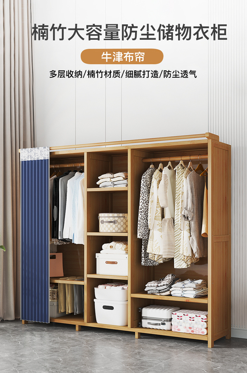 옷장 침실 가정용 간단한 조립 렌탈 룸 경제적 인 패브릭 다층 캐비닛 강력하고 튼튼한 대나무 교수형 옷장
