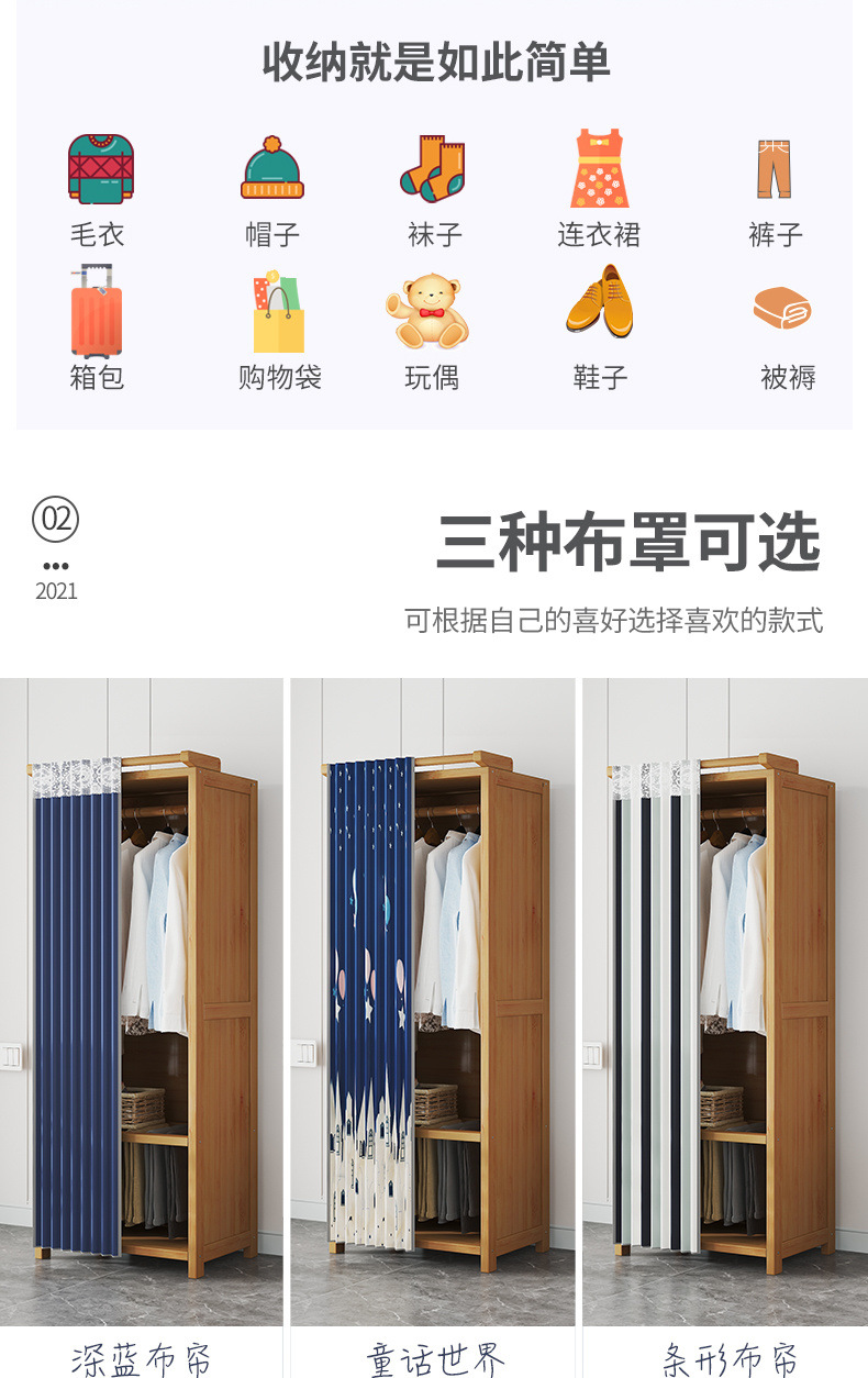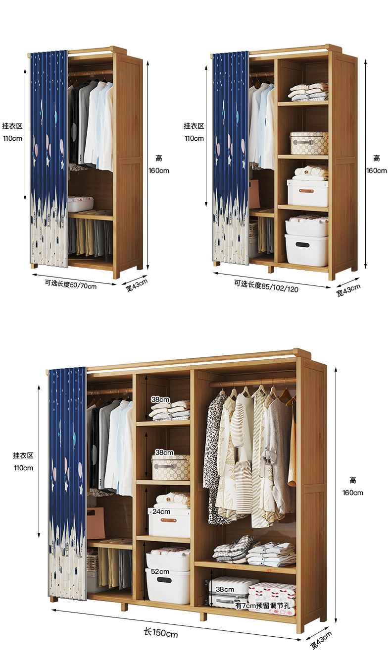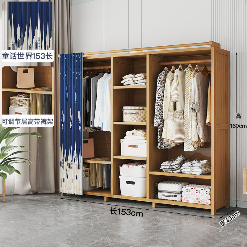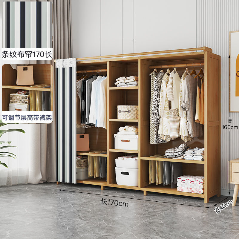 옷장 침실 가정용 간단한 조립 렌탈 룸 경제적 인 패브릭 다층 캐비닛 강력하고 튼튼한 대나무 교수형 옷장