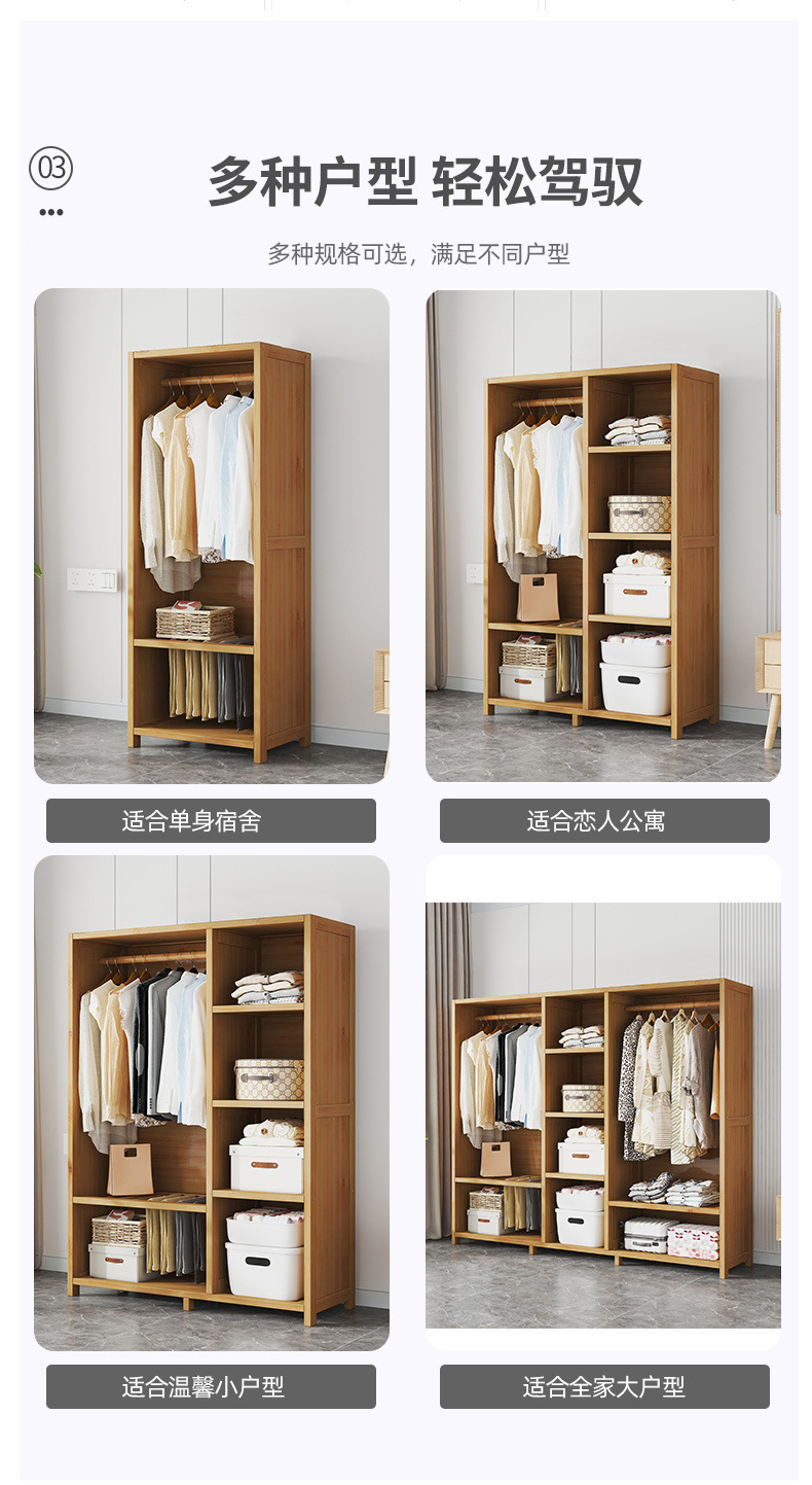 옷장 침실 가정용 간단한 조립 렌탈 룸 경제적 인 패브릭 다층 캐비닛 강력하고 튼튼한 대나무 교수형 옷장스토어 가기