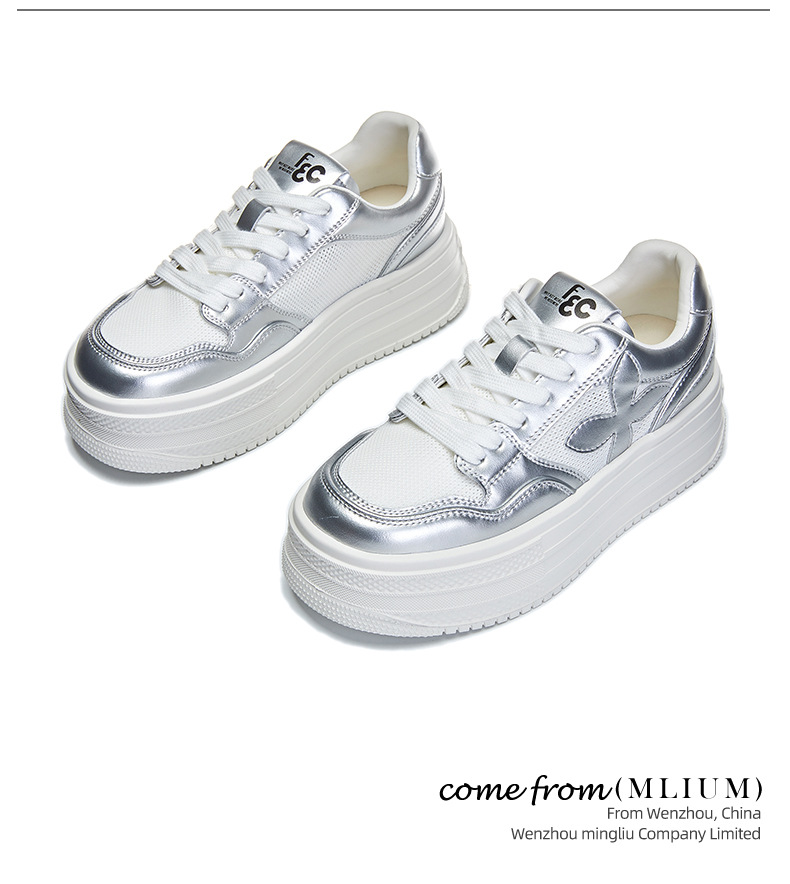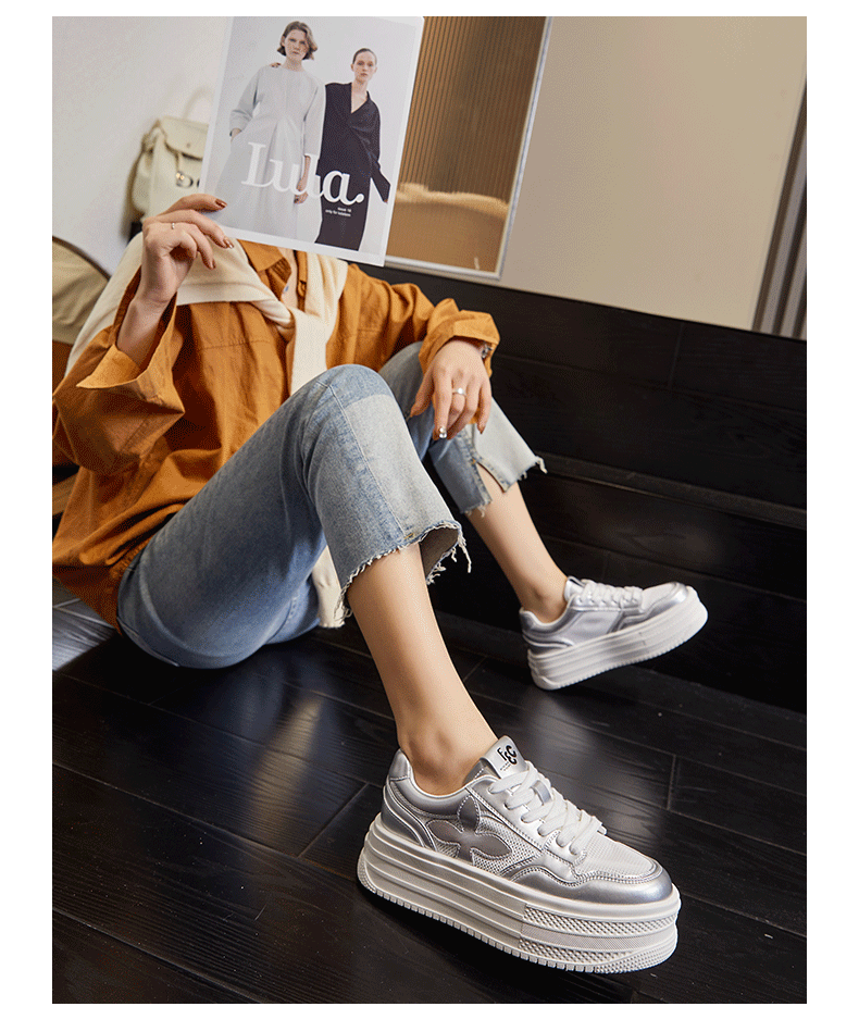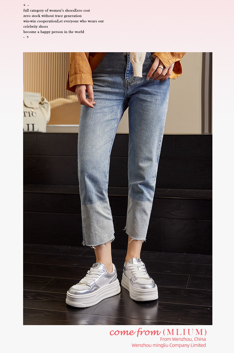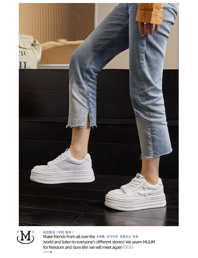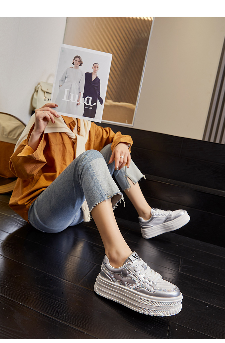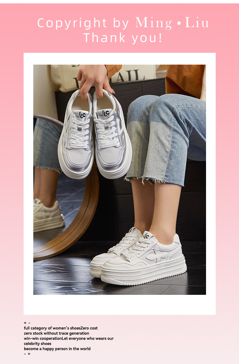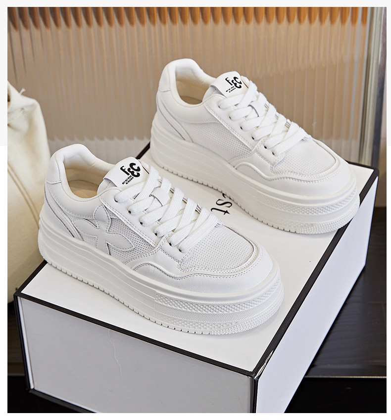 여성용 가죽 흰색 신발 거품 밑창 2024 여름 새로운 플랫폼 신발 높이 증가 스포츠 여성 신발 다목적 신발스토어 가기