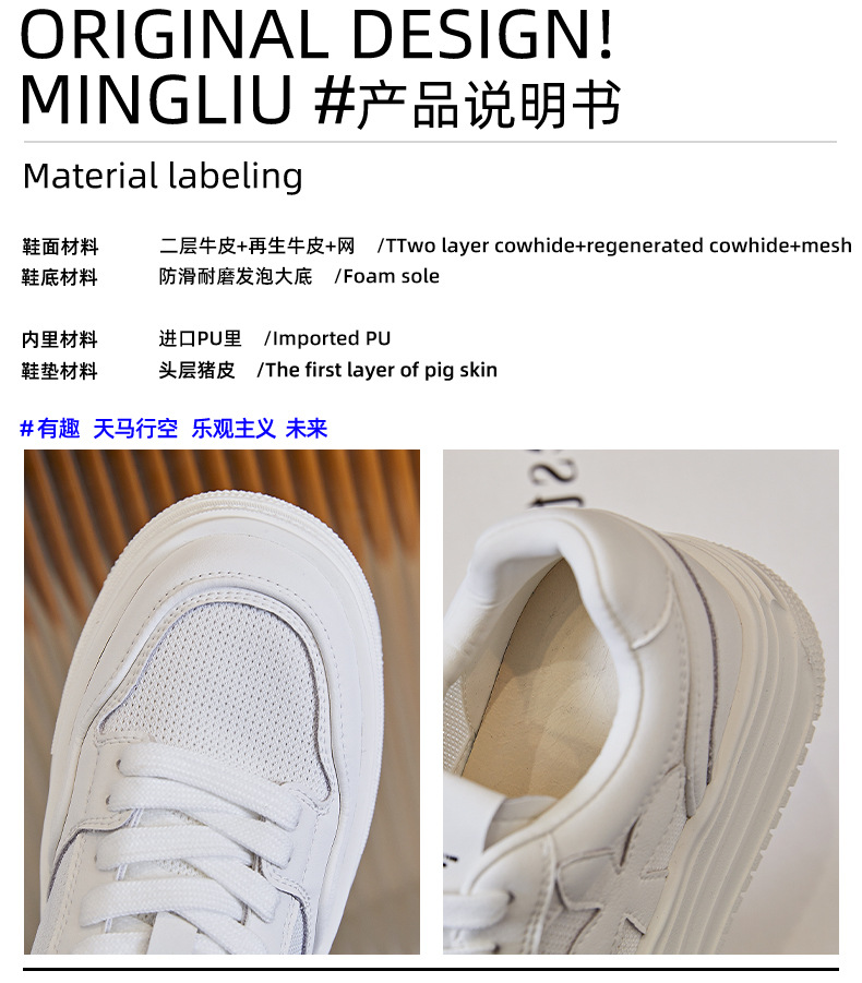 여성용 가죽 흰색 신발 거품 밑창 2024 여름 새로운 플랫폼 신발 높이 증가 스포츠 여성 신발 다목적 신발