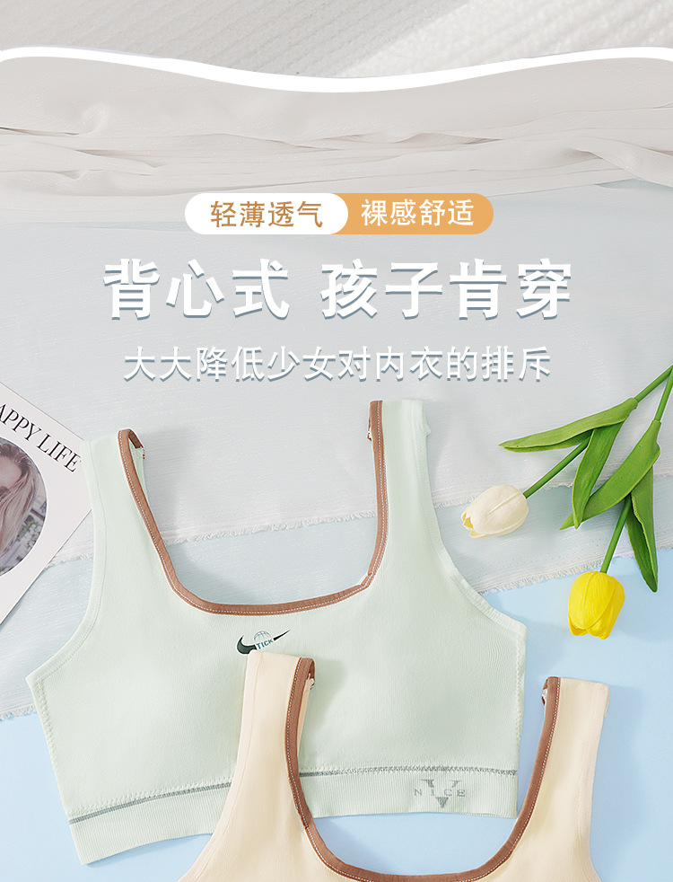 소녀 속옷 중학교 학생 개발 청소년 스포츠 조끼 통합 고정 코스터 편안한 통기성 가슴 랩스토어 가기