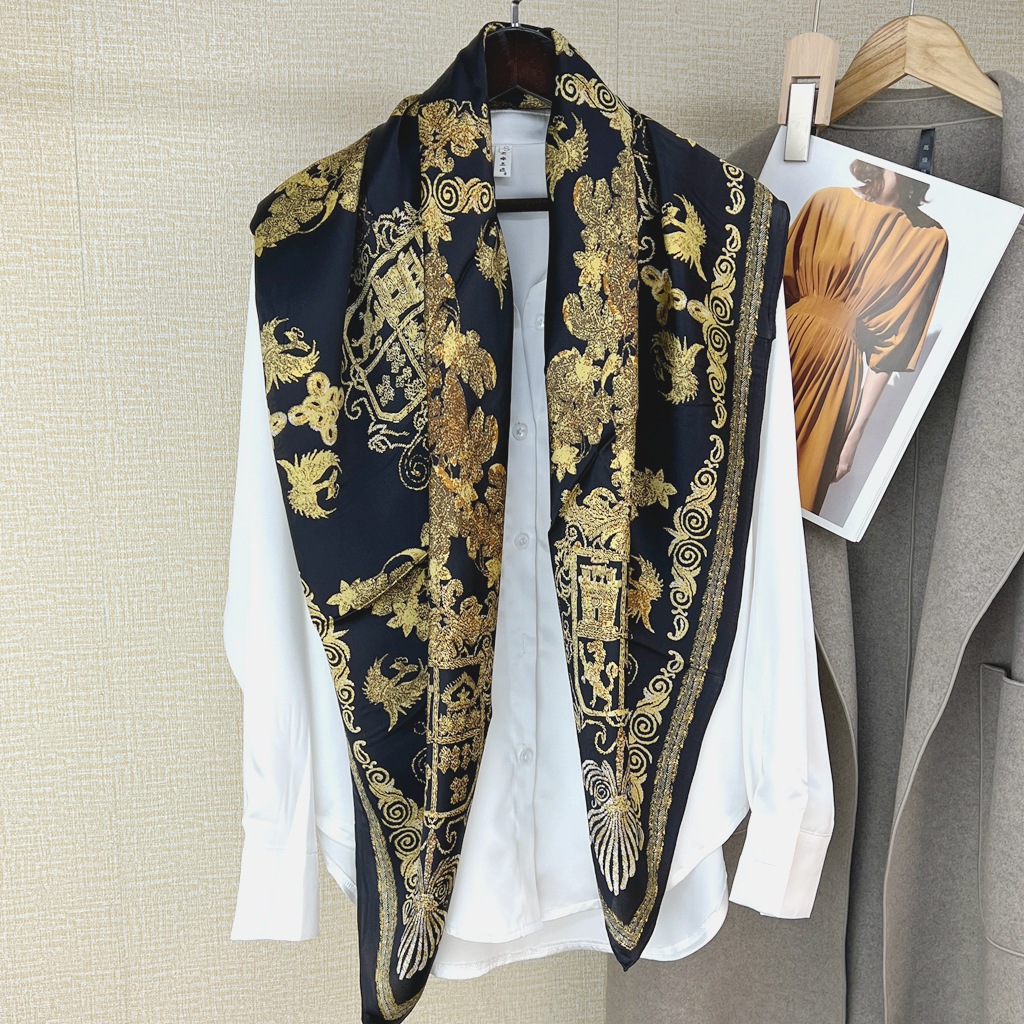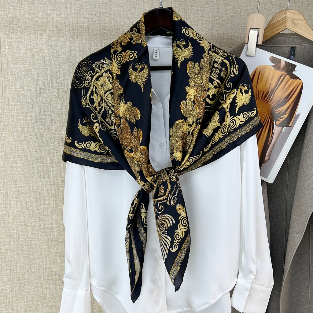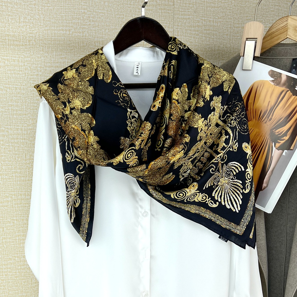 블랙 골든 피닉스 실크 크레이프 새틴 110 대형 스퀘어 스카프 뽕나무 실크 스카프 봄과 가을 여성을위한 새로운 대형 목도리 스카프스토어 가기
