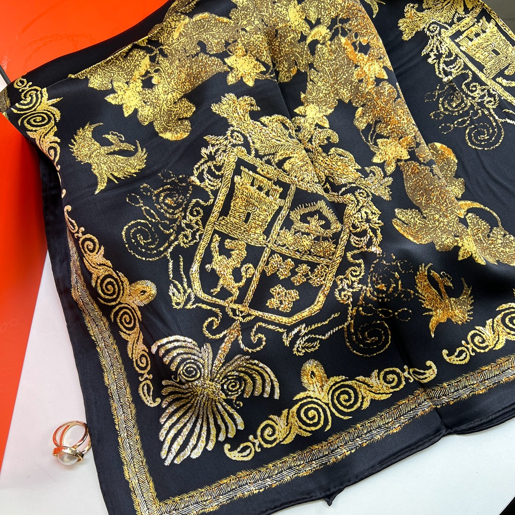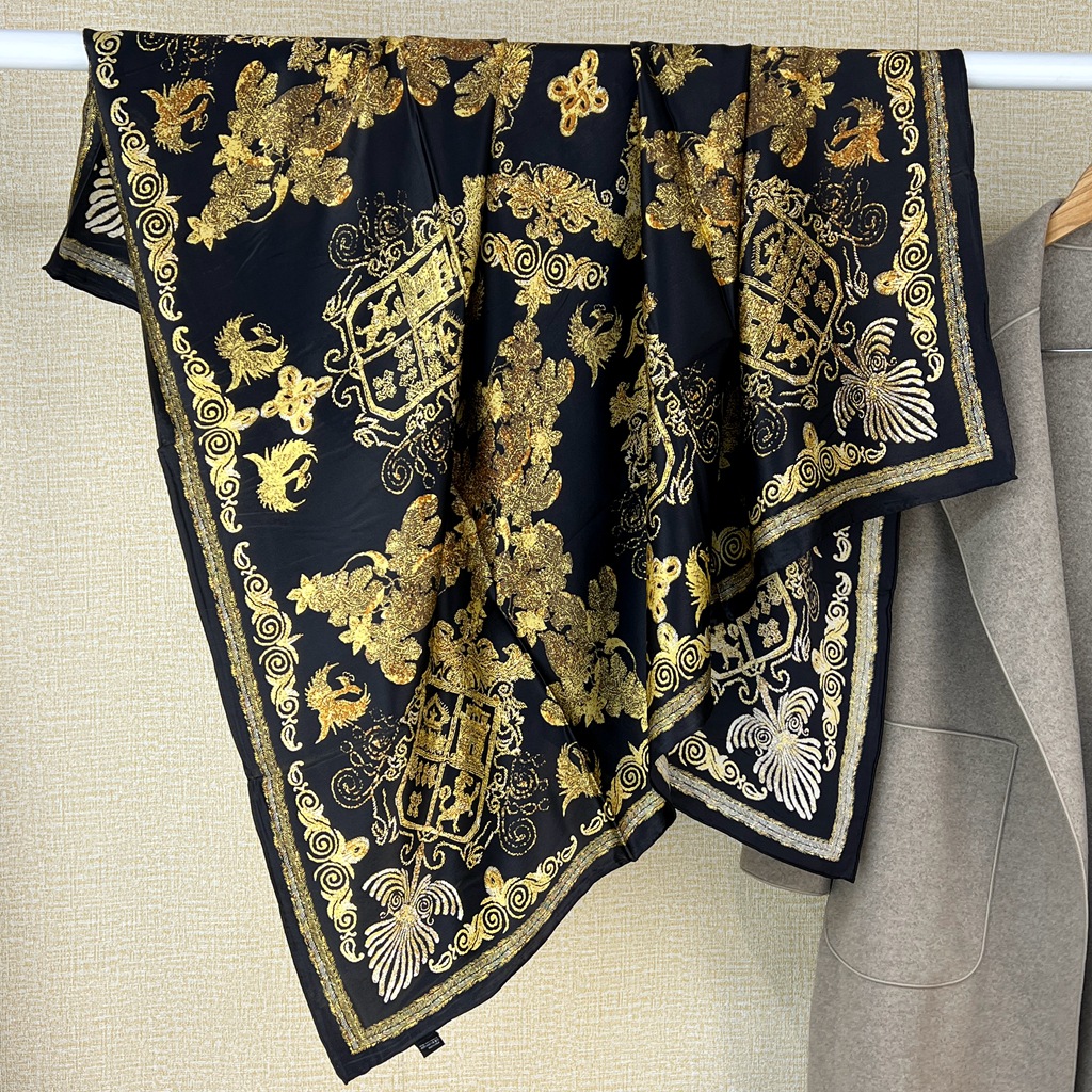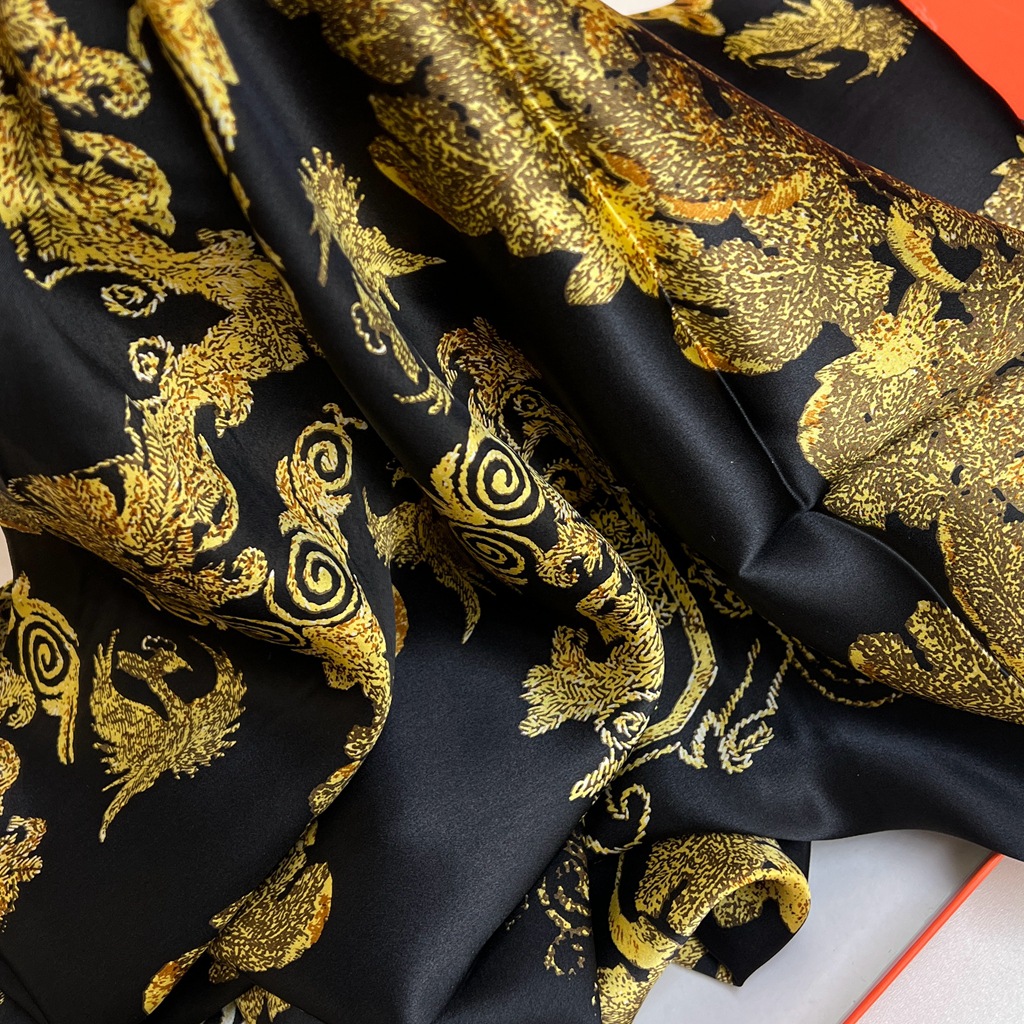 블랙 골든 피닉스 실크 크레이프 새틴 110 대형 스퀘어 스카프 뽕나무 실크 스카프 봄과 가을 여성을위한 새로운 대형 목도리 스카프스토어 가기