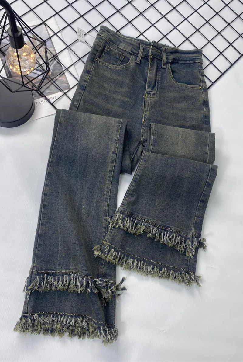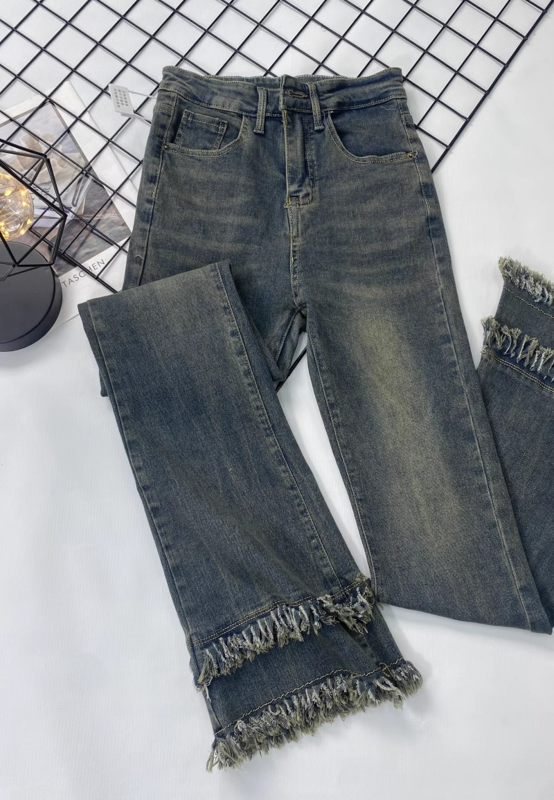 여성 봄과 여름 새로운 디자인 다재다능한 말굽 바지 스트레칭 슬리밍 바지를 위한 유행 뜨거운 소녀 술 플레어 진 청바지