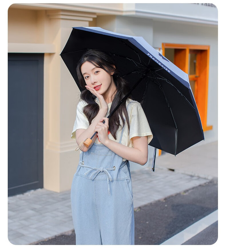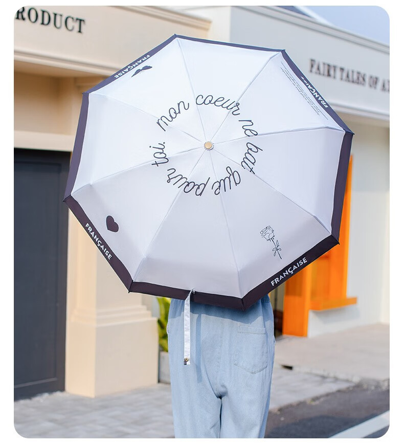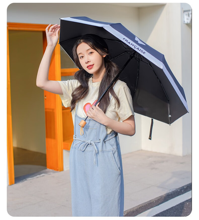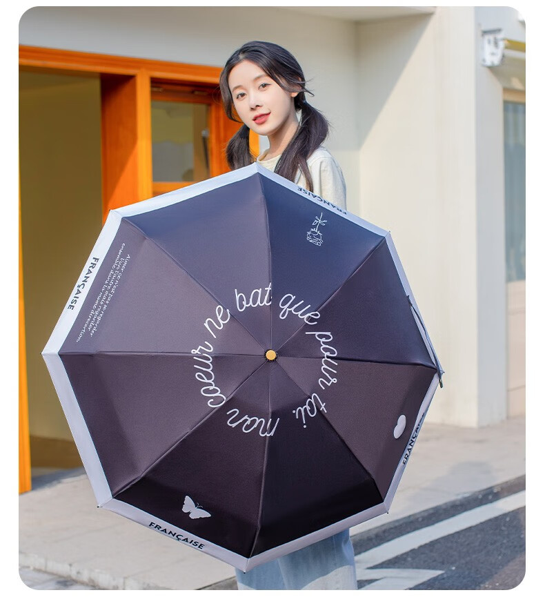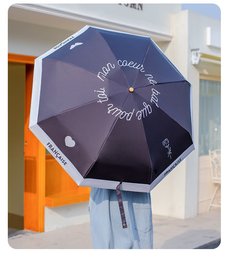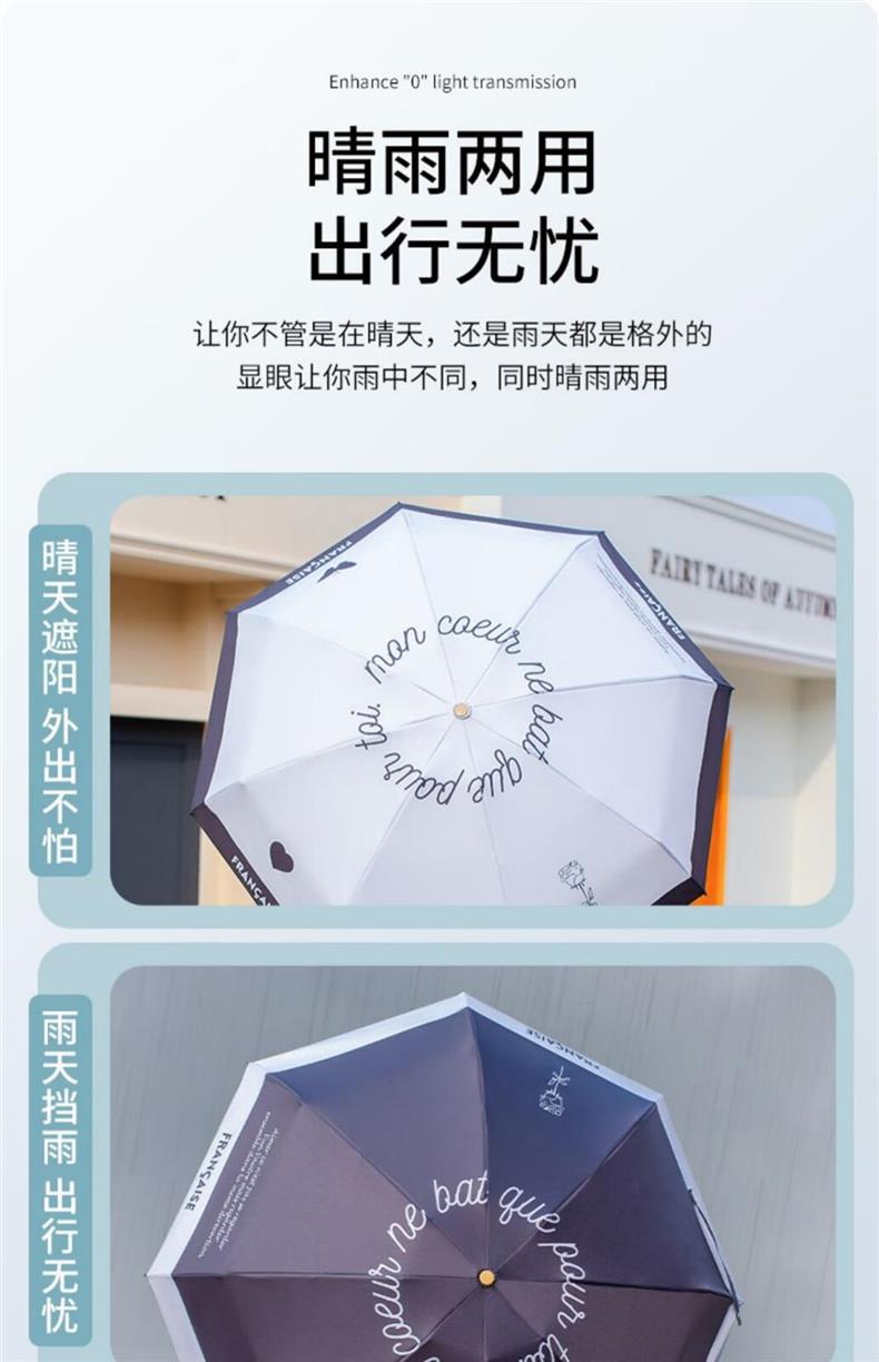 레트로 프랑스 샤넬 스타일 태양 우산 50% 작은 검은 색 접착제 자외선 차단 태양 우산 여성 차양 이중 사용스토어 가기