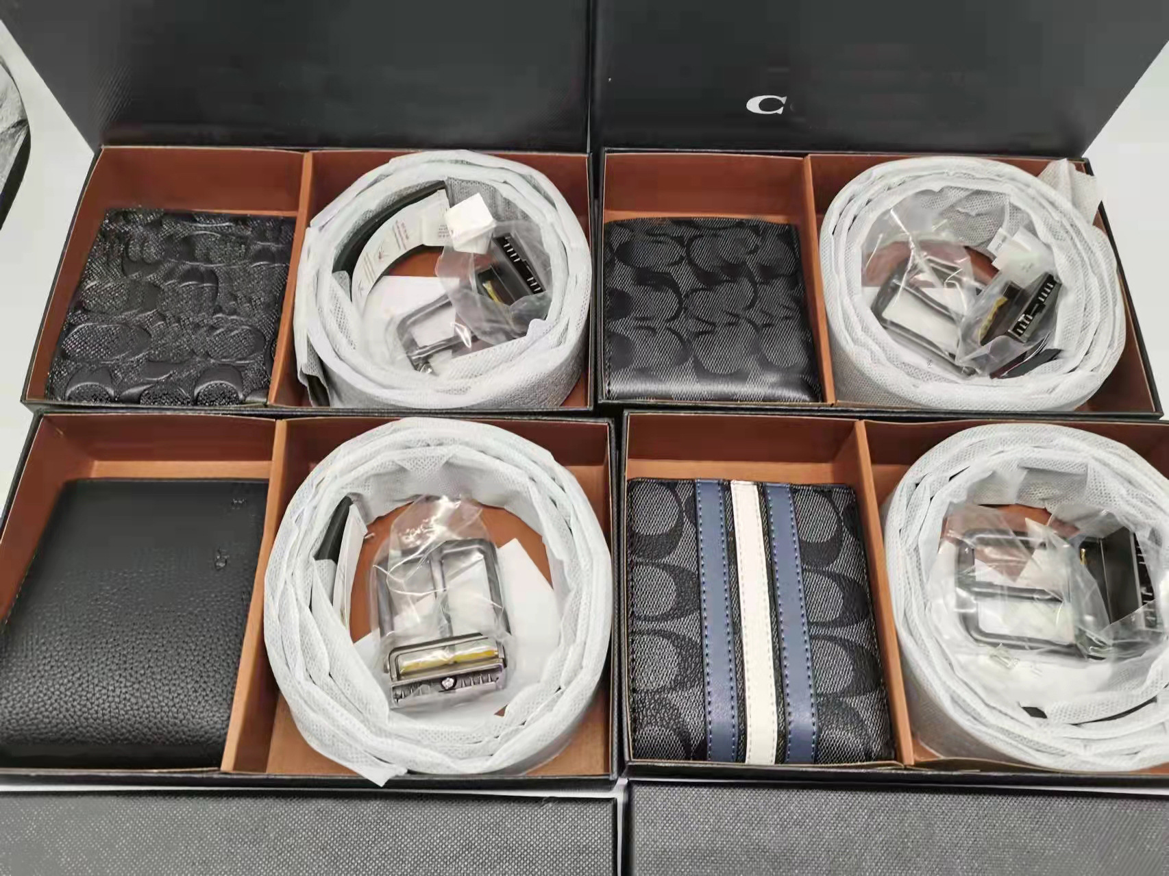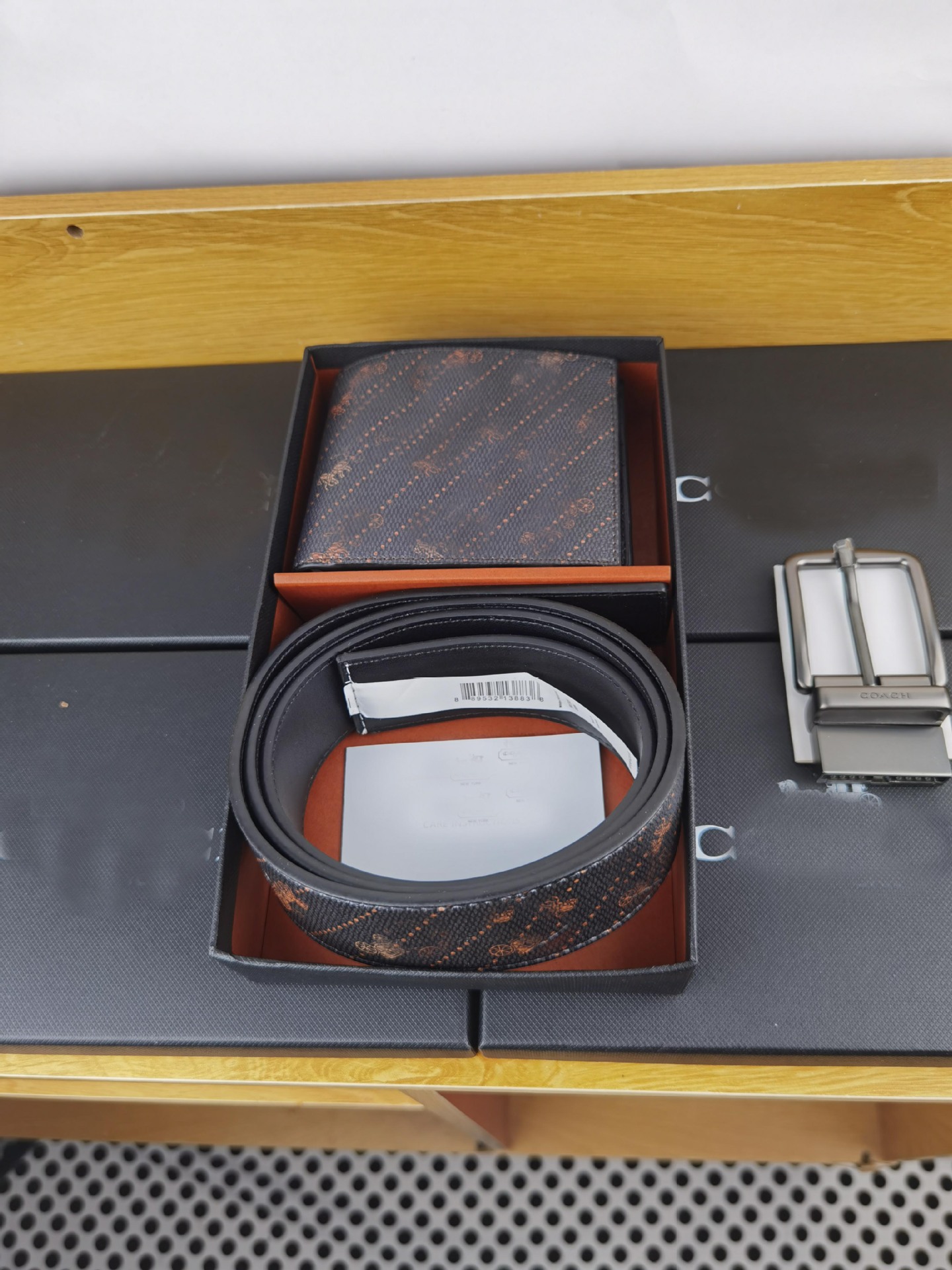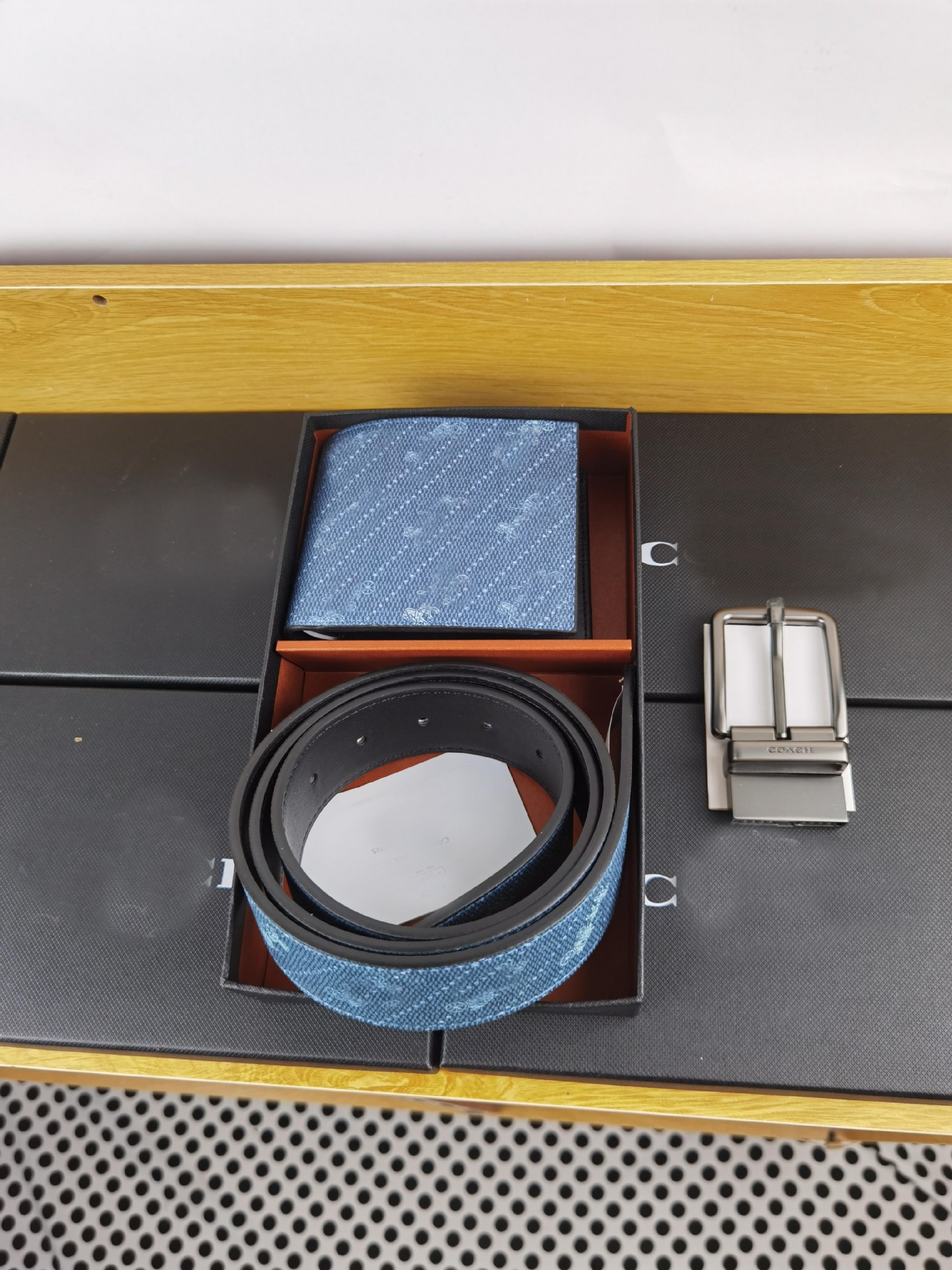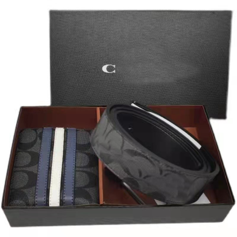 남성용 프린트 짧은 지갑 지갑 동전 핀 버클 남성용 벨트 전체 포장 고급 3 피스 세트스토어 가기