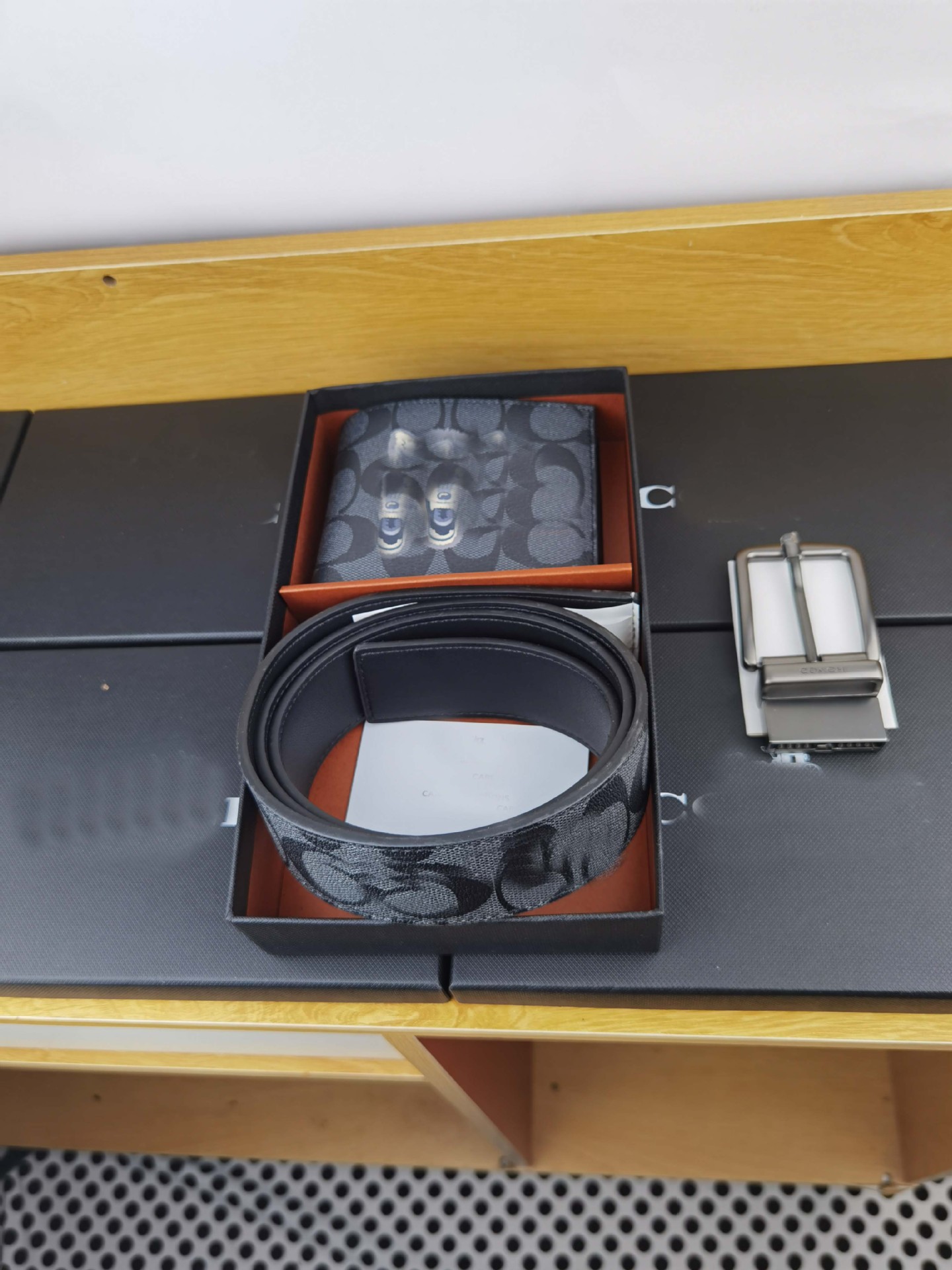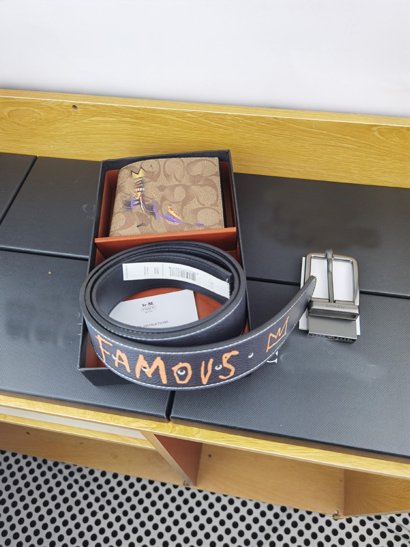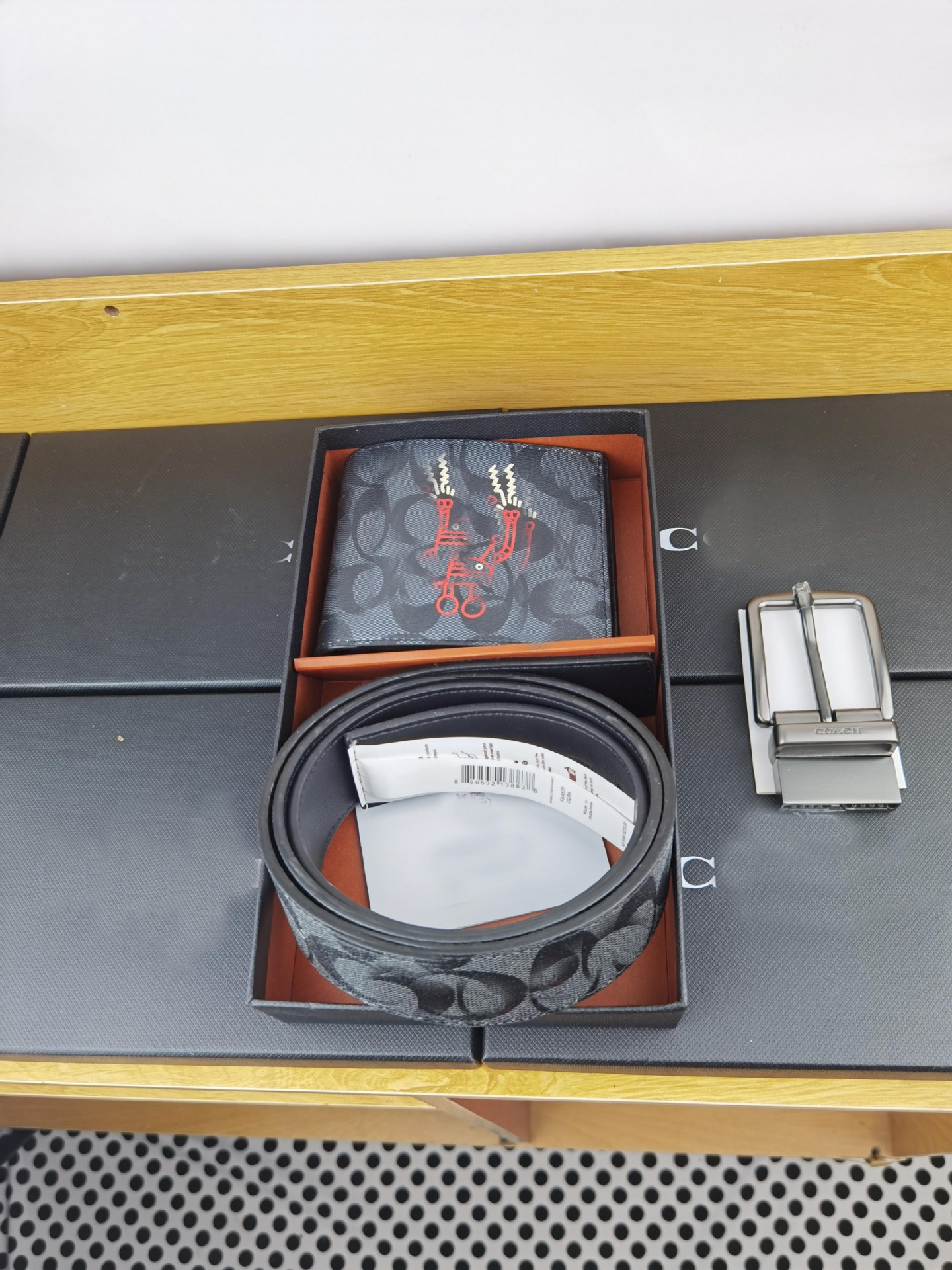 남성용 프린트 짧은 지갑 지갑 동전 핀 버클 남성용 벨트 전체 포장 고급 3 피스 세트스토어 가기