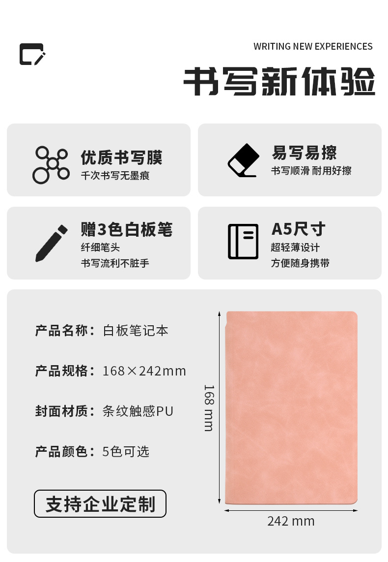 • 화이트 보드 초안 책-장미 분말 (3 가지 색상 0.5 보내기 3 펜 + 닦는 천 + 지우개)