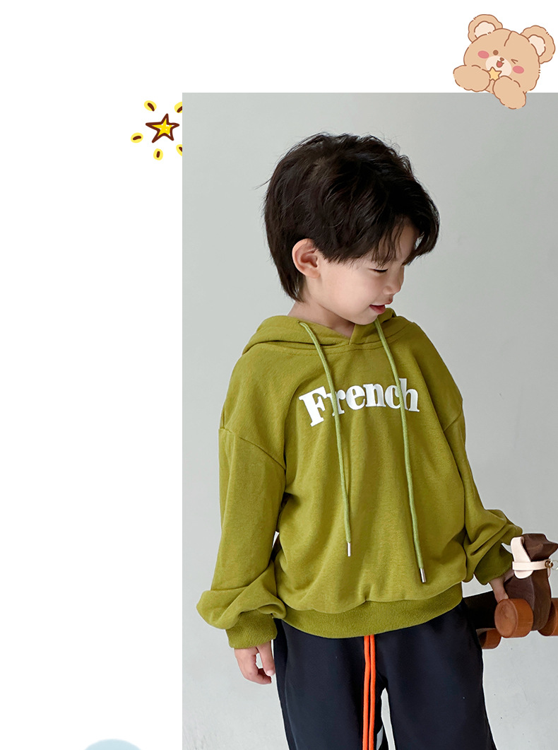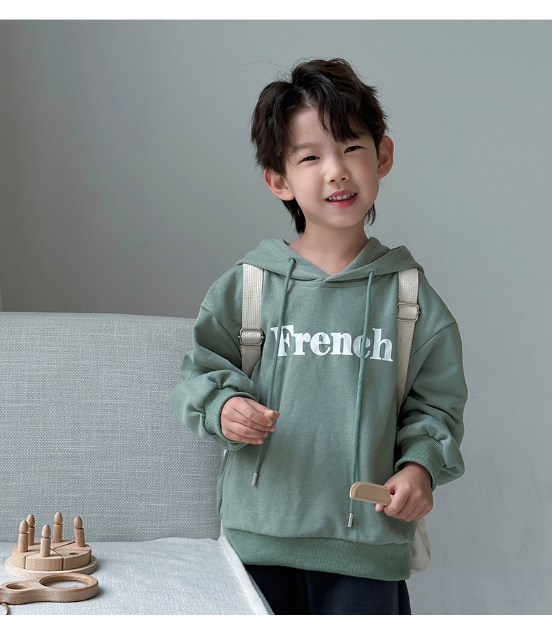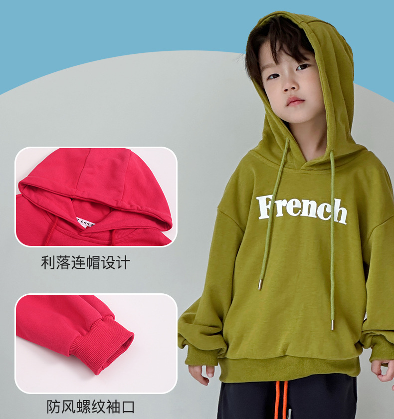 한국 아동복 소년 편지 스웨터 후드 봄 2024 새로운 어린이 봄과 가을 코트 베이비 탑