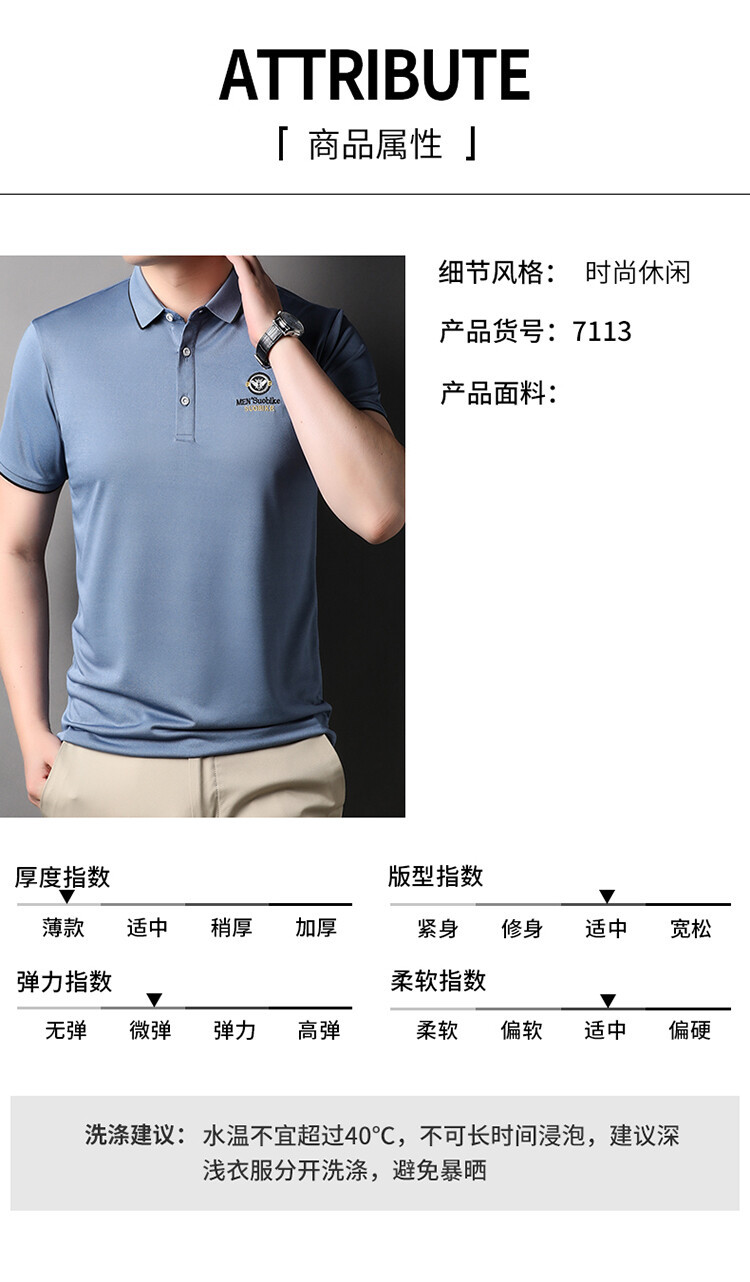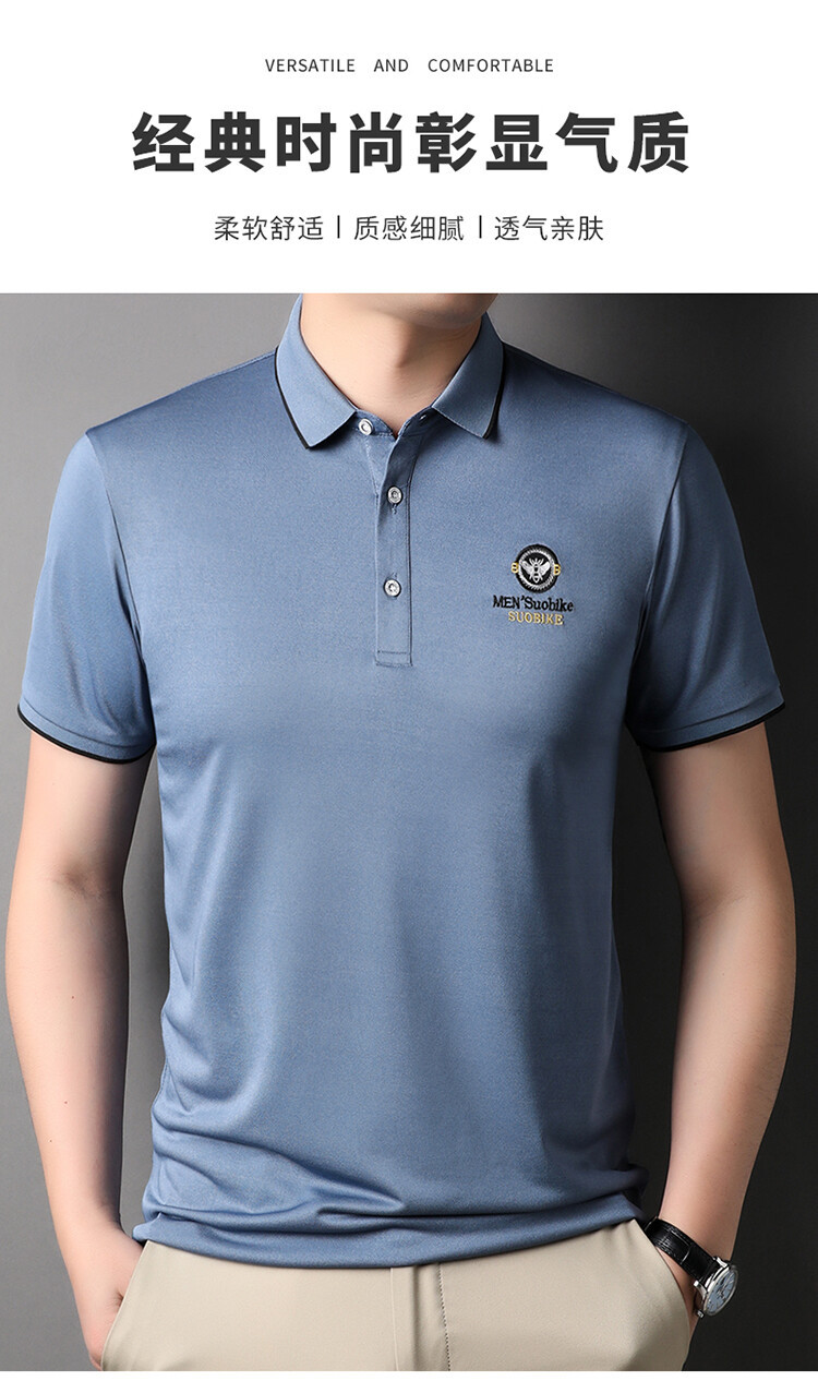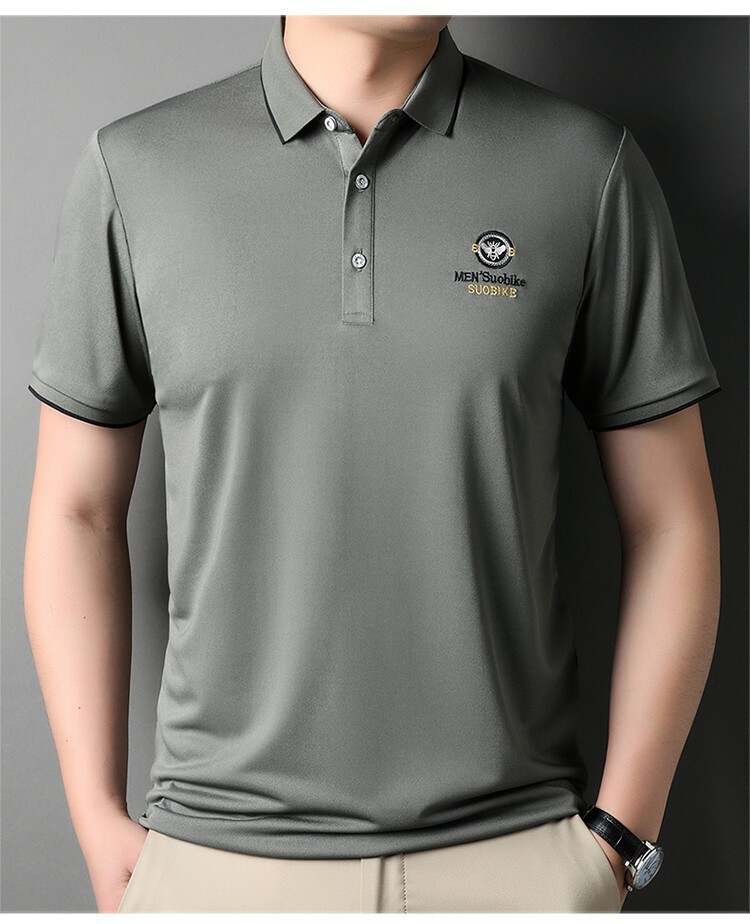 여름 중년 남성 반팔 티셔츠 아이스 실크 하이 엔드 자수 옷깃 폴로 셔츠 비즈니스 캐주얼 반소매 최고 남성스토어 가기