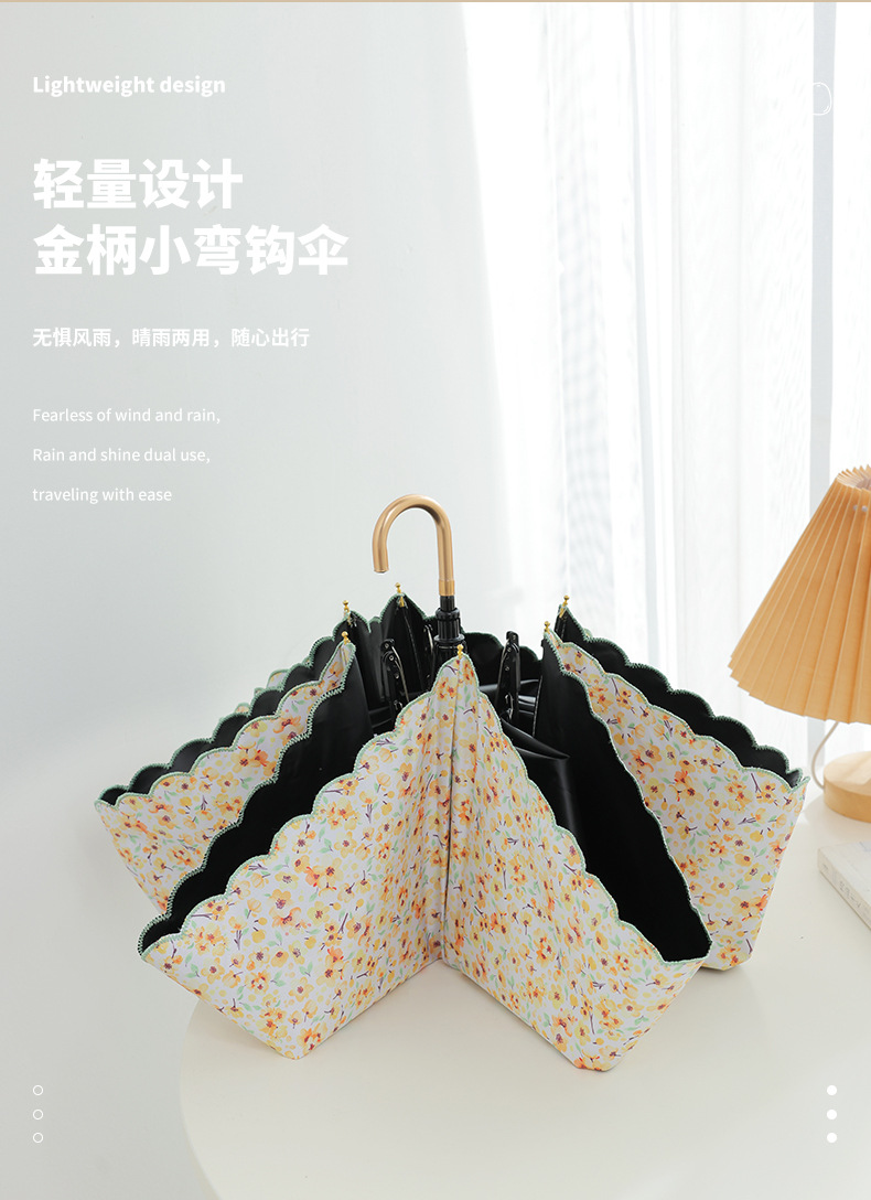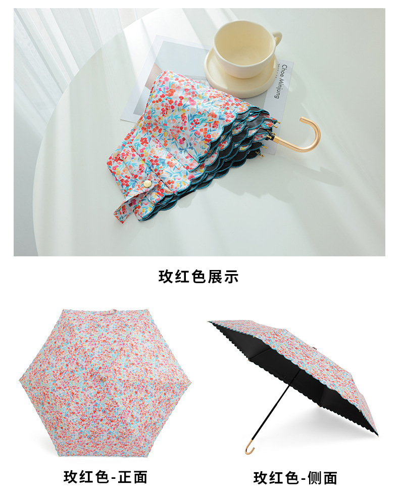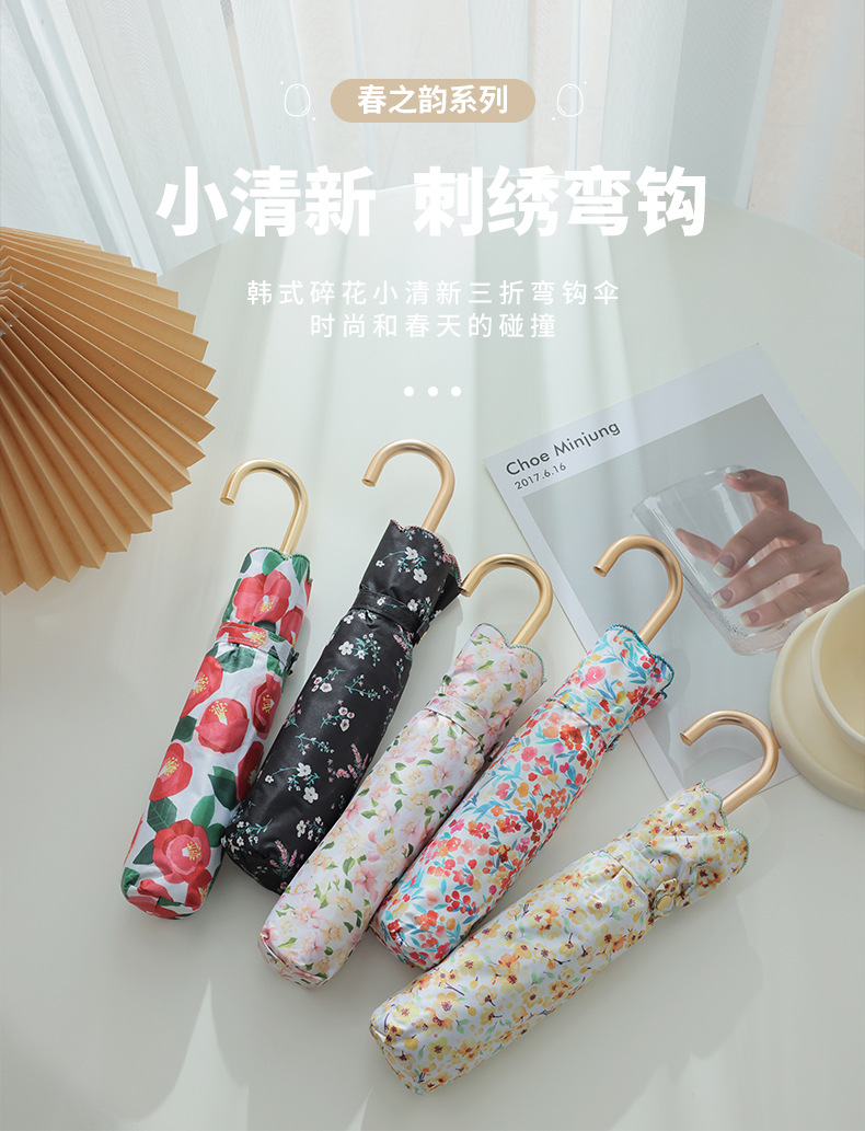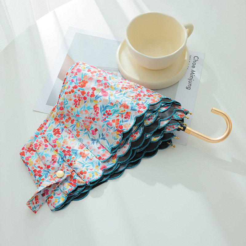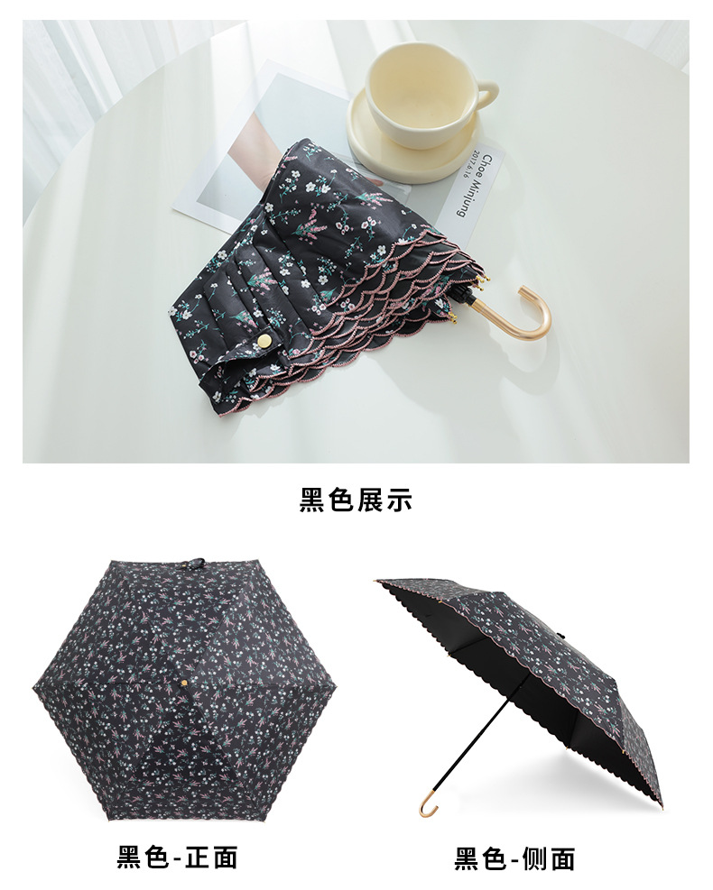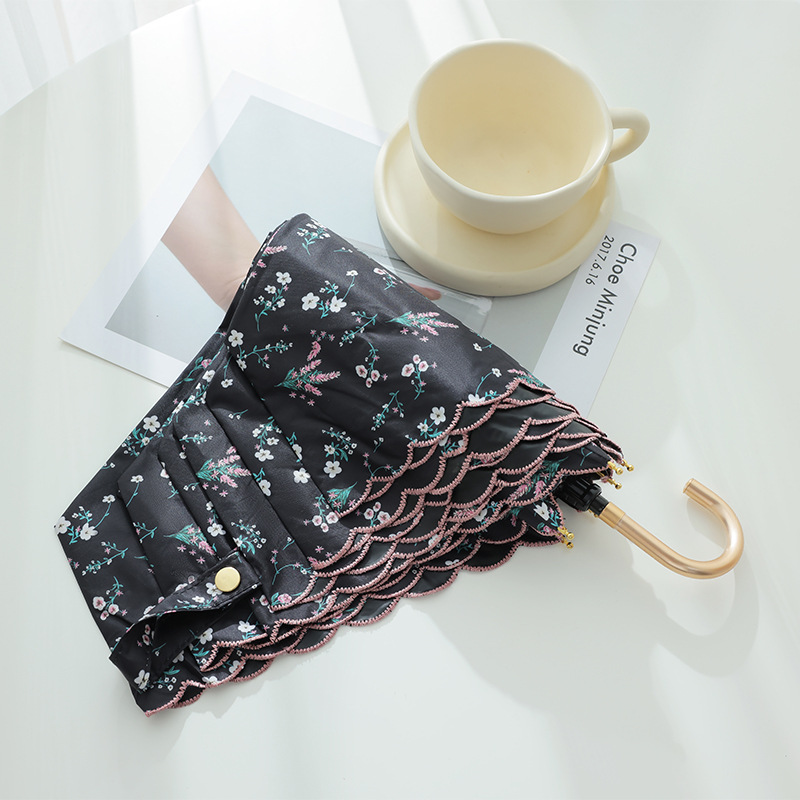 일본 여신 자수 곡선 후크 3 배 우산 꽃 레이디 신선한 검은 접착제 태양 우산 자외선 차단 태양 우산스토어 가기