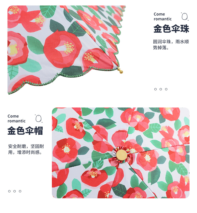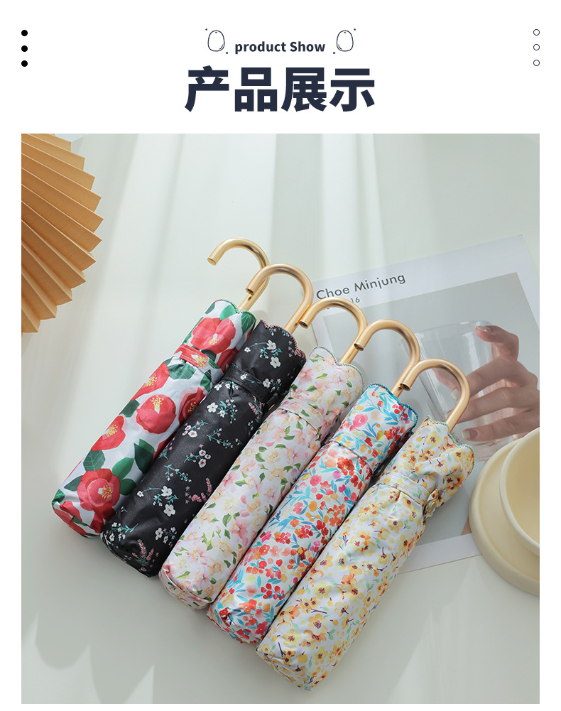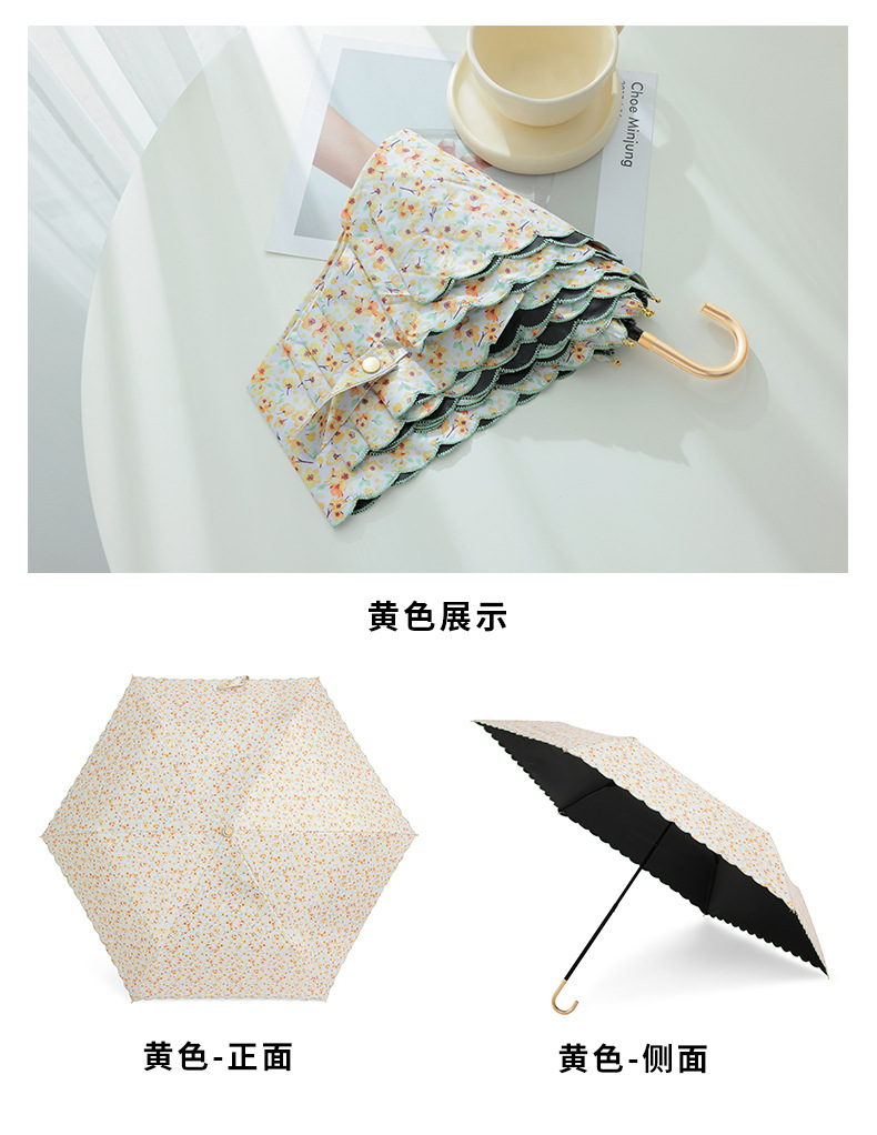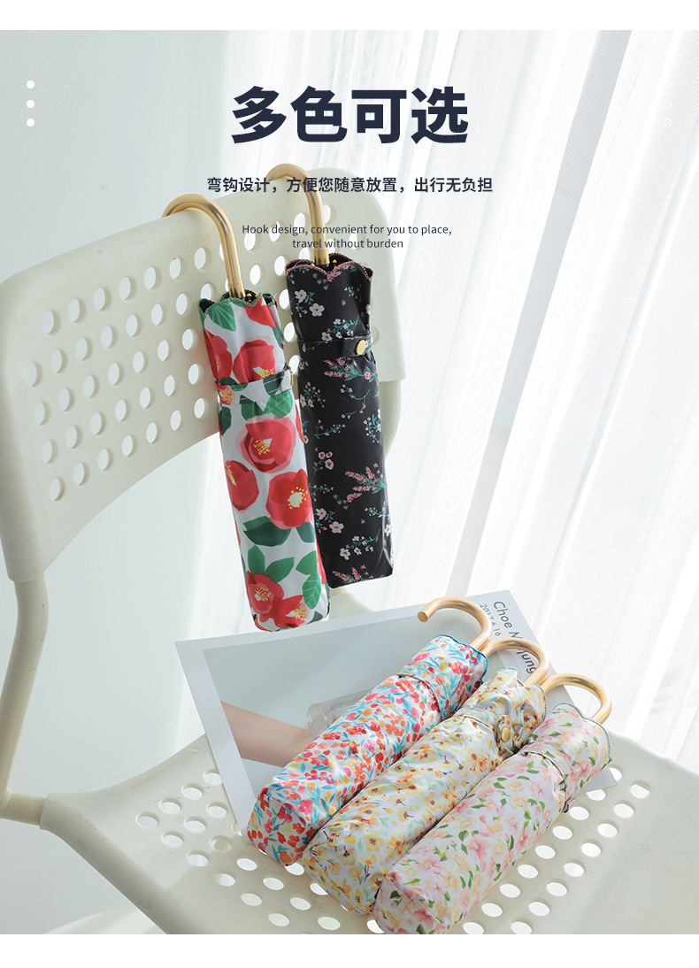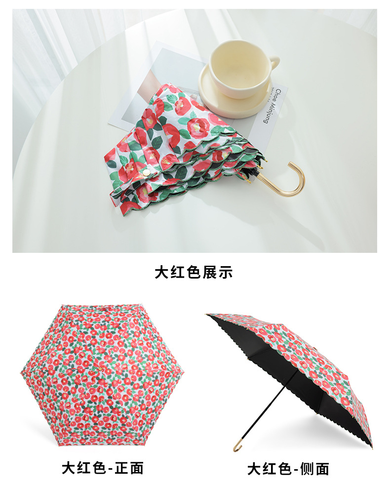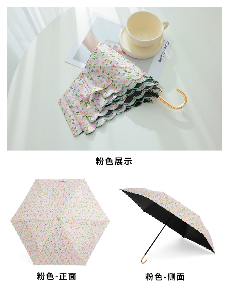 일본 여신 자수 곡선 후크 3 배 우산 꽃 레이디 신선한 검은 접착제 태양 우산 자외선 차단 태양 우산스토어 가기
