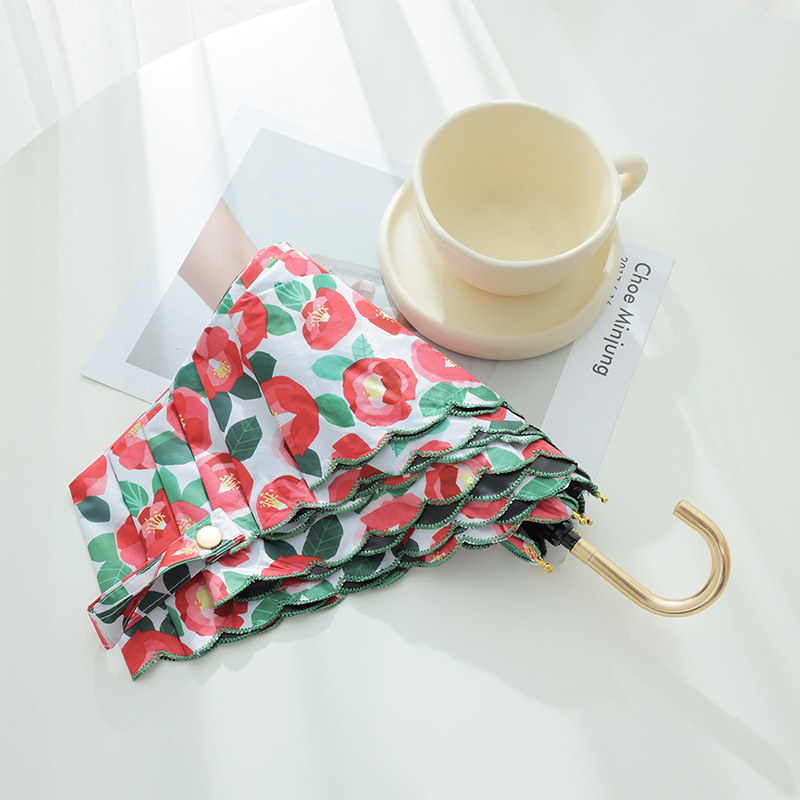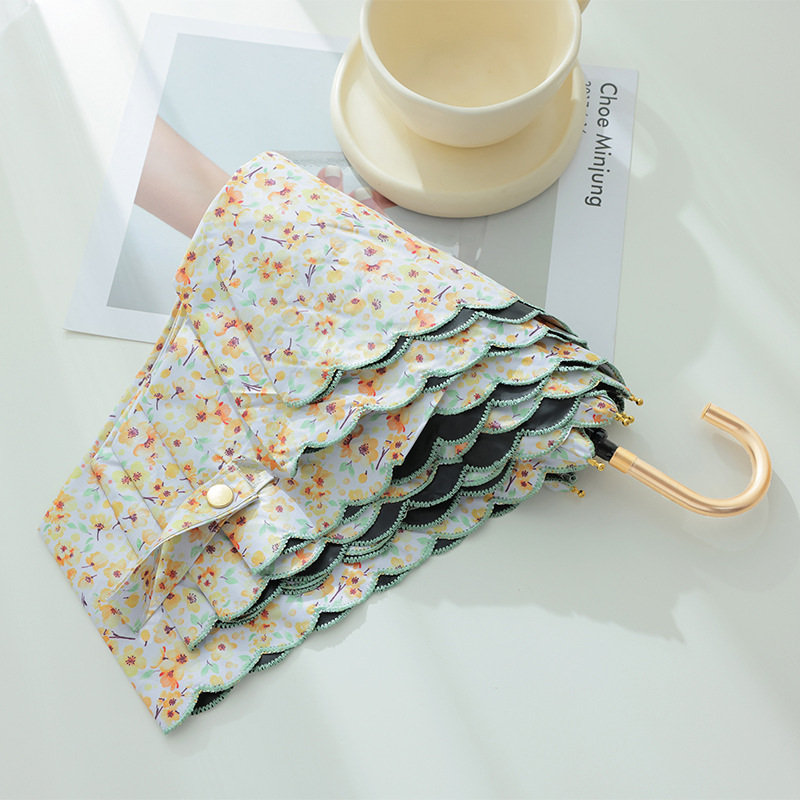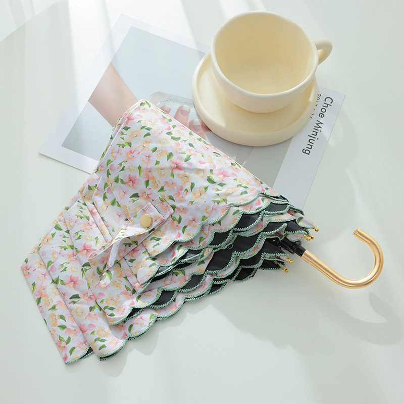 일본 여신 자수 곡선 후크 3 배 우산 꽃 레이디 신선한 검은 접착제 태양 우산 자외선 차단 태양 우산