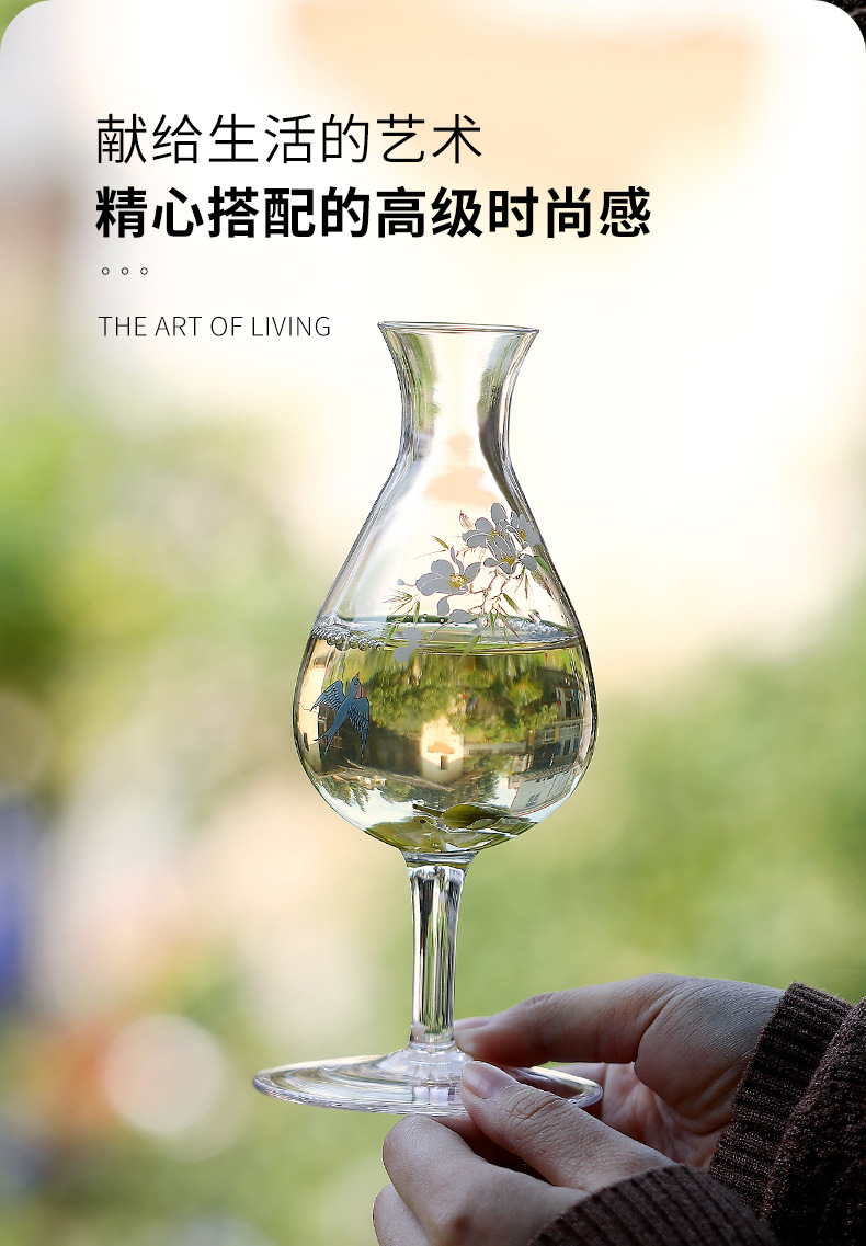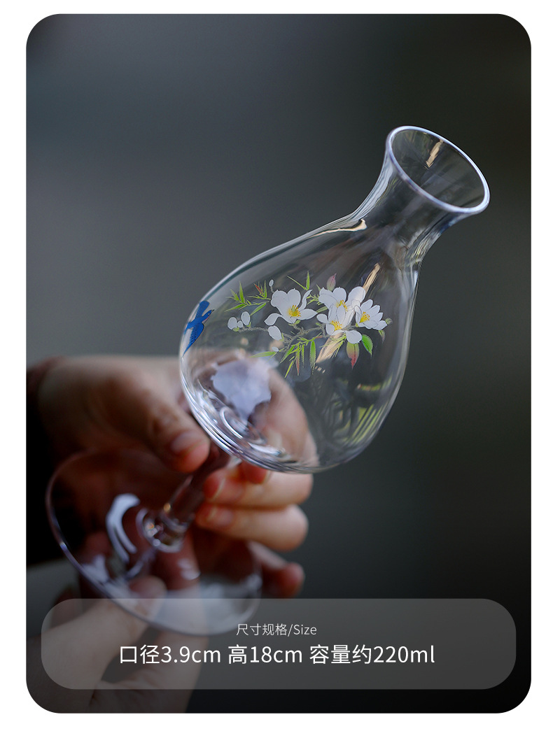 봄 꽃 봉오리 유리 높은 다리 차 세트 창조적 인 차 컵 성격 높은 다리 남성 컵 꽃 녹차 컵 포도 디캔터 컵