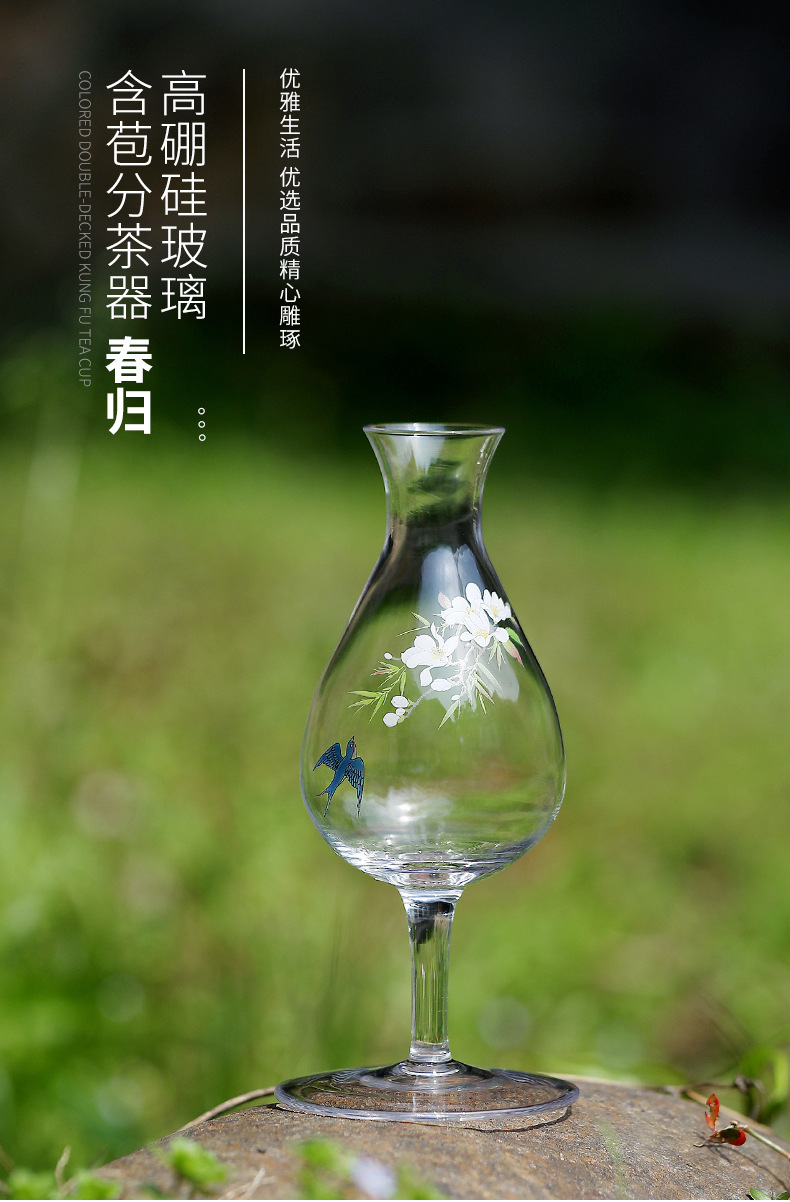 봄 꽃 봉오리 유리 높은 다리 차 세트 창조적 인 차 컵 성격 높은 다리 남성 컵 꽃 녹차 컵 포도 디캔터 컵스토어 가기
