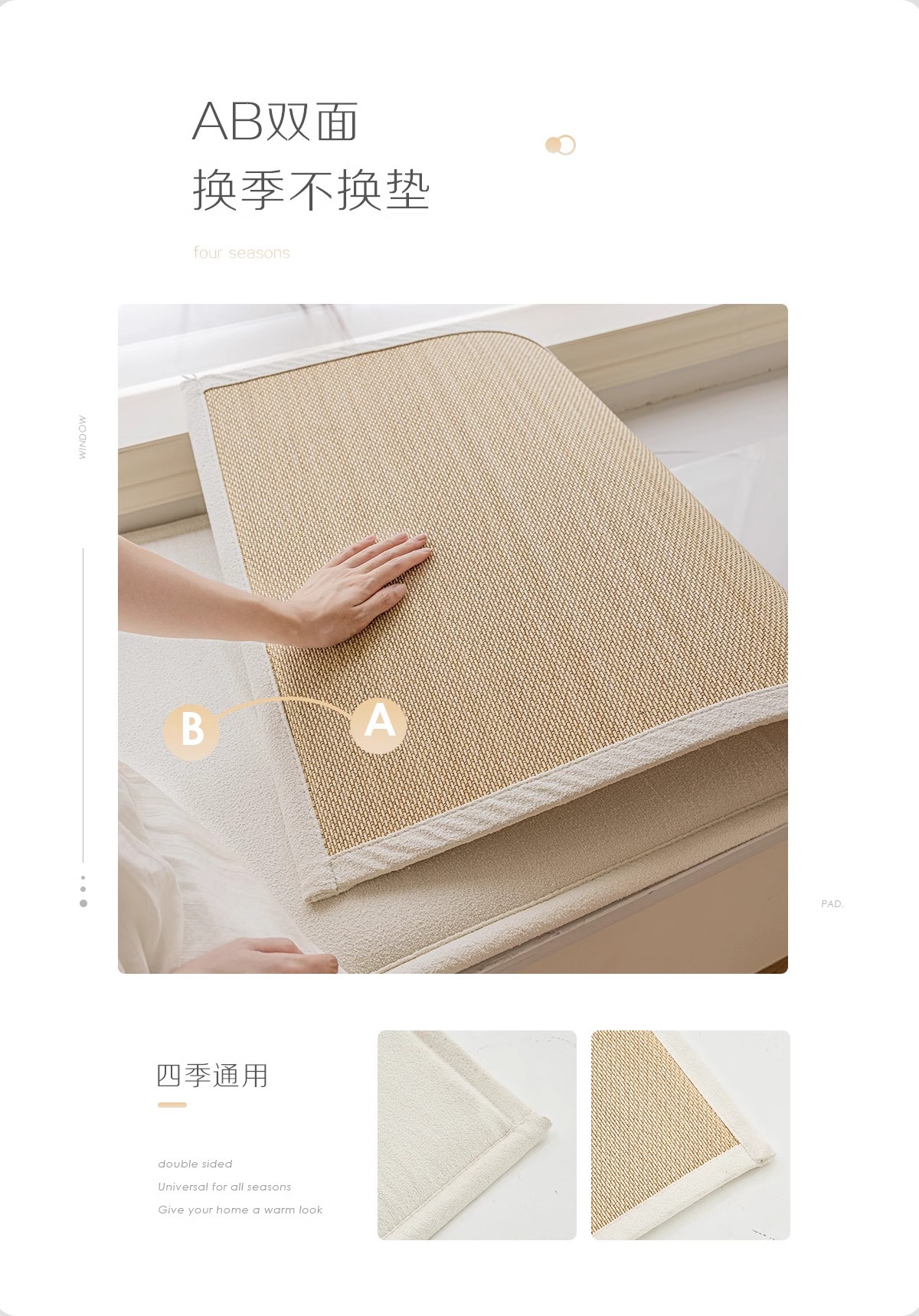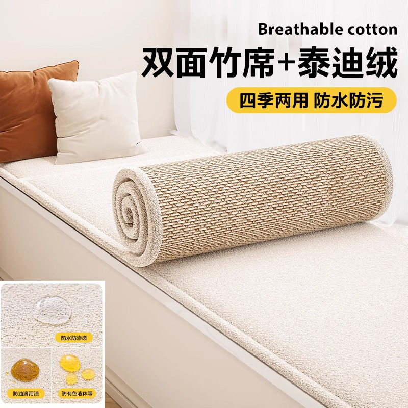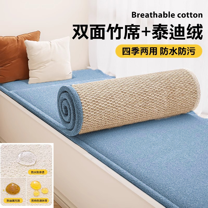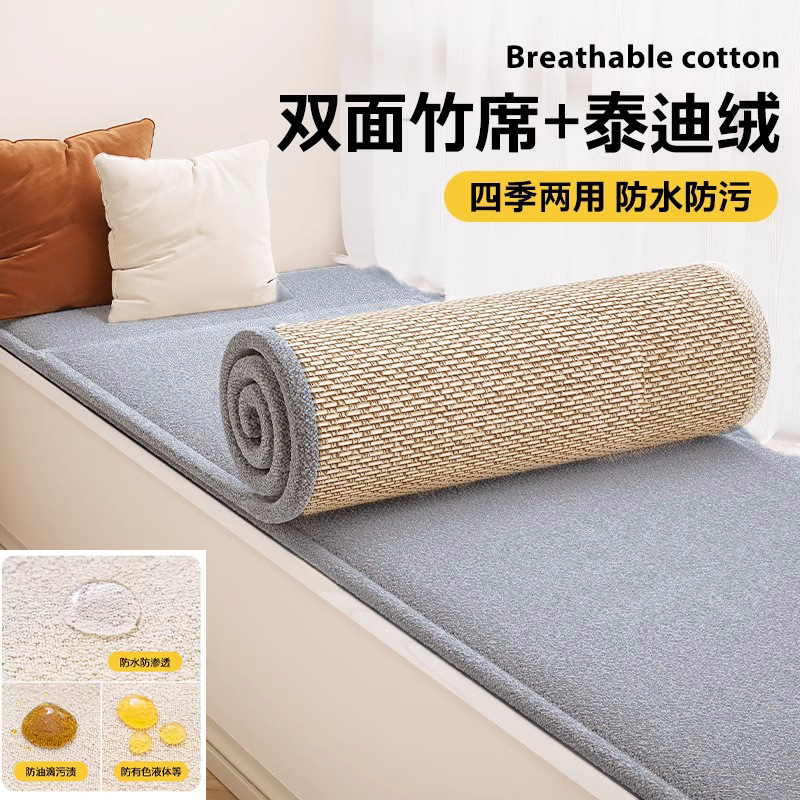 양면 베이 창 매트 창 매트 2024 새로운 사계절 유니버설 발코니 매트 대나무 매트 테디 벨벳 제거 및 세척 가능한 쿠션 여름스토어 가기