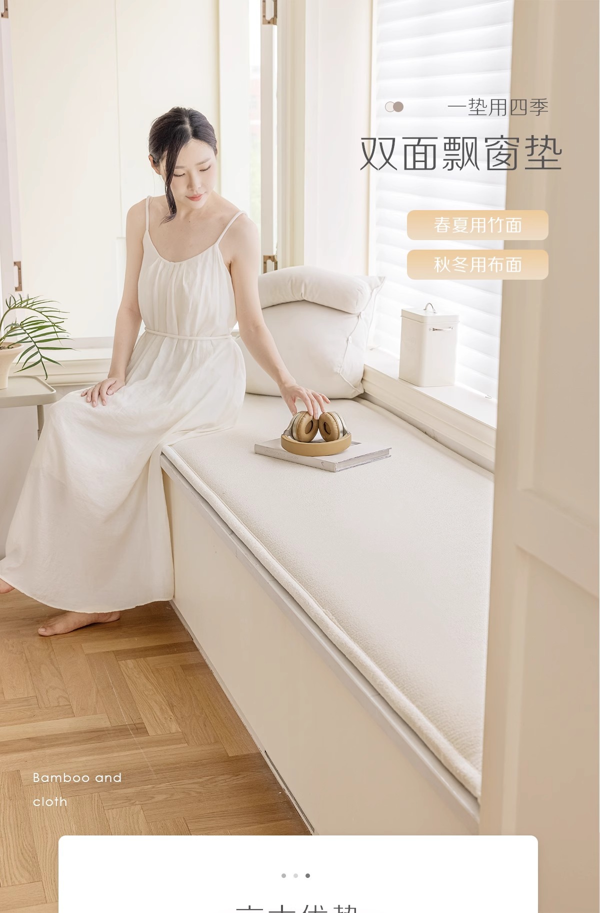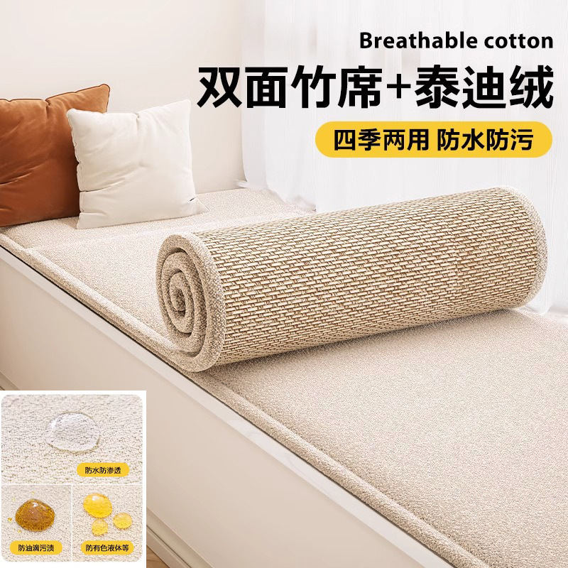 양면 베이 창 매트 창 매트 2024 새로운 사계절 유니버설 발코니 매트 대나무 매트 테디 벨벳 제거 및 세척 가능한 쿠션 여름