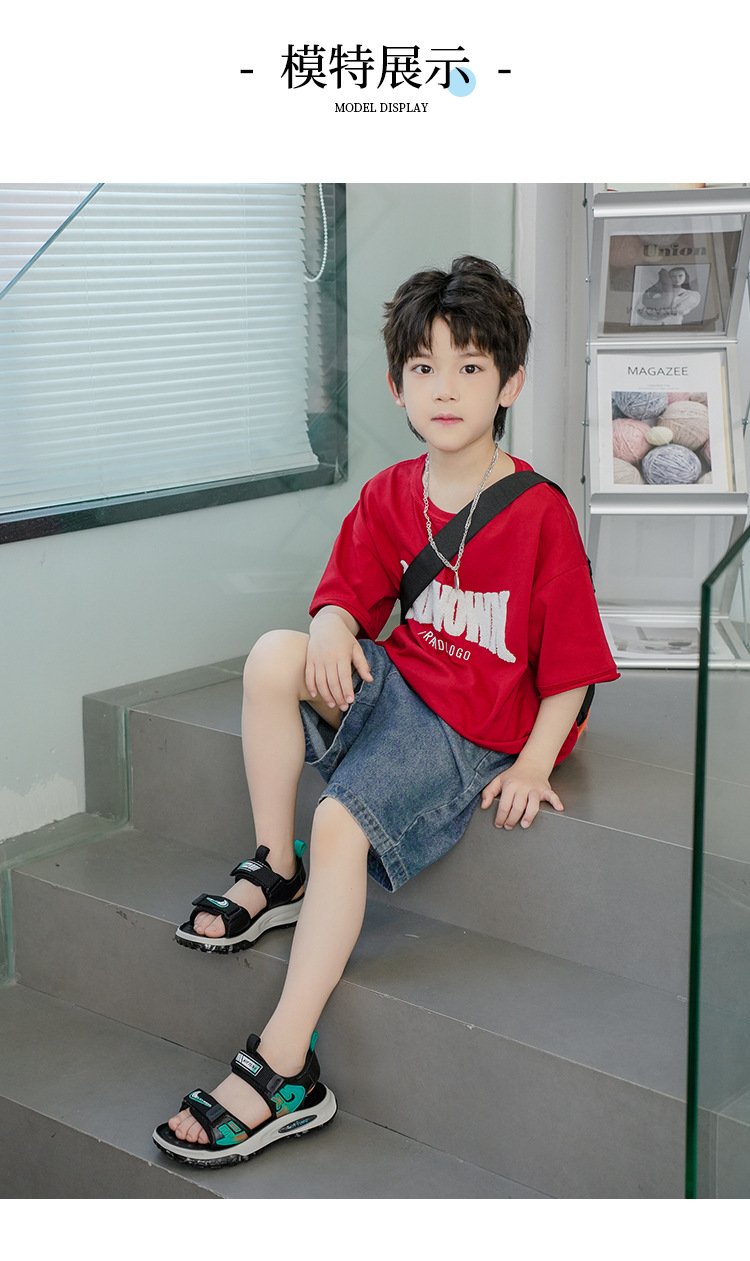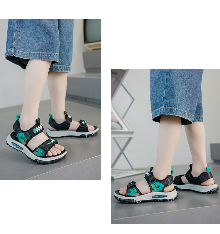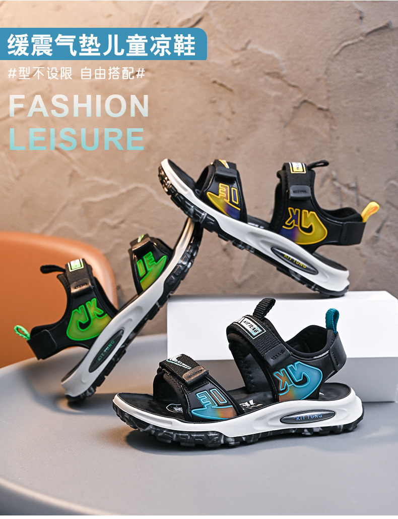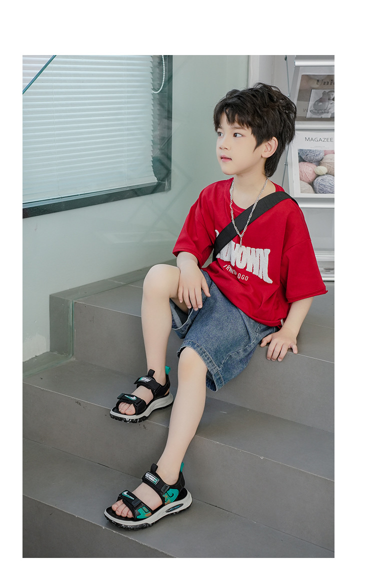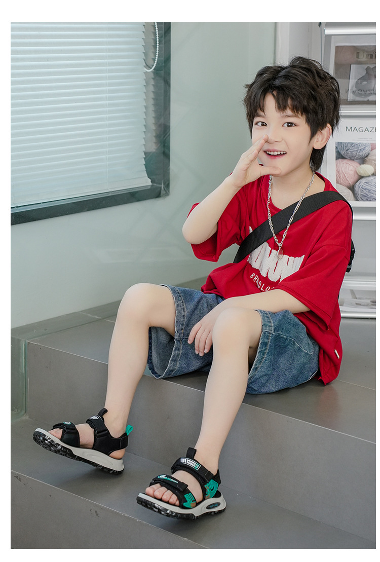 소년 샌들 2025 새로운 여름 한국 스타일 어린이 신발 큰 어린이 부드러운 바닥 어린 소년 아기 해변 신발 유행