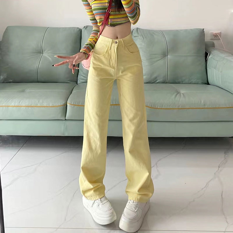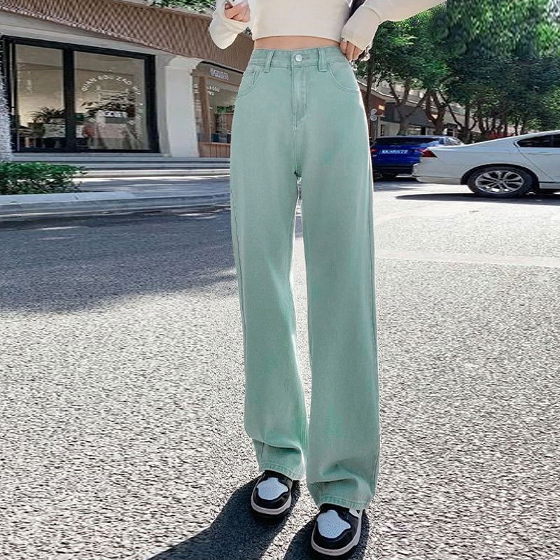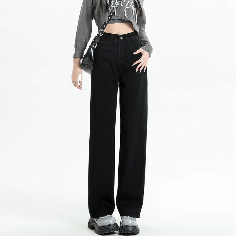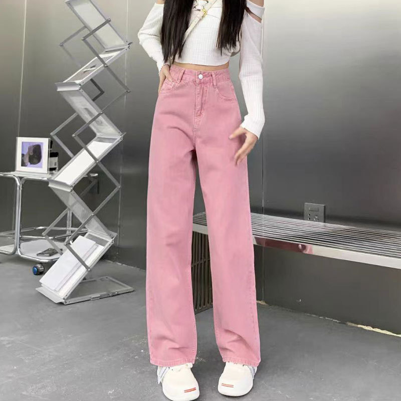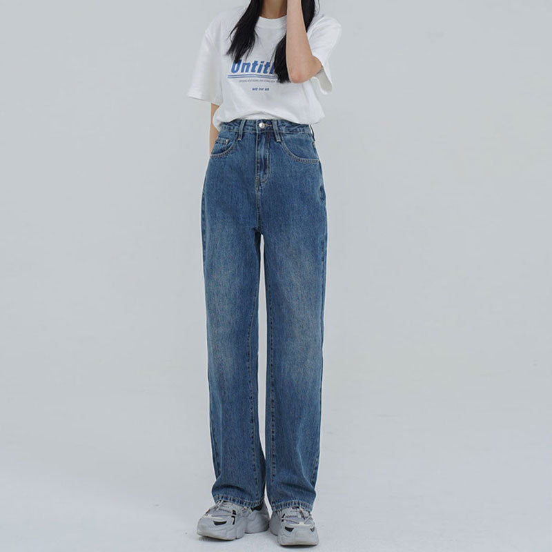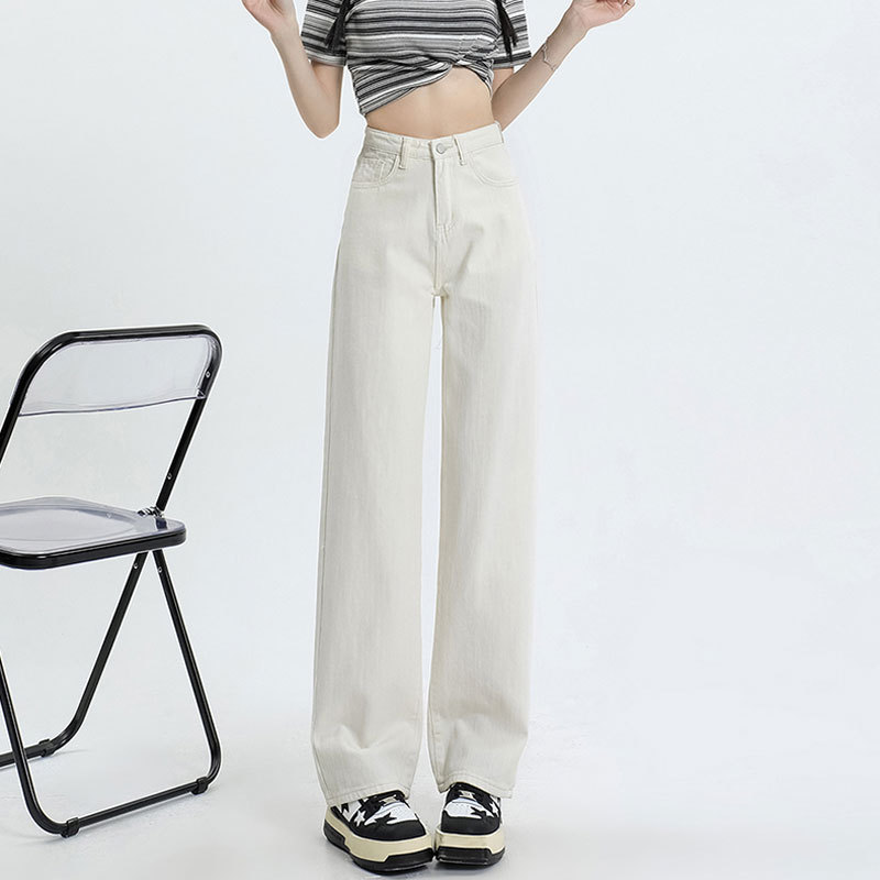 흰색 느슨한 배 모양의 넓은 다리 청바지 여성 플러스 사이즈 인터넷 유명 패션 드레이핑 스트레이트 팬츠 걸레 바지스토어 가기