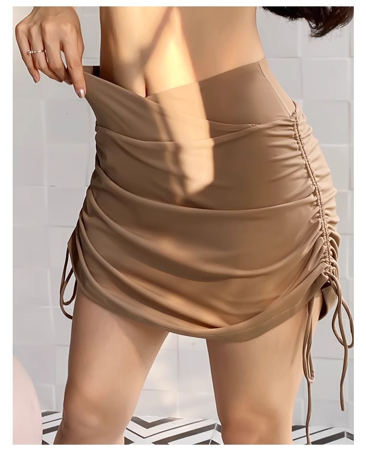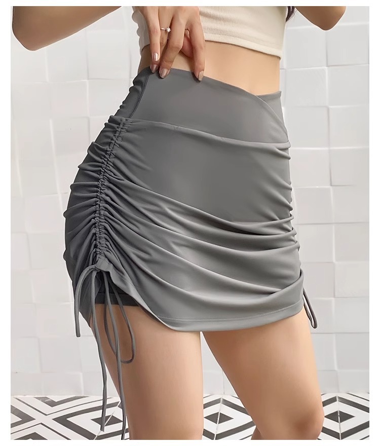 미국식 하이 웨이스트 슬리밍 플리츠 힙 스커트 여성의 여름 얇은 드로 스트링 조절 스커트 매운 소녀 다리 길이 스커트