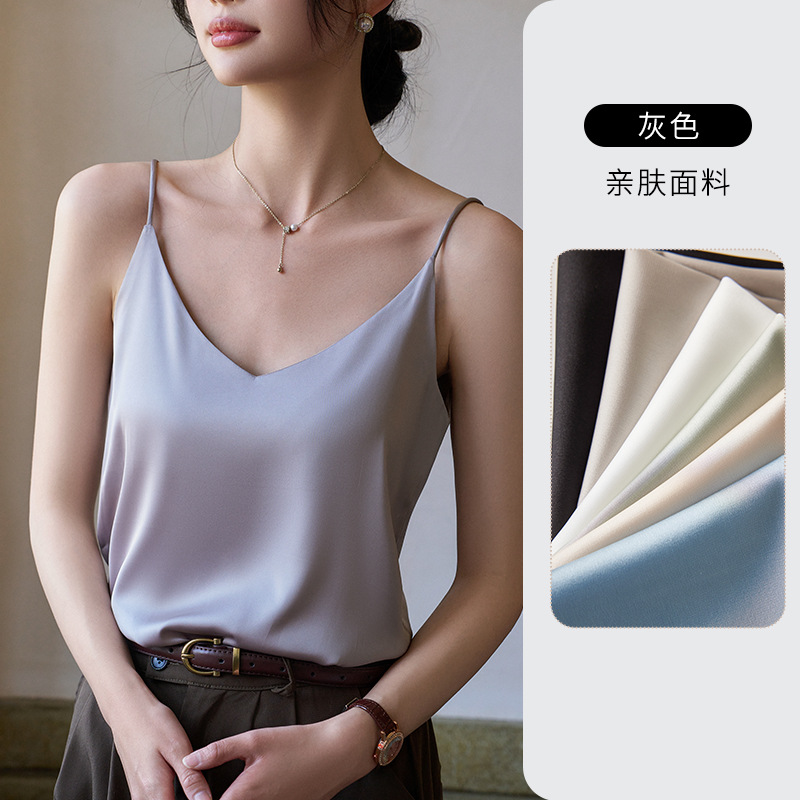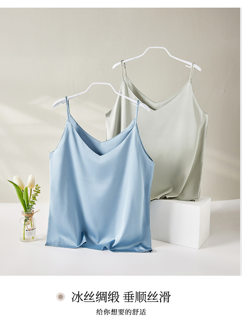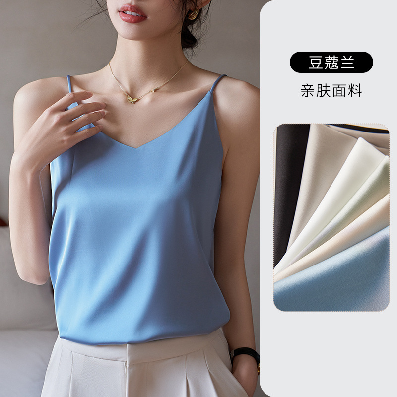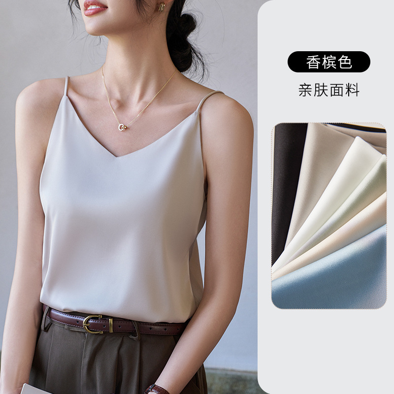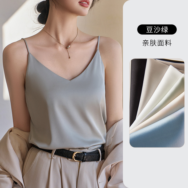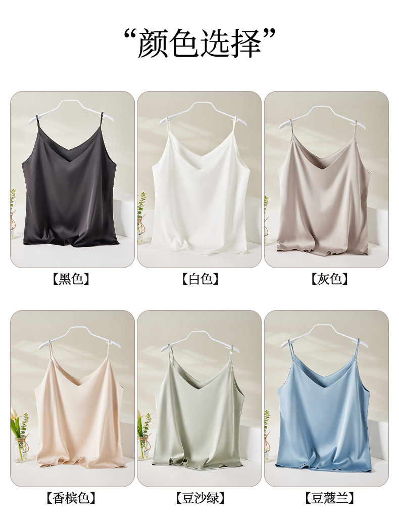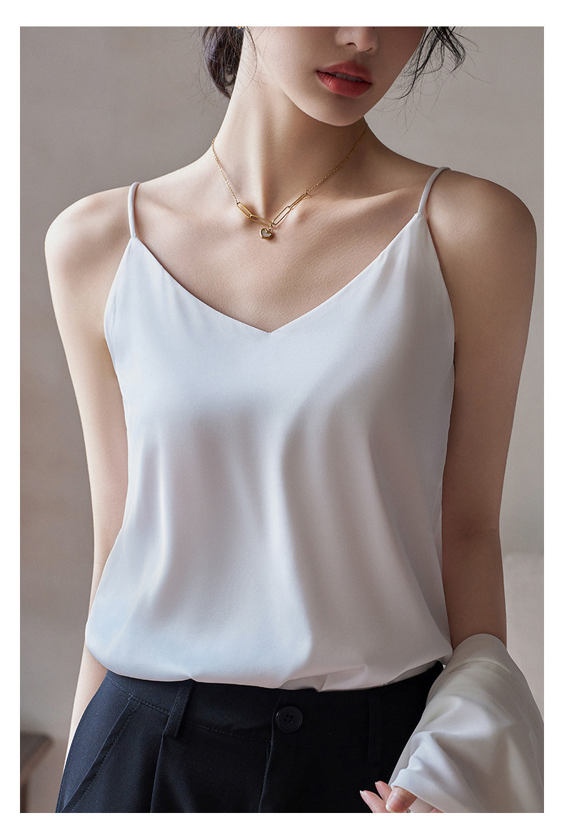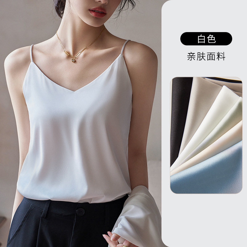 Camisole 여성의 내부 세트 2024 새로운 느슨한 흰색베이스 새틴 인공 실크 탑 여름 겉옷