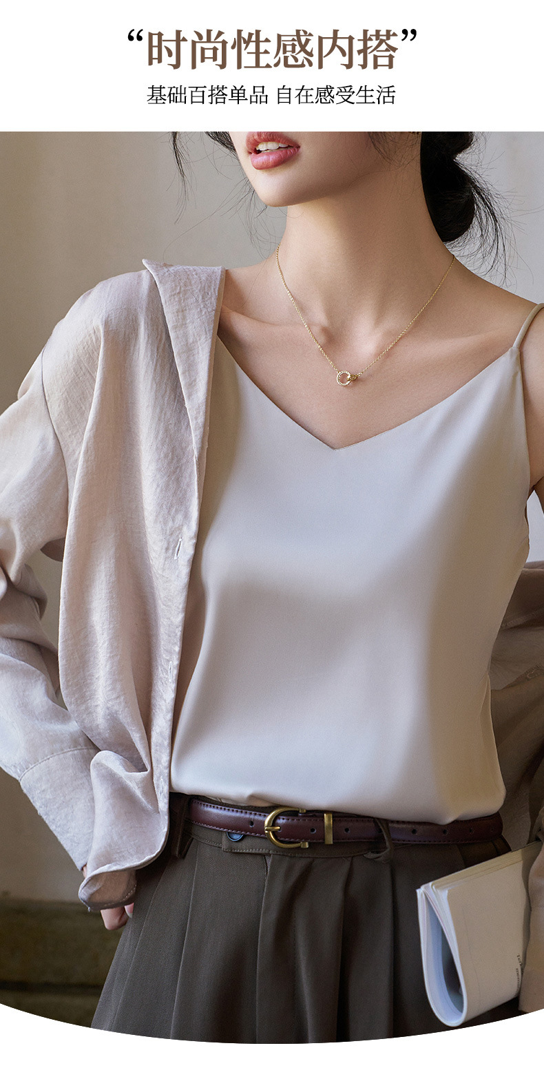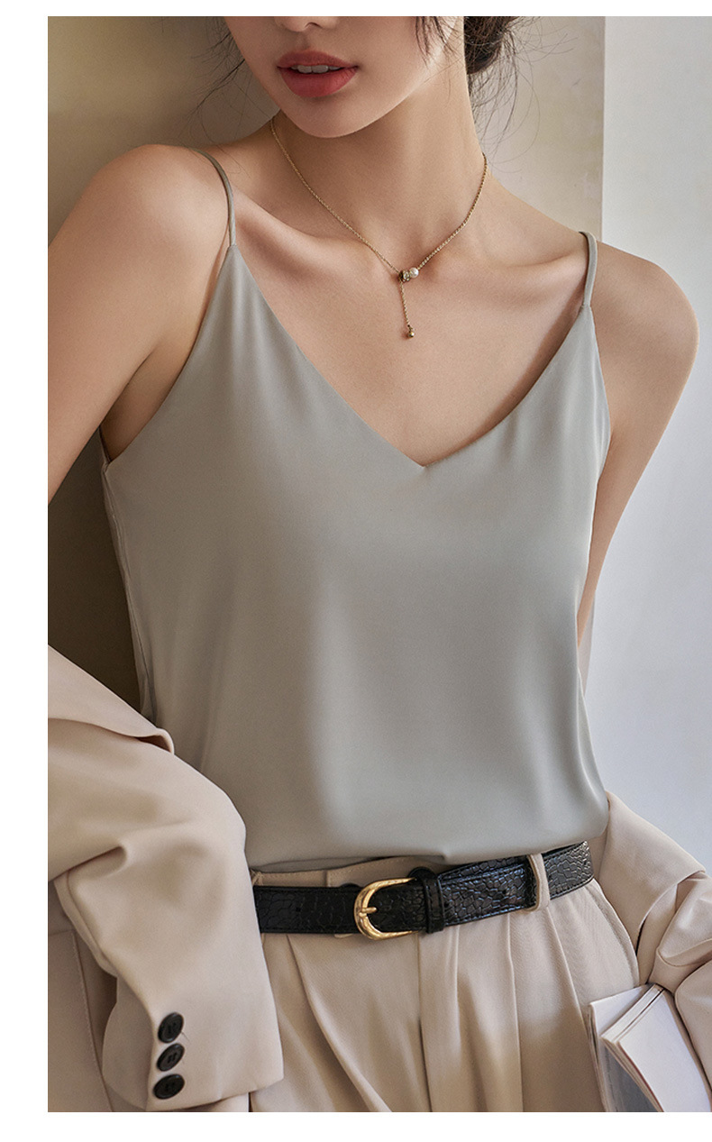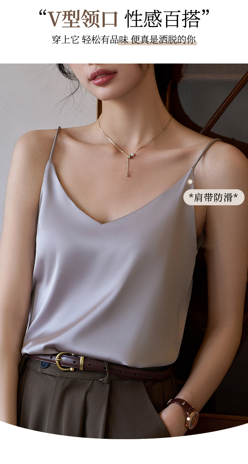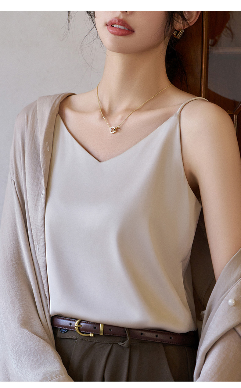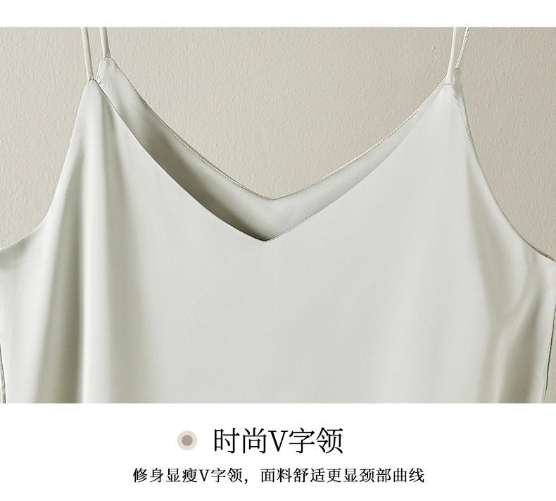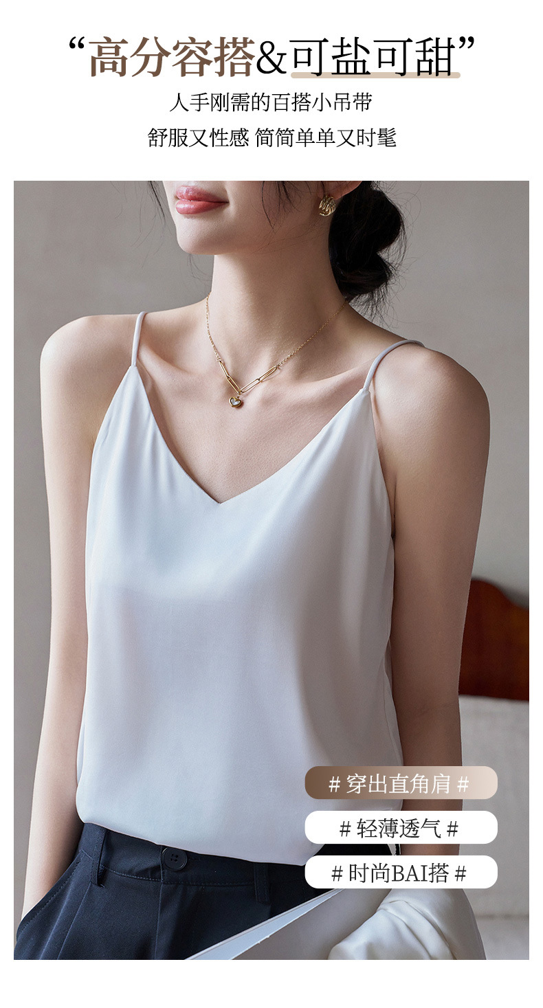 Camisole 여성의 내부 세트 2024 새로운 느슨한 흰색베이스 새틴 인공 실크 탑 여름 겉옷