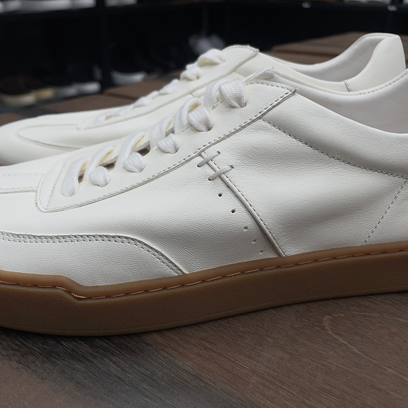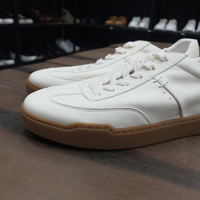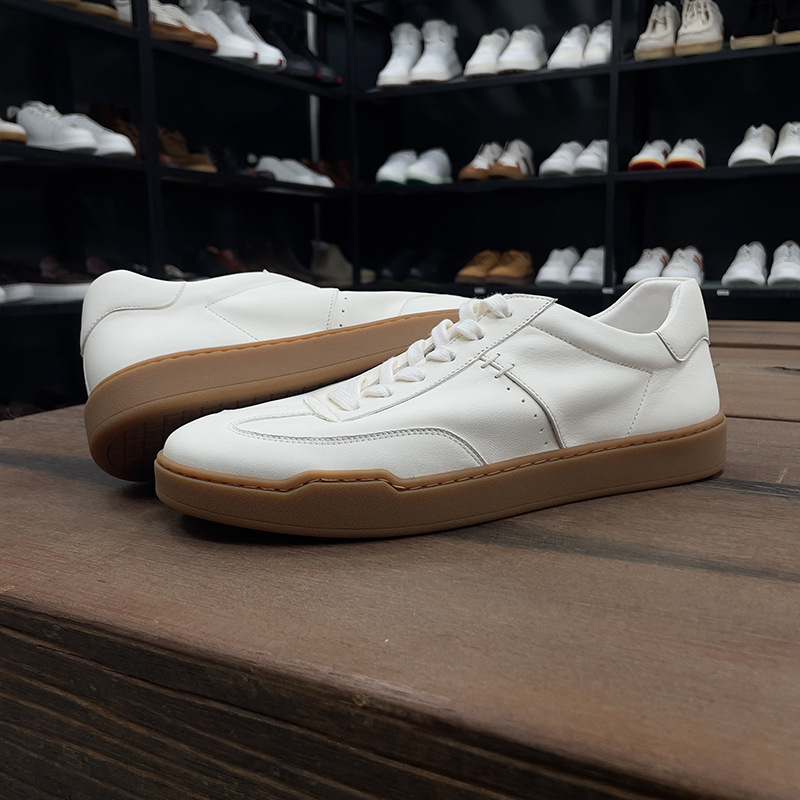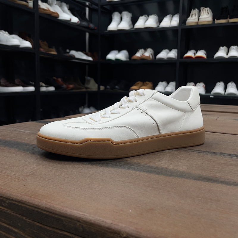광저우 수제 신발 정품 가죽 첫 번째 레이어 소 가죽 흰색 신발 남성 트렌디 한 올 매치 틈새 디자인 감각 남성 신발 캐주얼 보드 신발