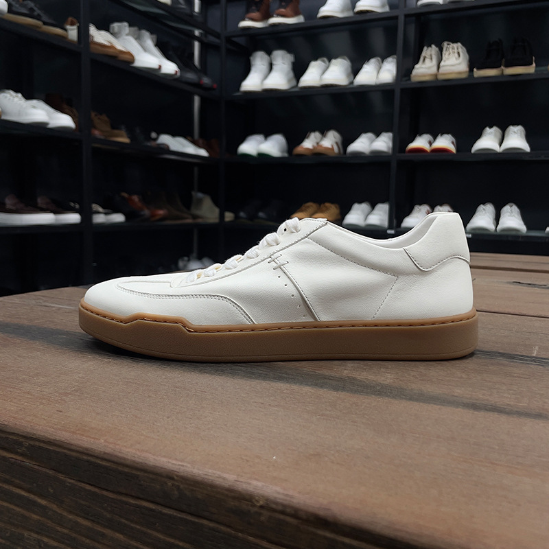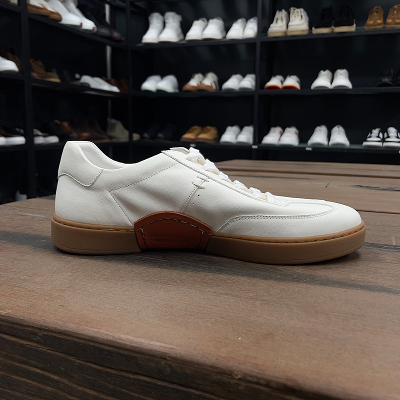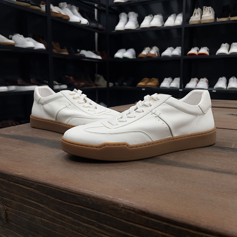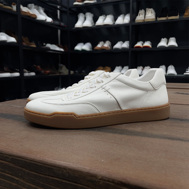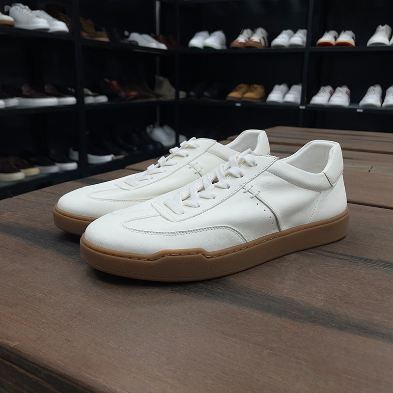 광저우 수제 신발 정품 가죽 첫 번째 레이어 소 가죽 흰색 신발 남성 트렌디 한 올 매치 틈새 디자인 감각 남성 신발 캐주얼 보드 신발스토어 가기