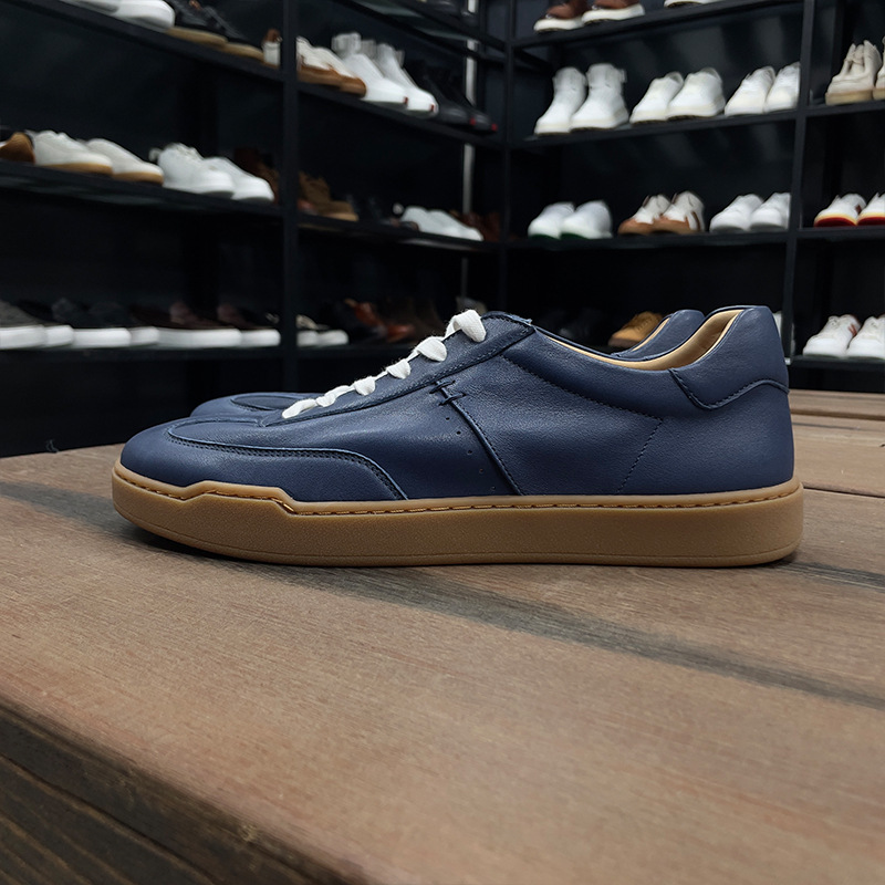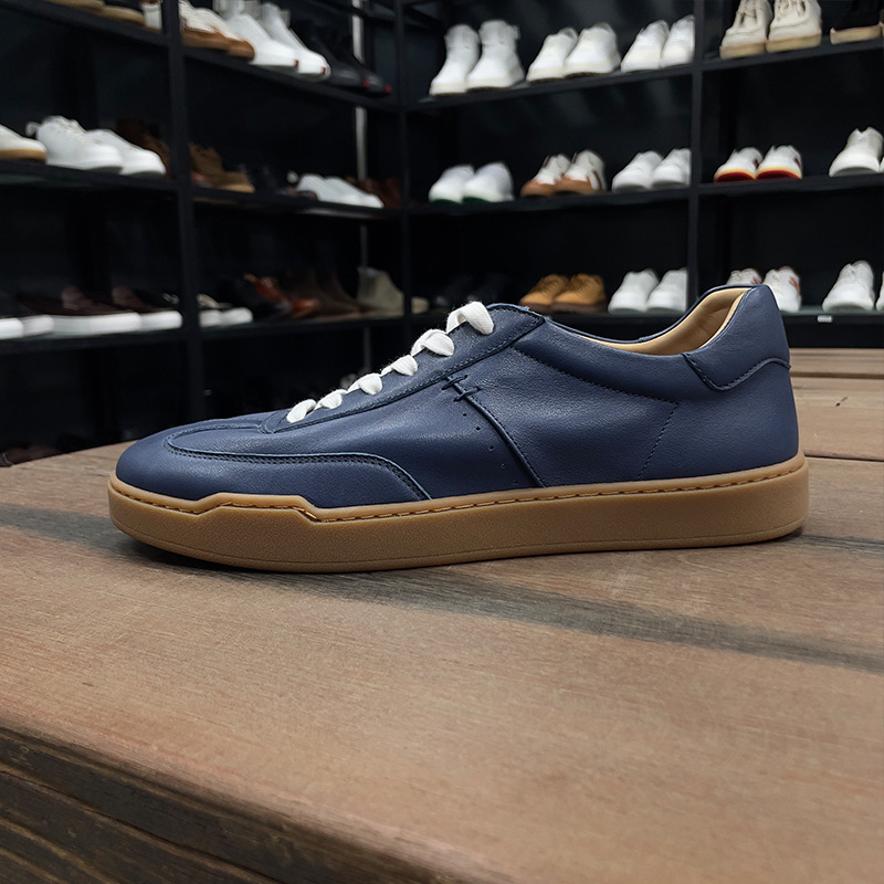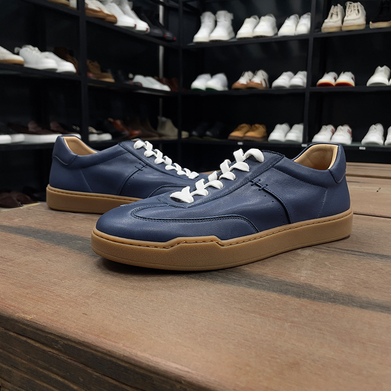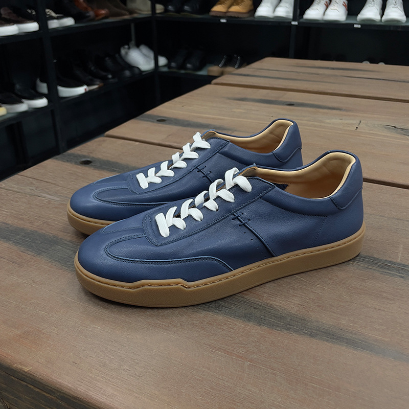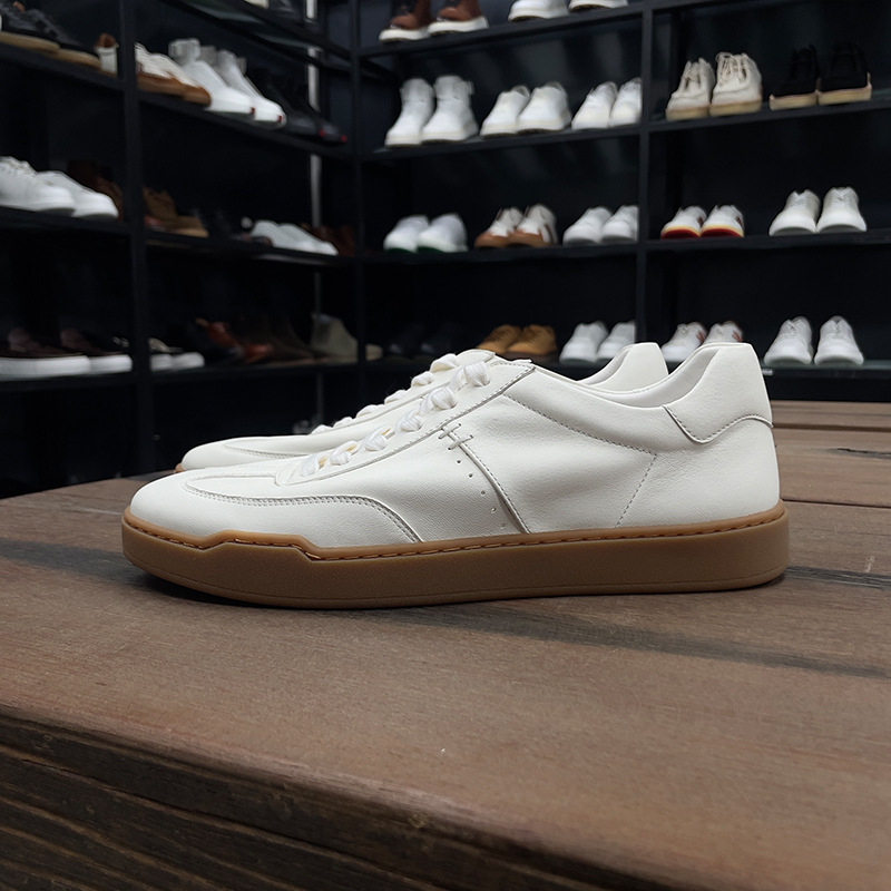 광저우 수제 신발 정품 가죽 첫 번째 레이어 소 가죽 흰색 신발 남성 트렌디 한 올 매치 틈새 디자인 감각 남성 신발 캐주얼 보드 신발스토어 가기