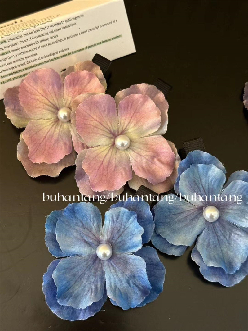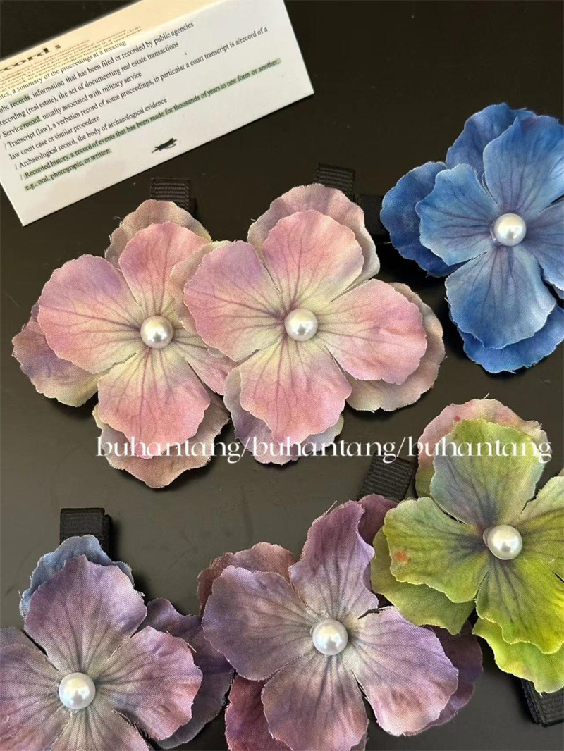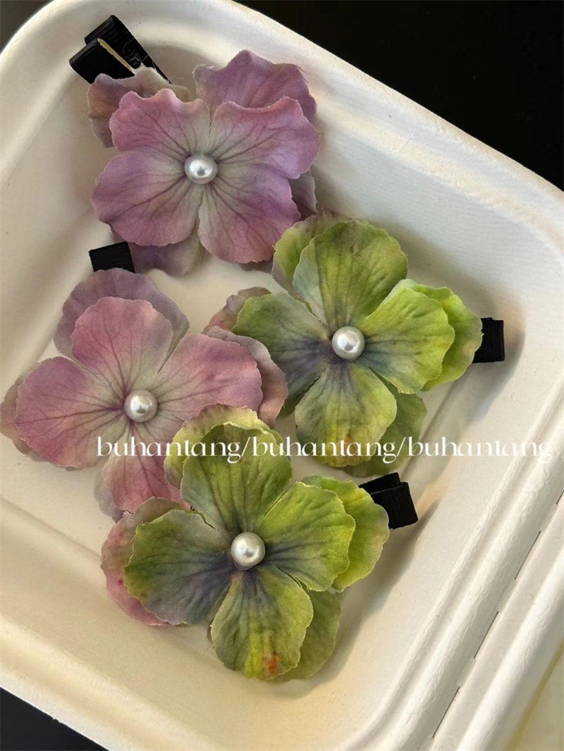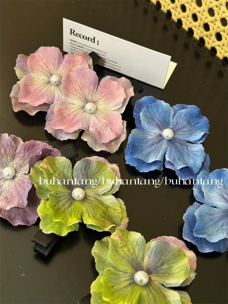 원래 유화 수국 ~ 인공 꽃 머리핀 사이드 클립 사이드 깨진 머리 유물 기질 머리 장식 꽃 머리 장식 헤어 액세서리