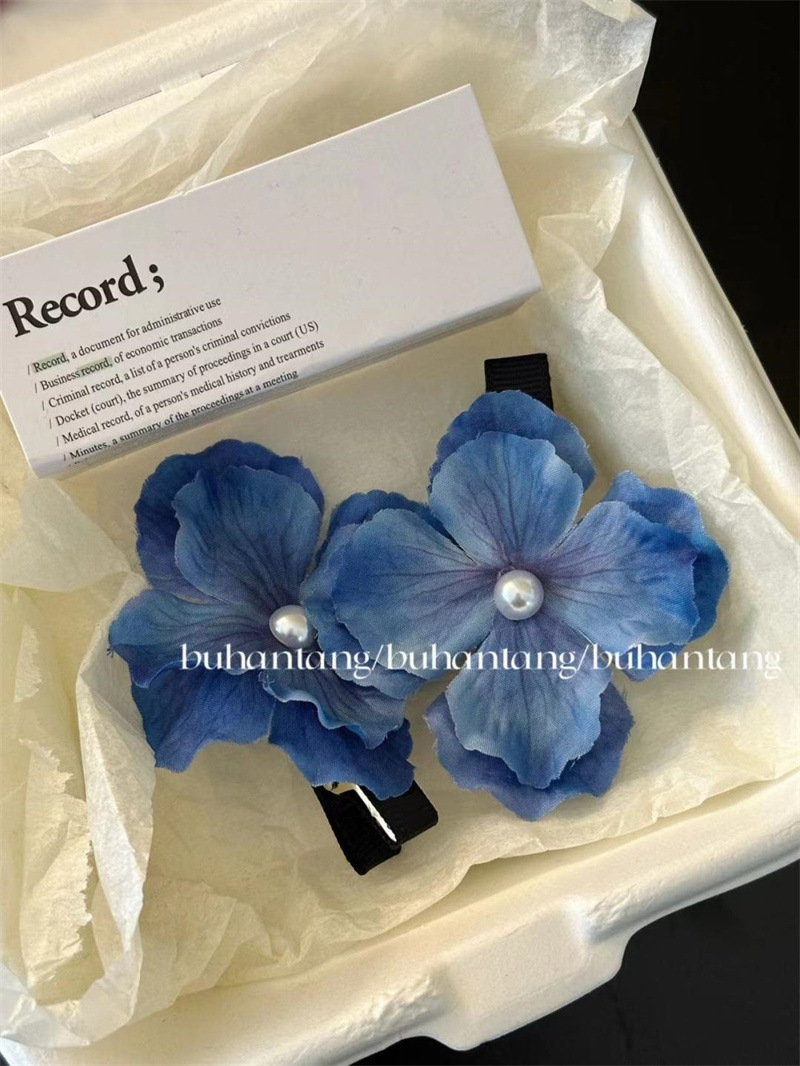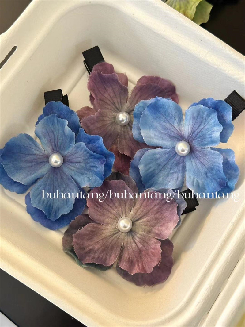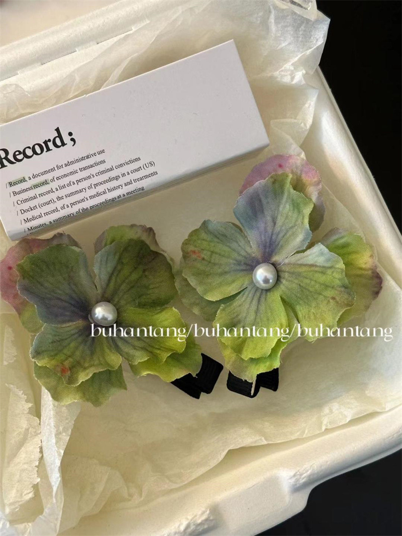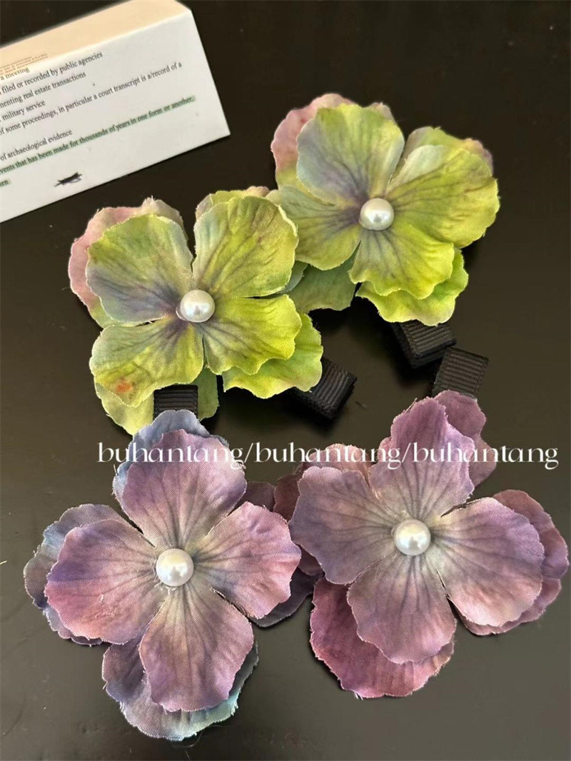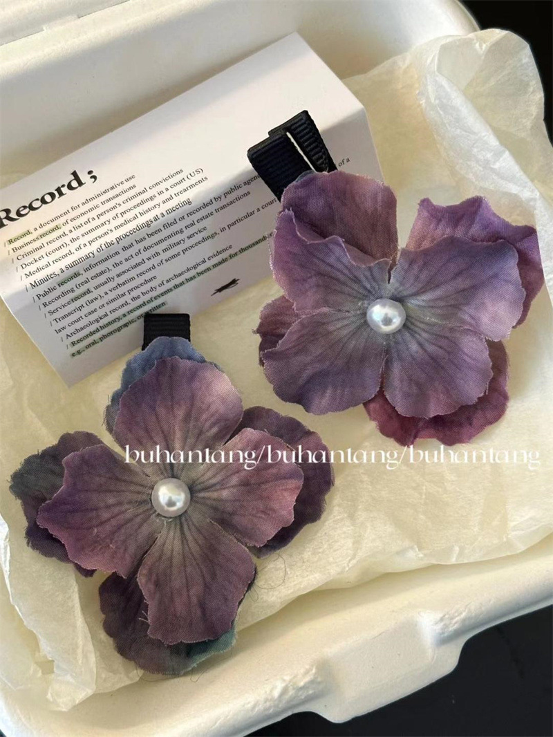 원래 유화 수국 ~ 인공 꽃 머리핀 사이드 클립 사이드 깨진 머리 유물 기질 머리 장식 꽃 머리 장식 헤어 액세서리